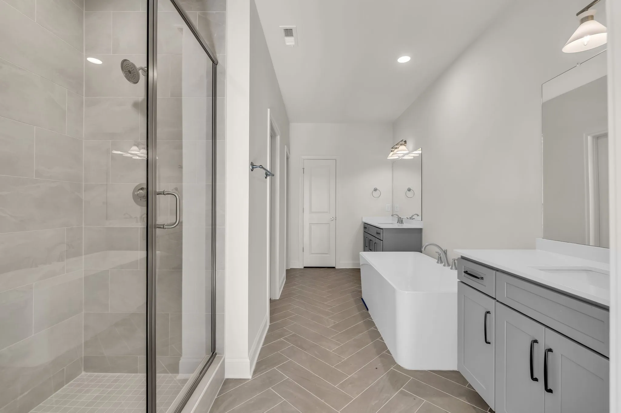 The main level features a private primary suite retreat complete with a luxury bath offering a freestanding soaking tub, fully tiled walk-in shower, and upscale finishes. A dedicated study/flex room on the first floor provides versatility for a home office, playroom, or guest space.