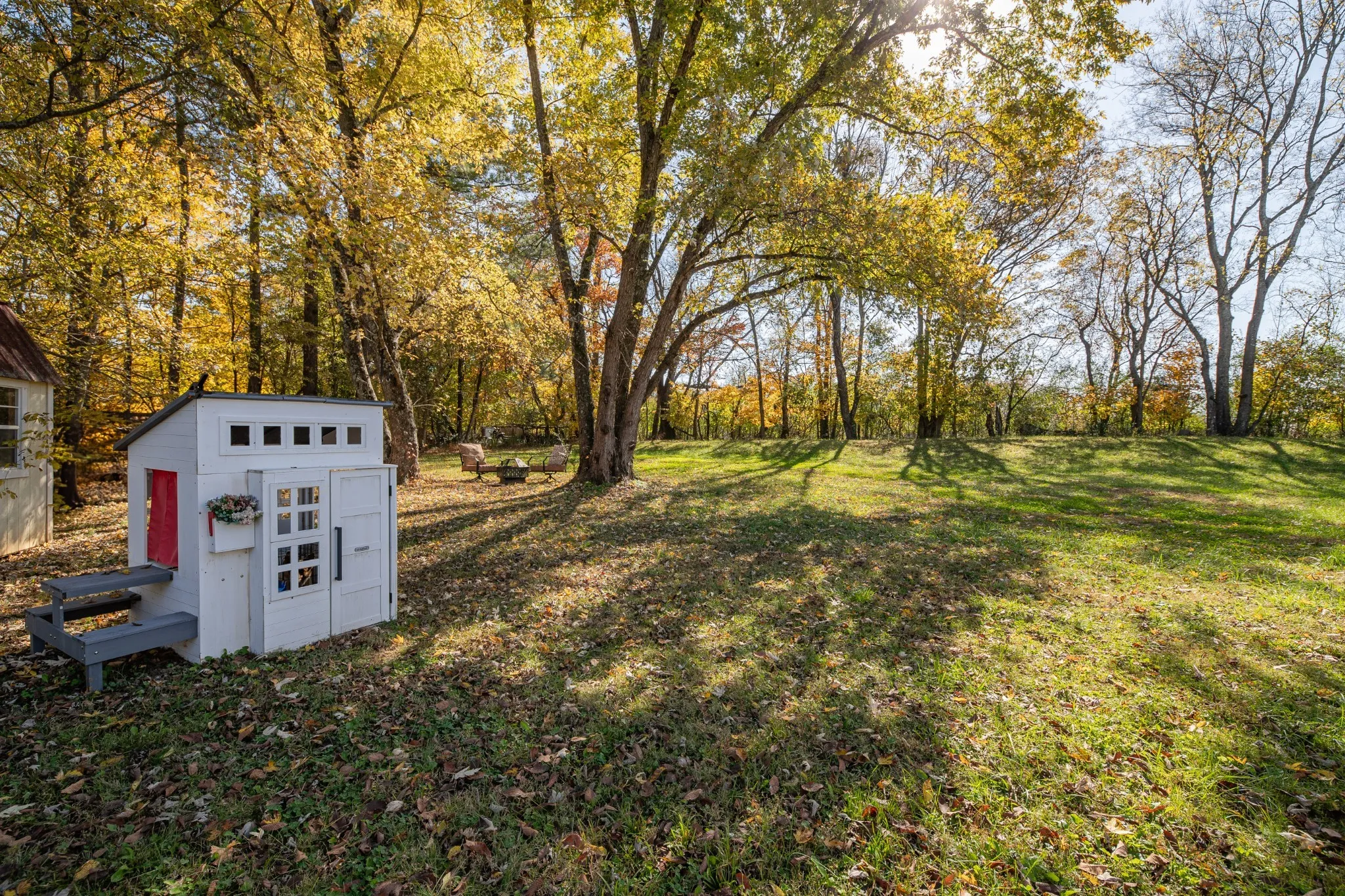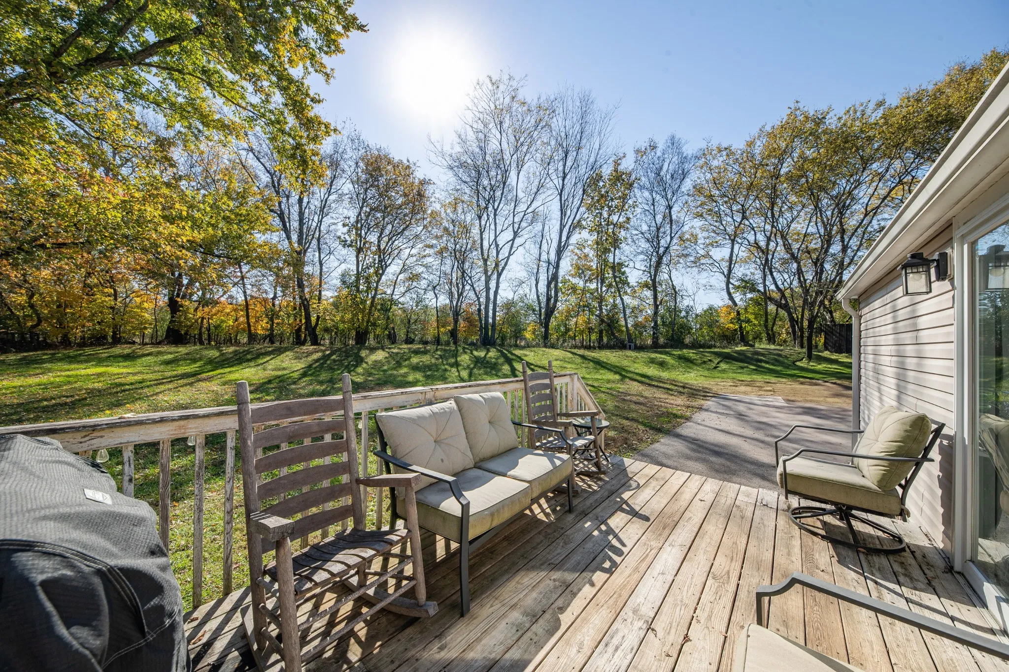 Perfectly positioned on one of the best lots in a peaceful NO HOA neighborhood, this property sits gracefully atop a gentle hillside curve. The elevated placement allows for a spacious and private backyard oasis surrounded by mature trees, privacy fencing on both sides, and serene views of a wide-open field beyond the tree line. Step out onto the large back deck with 10’ steps and unwind in your own outdoor retreat — perfect for morning coffee or evening gatherings under the stars.
