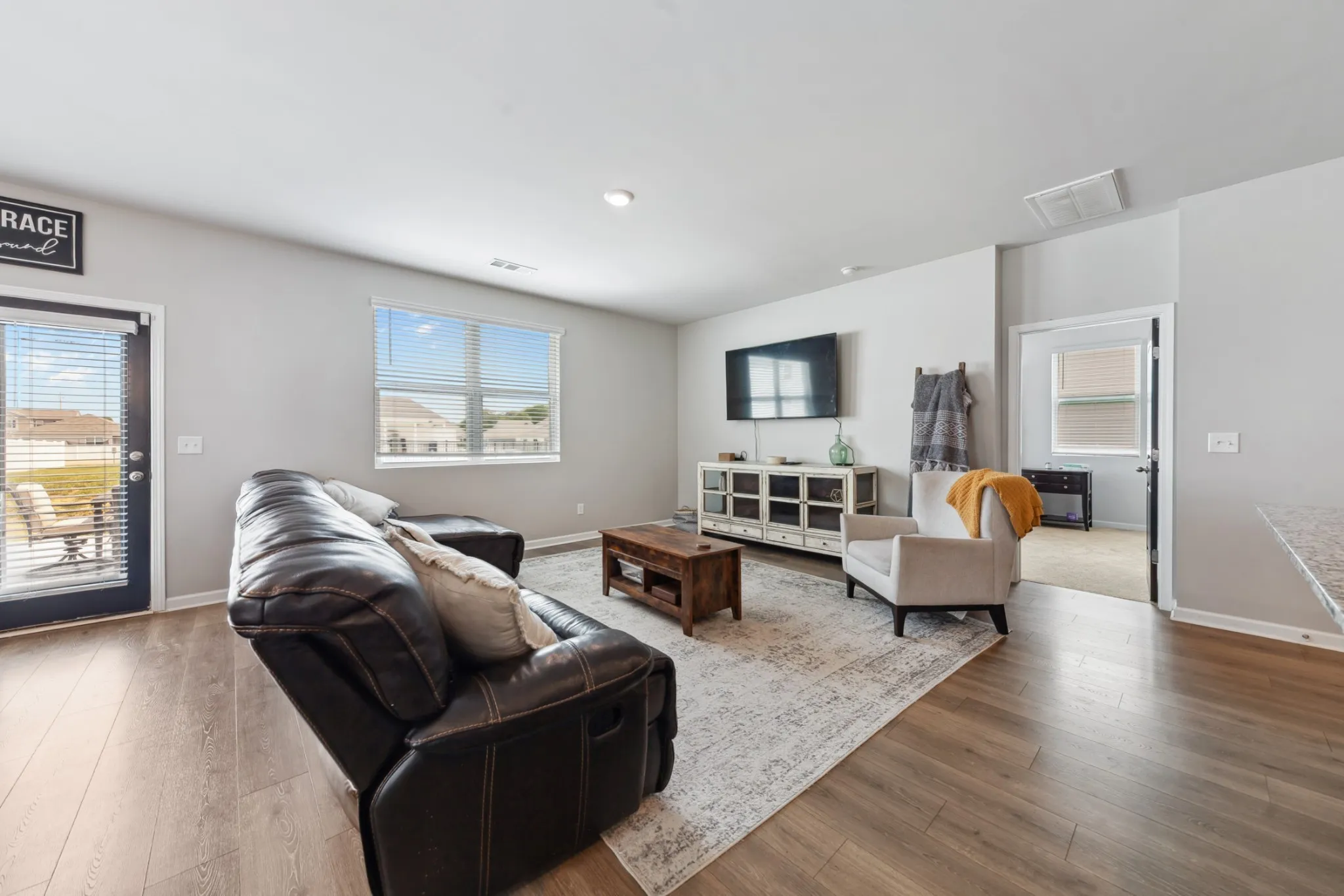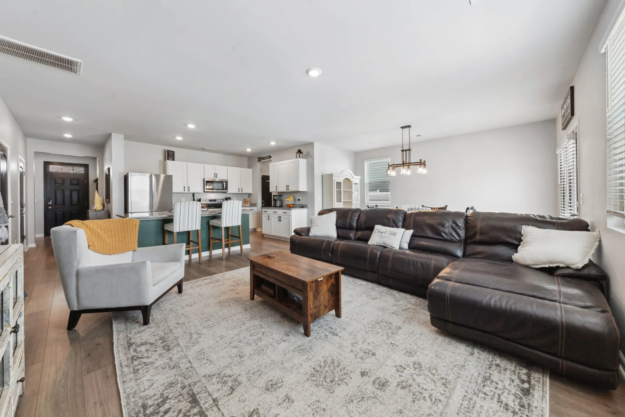 Welcome to this stunning, three-year old home in Chapel Hill, offering a perfect blend of peaceful country living and convenient access to major routes. Inside, discover 2,267 sq ft of comfortable living with four bedrooms, including a downstairs primary suite, three full and one half-bathrooms, stylish LPV flooring, granite countertops, stainless steel appliances, open living and dining areas, an eat-in kitchen, walk-in closets, a versatile bonus room, smart features, a water softening system with RO filtration, a covered porch, marble patio, two-car garage, and access to community amenities like a pool and walking trails.