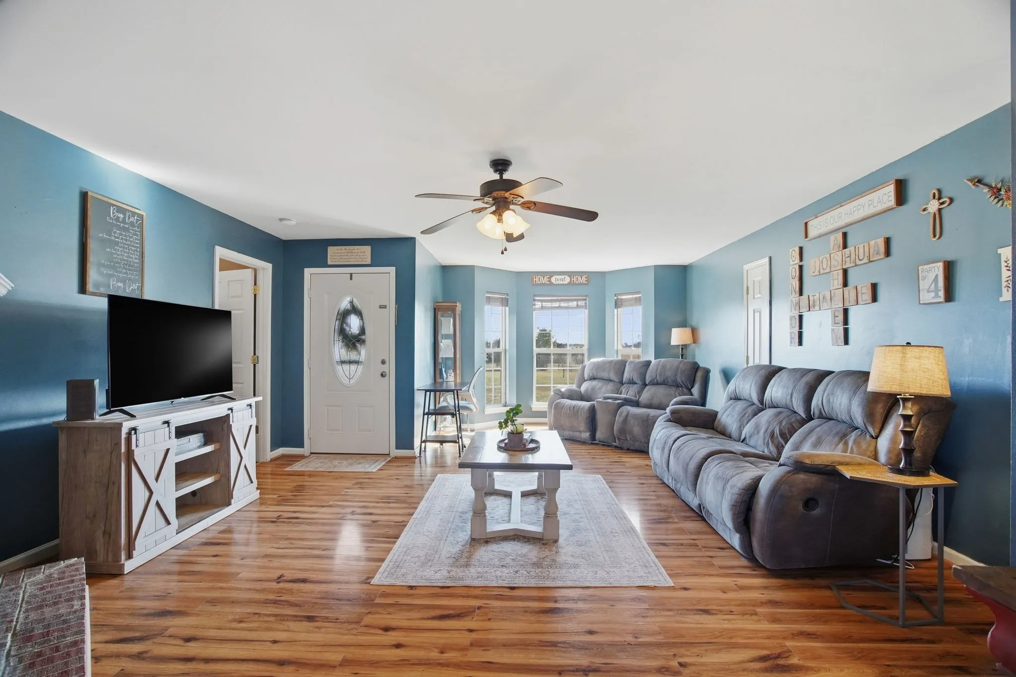 PEACEFUL country living awaits! Situated on 5 LEVEL ACRES, this beautiful property offers space, privacy, and versatility just waiting for your vision. With over 2,100 square feet, this home features a HUGE MAIN LEVEL BONUS ROOM—perfect for a media room, game room, home office, or additional living space.