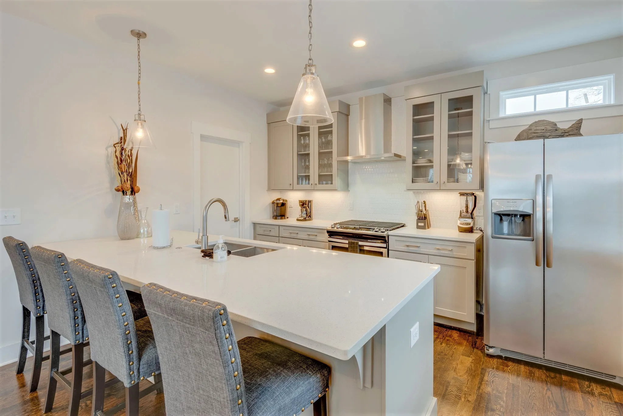 Welcome to this luxury townhome in Nashville, TN. This stunning 3 bedroom, 3.5 bathroom residence boasts top-of-the-line features such as hardwood flooring, granite countertops, high-end appliances, and tile showers and bathrooms. The two car garage provides convenient parking, while the tile backsplash in the kitchen adds a touch of elegance. Enjoy the convenience of a washer and dryer included, as well as a gas cooktop and gas heat for efficient living. The spacious bedrooms feature large walk-in closets with built-ins for ample storage. Located close to downtown Nashville, this townhome offers the perfect blend of luxury and convenience. Property is priced fully furnished, but furnishings can be removed if needed. Pet friendly to a small or medium dog only. Application required