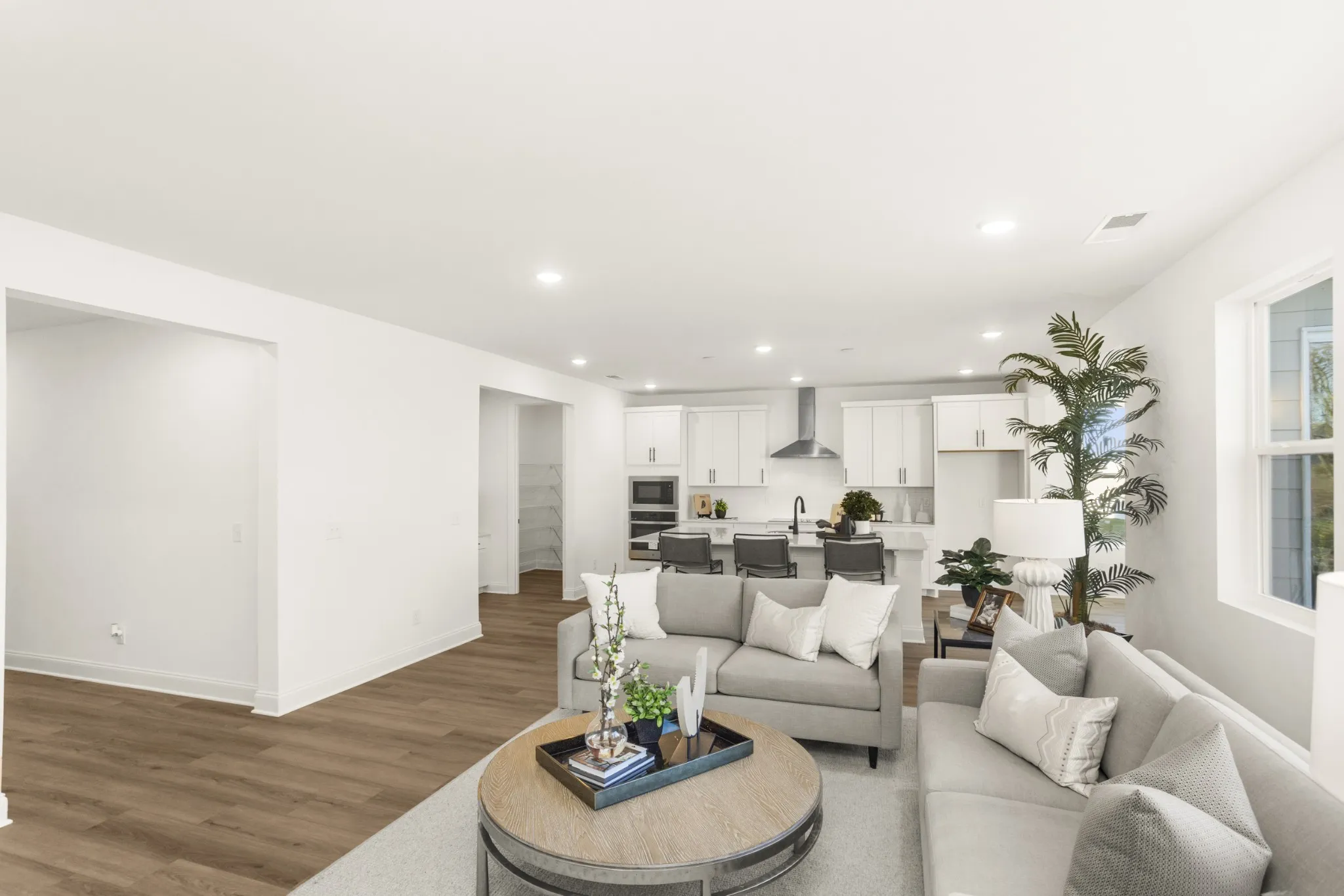 The open‑concept great room is designed for connection — imagine soft music, open windows, and gatherings that flow easily from indoors to out. The spacious primary suite provides a peaceful escape with a large walk‑in closet and a deluxe bath with double sinks, creating a calming retreat at the end of each day.