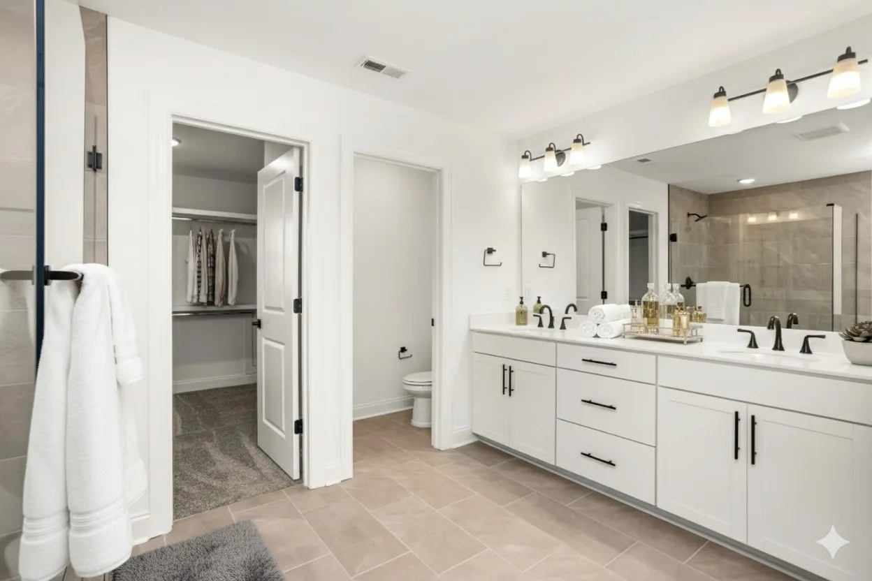 A home thoughtfully crafted to support the natural rhythm of everyday living. The main floor serves as the central hub for connection, comfort, and productivity. The gourmet kitchen, complete with stainless steel appliances and a generous island, opens seamlessly to the inviting keeping room with its modern fireplace. From there, the layout extends into the expanded sunroom, showcasing serene views of the private, tree‑lined backyard.
