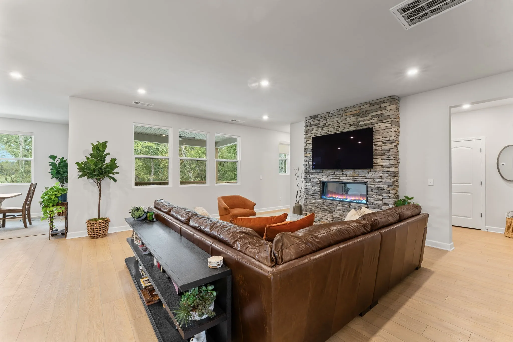 Completed in Spring 2024, this beautifully designed four-bedroom, four-bath home offers 3,066 square feet of thoughtfully crafted living space, tucked away on a quiet cul-de-sac just minutes from I-24, shopping, and dining. The open-concept floor plan includes a flexible room off the entry, a spacious great room ideal for gatherings, and a well-appointed kitchen featuring modern finishes and contemporary style. Generously sized secondary bedrooms with a full bath provide comfort and versatility, while the private owner’s suite serves as a true retreat with dual vanities, a spa-inspired bath, and an oversized walk-in closet. Outdoor living is highlighted by a large deck and concrete patio overlooking a wooded backyard frequented by local wildlife. The property also offers direct private access to a walking trail leading to the West Fork of the Stones River, making it ideal for quiet strolls and peaceful moments by the water
