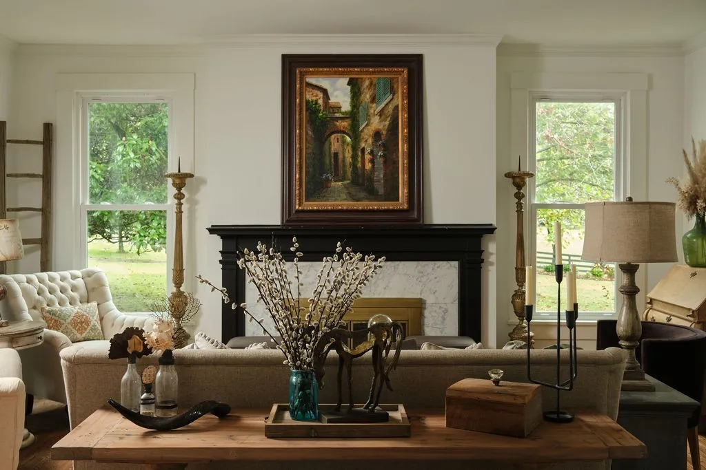 Nestled on 23 beautifully manicured acres along the tranquil South Harpeth River, this extraordinary estate captures the grace of early 20th-century architecture and the serenity of modern country living. At the heart of the property stands a fully restored 4,858 sq. ft. 1914 home, where historic craftsmanship and modern comfort blend seamlessly. Beyond the main home, a refined one-bedroom rustic cabin offers guests a full kitchen, bath, fireplace, and a loft with twin beds overlooking the river. The property’s timeless greenhouse and lush gardens invite you to reconnect with nature. Raised beds, a flowing fountain, and a trellis draped in greenery create an enchanting outdoor sanctuary. Wander through the garden to a cedar deck overlooking the river, where a firepit, Adirondack chairs, and dining area make for magical evenings under the Tennessee sky. The South Harpeth River adds its own rhythm to the land — a peaceful place to fish from the banks, paddle its gentle curves, or cool off in the clear swimming hole. Additional features include a horse barn, riding arena, goat playground, She Shed, trails and lush pastures offering endless opportunities for recreation and relaxation. Just minutes from downtown Franklin and Leiper’s Fork, this estate offers an unparalleled lifestyle of beauty, privacy, and connection to the land.