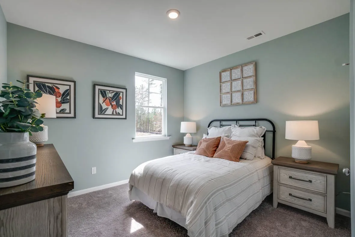 Hayden plan- 5bdrms, 3 full baths, 2,511 sq ft. No rear neighbors, back up to tree line!!! Open layout, modern design, and plenty of space. Natural light fills the home, enhancing its open, airy feel. Off the foyer is a flex room, ideal as a dining room, office, or den. The living room flows into a dining area and kitchen with ample cabinets, a corner pantry, and a central island perfect for bar-style seating and entertaining. A main-floor bedroom and full bath are perfect for guests. Upstairs, our largest primary suite features a walk-in shower, dual vanity, and a large walk-in closet. Three additional bedrooms, a second living area, a third full bath, and a conveniently located laundry room complete the upper level. Modern features include stainless steel Whirlpool appliances, quartz countertops in the kitchen and baths, and a smart home tech package for remote access to security, climate, and more. Woodbridge Glen is a quiet beauty with rolling hills and lots of green space but also conveniently located just 1 mile from I-40 and halfway between both Mt. Juliet and Lebanon. The neighborhood features a beautiful pool, 2 spacious dog parks, playground, and a trail to the natural duck pond and pavilion. Amazing interest rates and incentives! Call today to schedule your visit!