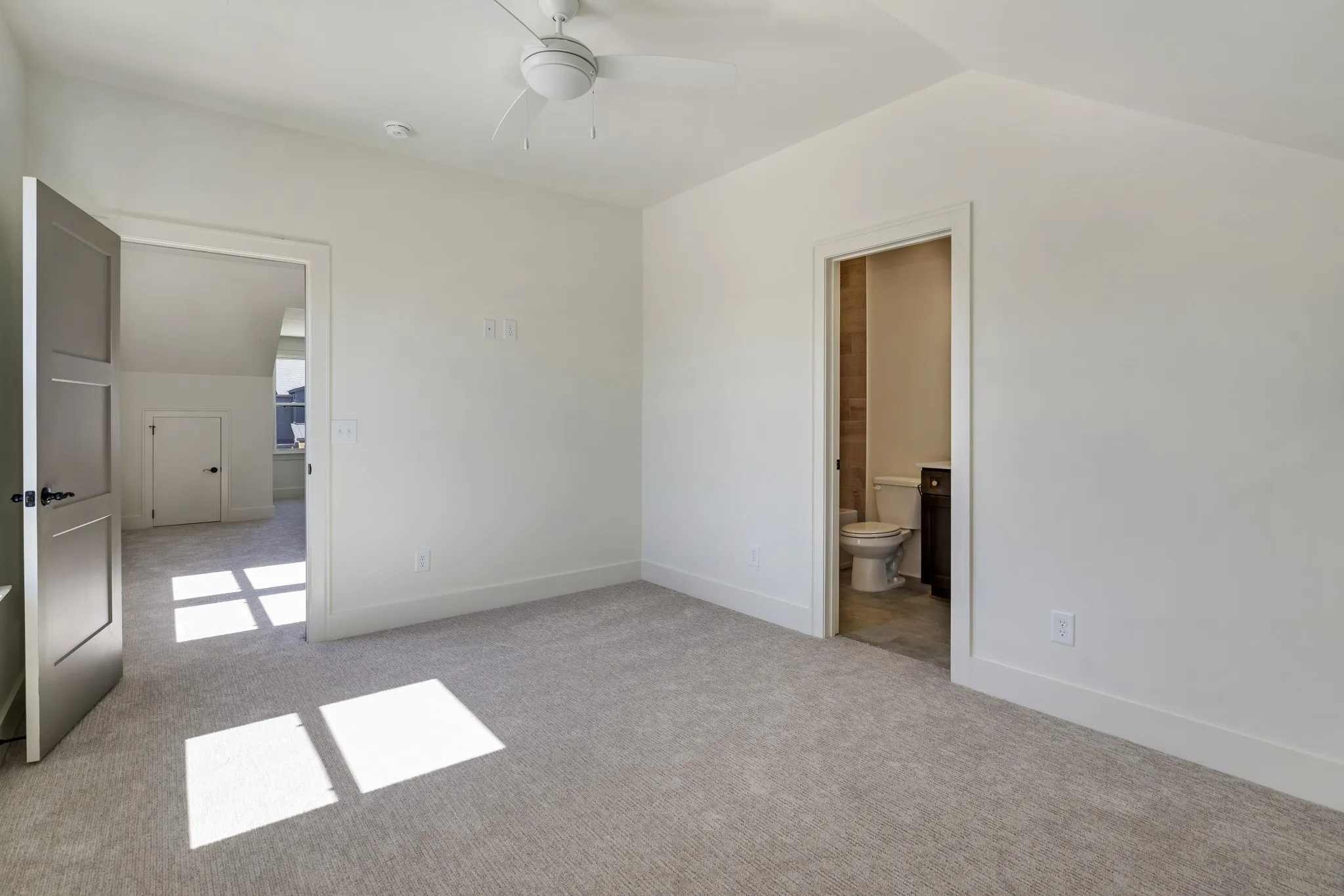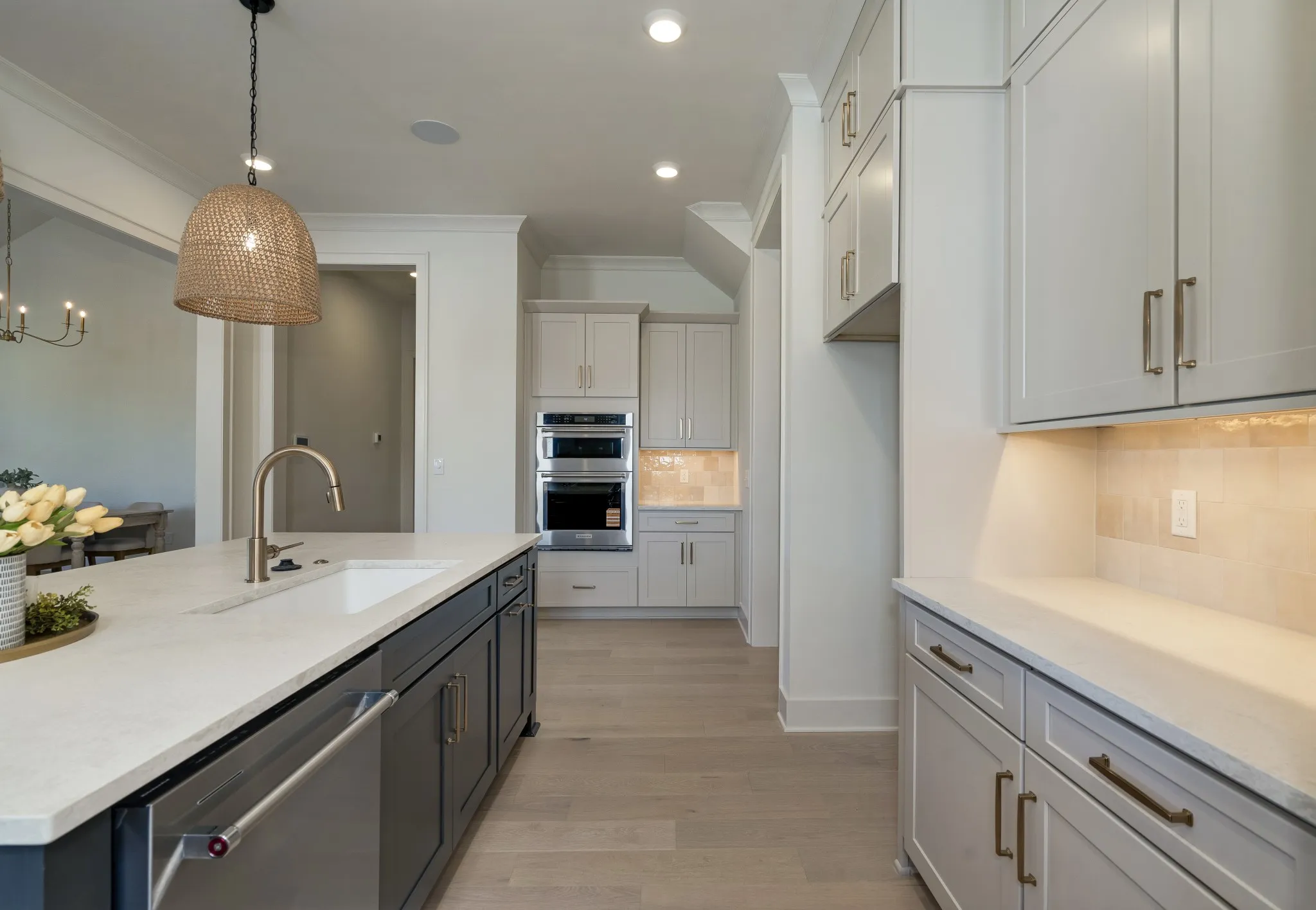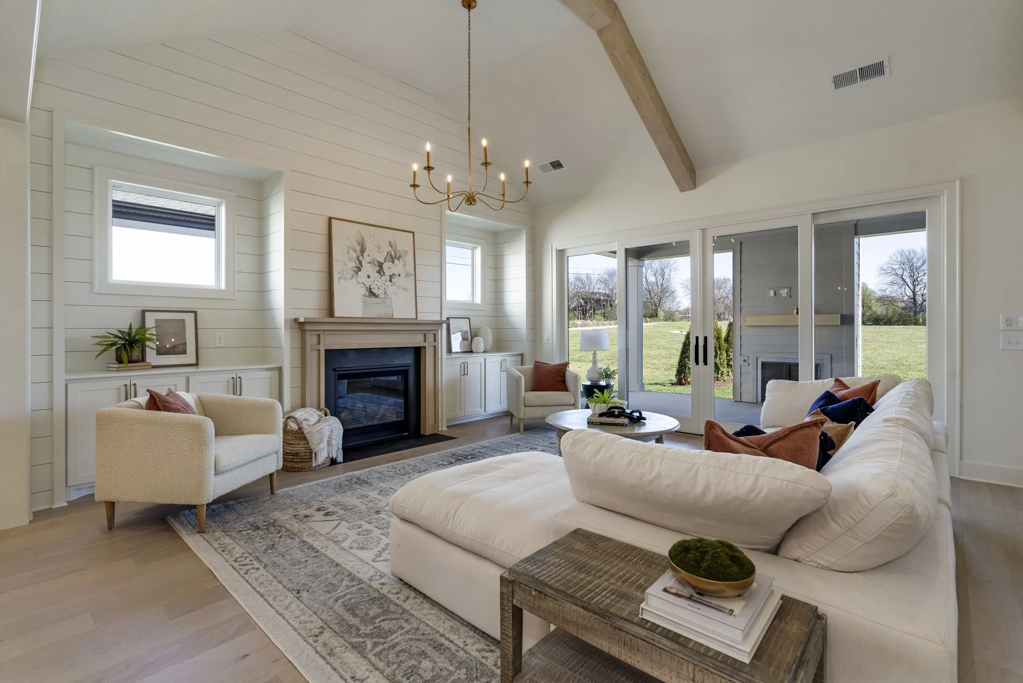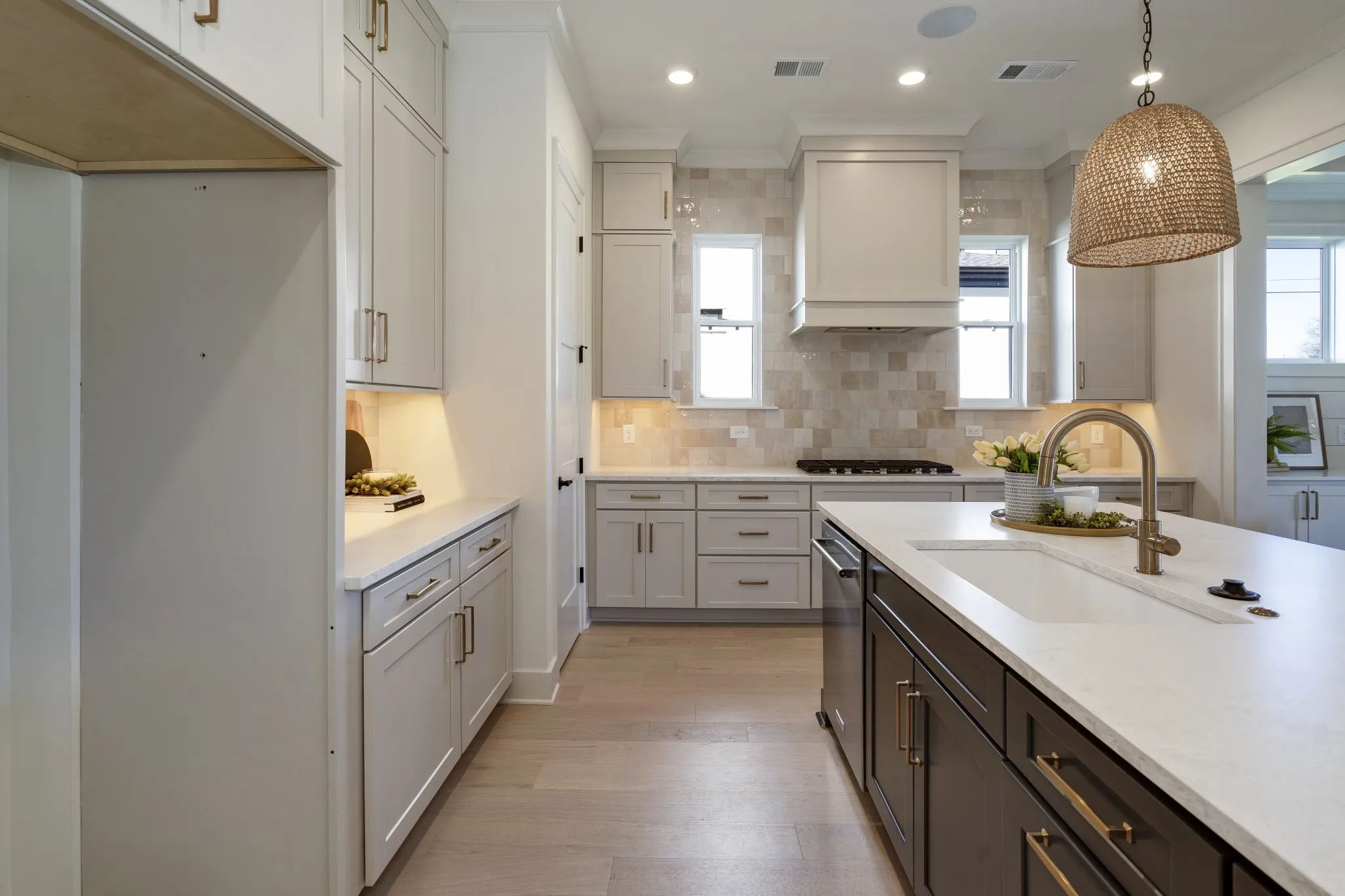 Exceptional Woodridge Homes custom design in an intimate 16-lot community. This thoughtfully crafted residence showcases main-level living with two bedrooms, plus a gourmet kitchen featuring gas cooktop, generous island, and walk-in pantry. The vaulted great room with architectural beamed ceiling creates an impressive gathering space.