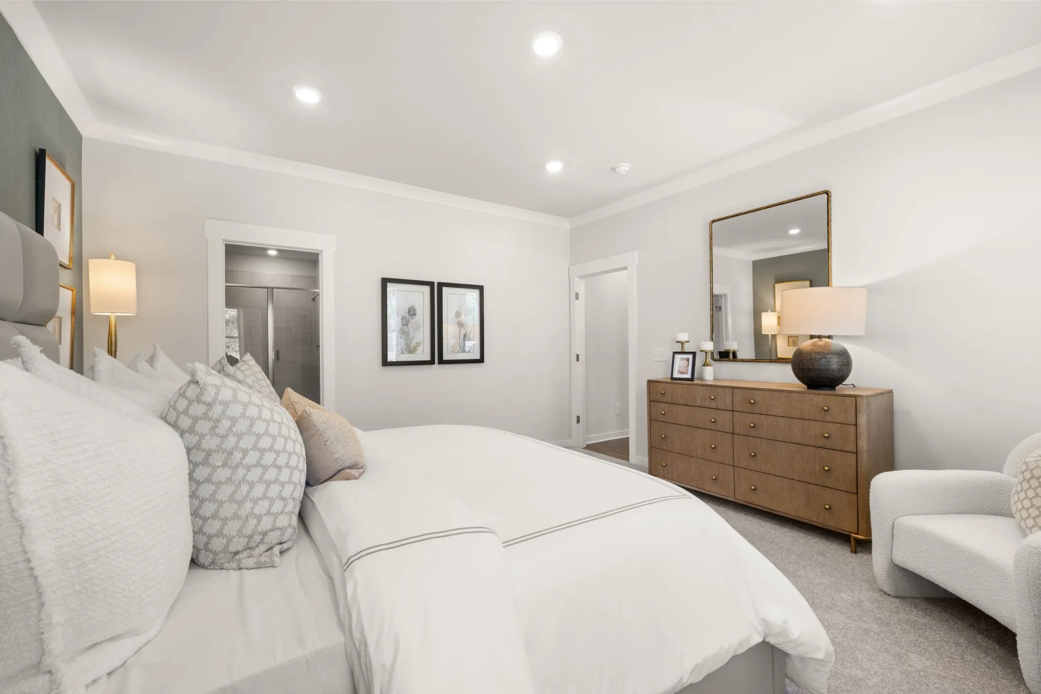 This single-story home shares an open layout between the kitchen, nook and family room for easy entertaining and access to the covered patio for outdoor relaxation. A separate formal dining room is perfect for hosting dinner parties with loved ones. A luxe owner’s suite is in a rear corner of the home with an en-suite bathroom and walk-in closet, while three secondary bedrooms are at the front of the home, one with an en-suite bathroom, ideal for overnight guests. *Images from a furnished model of this home. Actual configuration and features may vary.