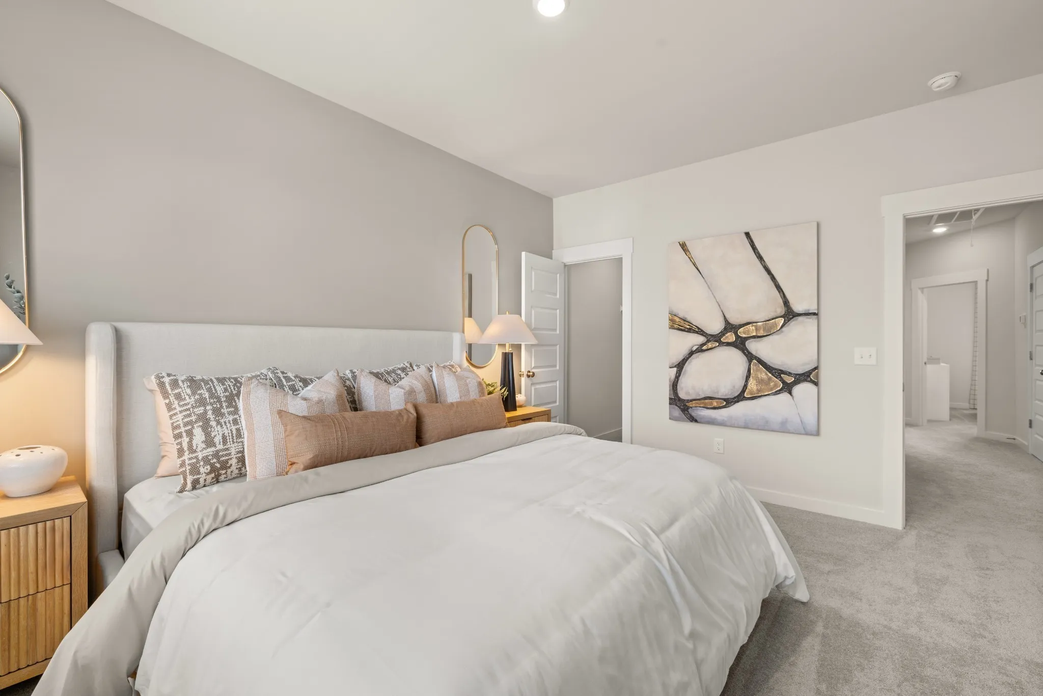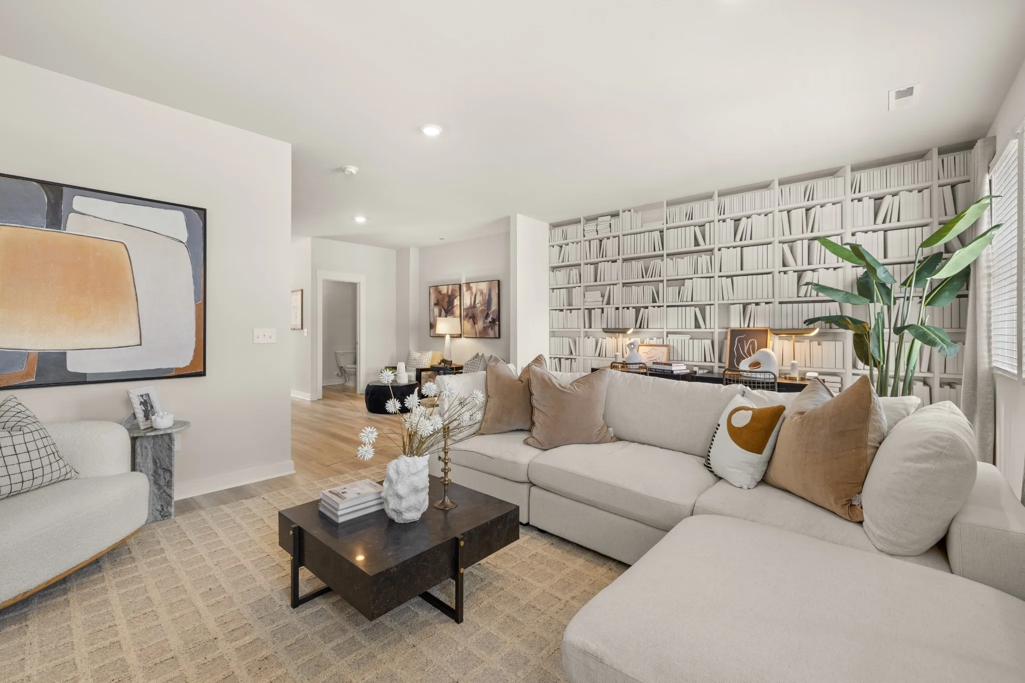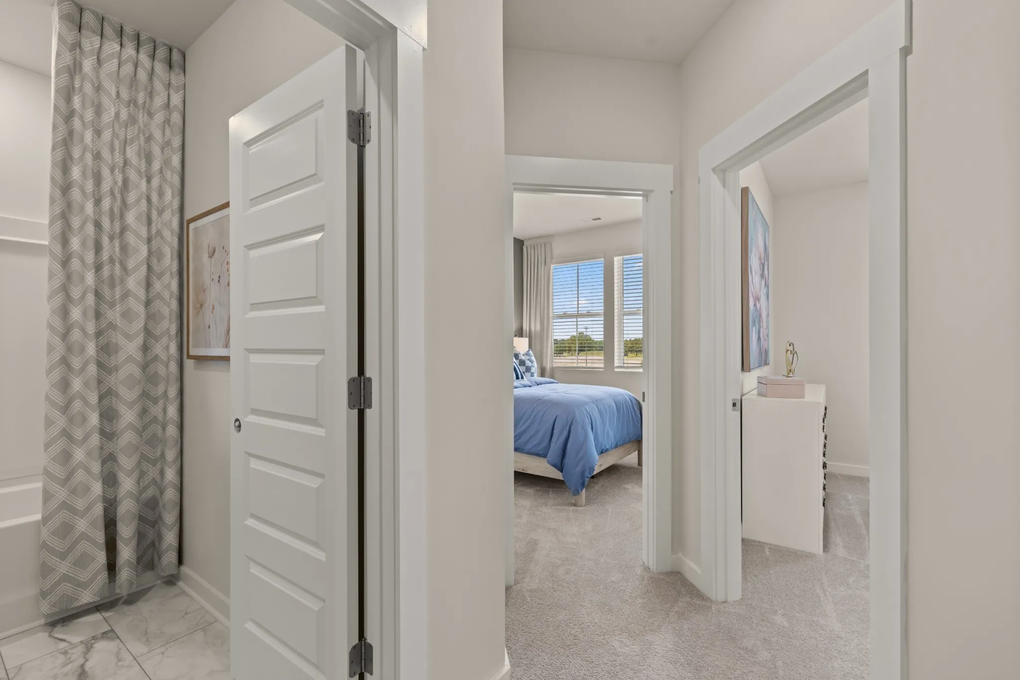 LOT #1047 – Westbrook floorplan. This new three-story townhome features a free-flowing layout that emphasizes functionality and practicality. Upon entry is a versatile bedroom suite to accommodate family members or overnight guests, while upstairs is the main living area. It includes a sprawling Great Room made for gatherings, a cozy loft that can double as an office space and a well-equipped kitchen with an adjoining nook. Residing on the top floor are the remaining bedrooms, one of which is the tranquil owner’s suite with an attached bathroom. *Images from a furnished model of this home. Actual configuration and features may vary.