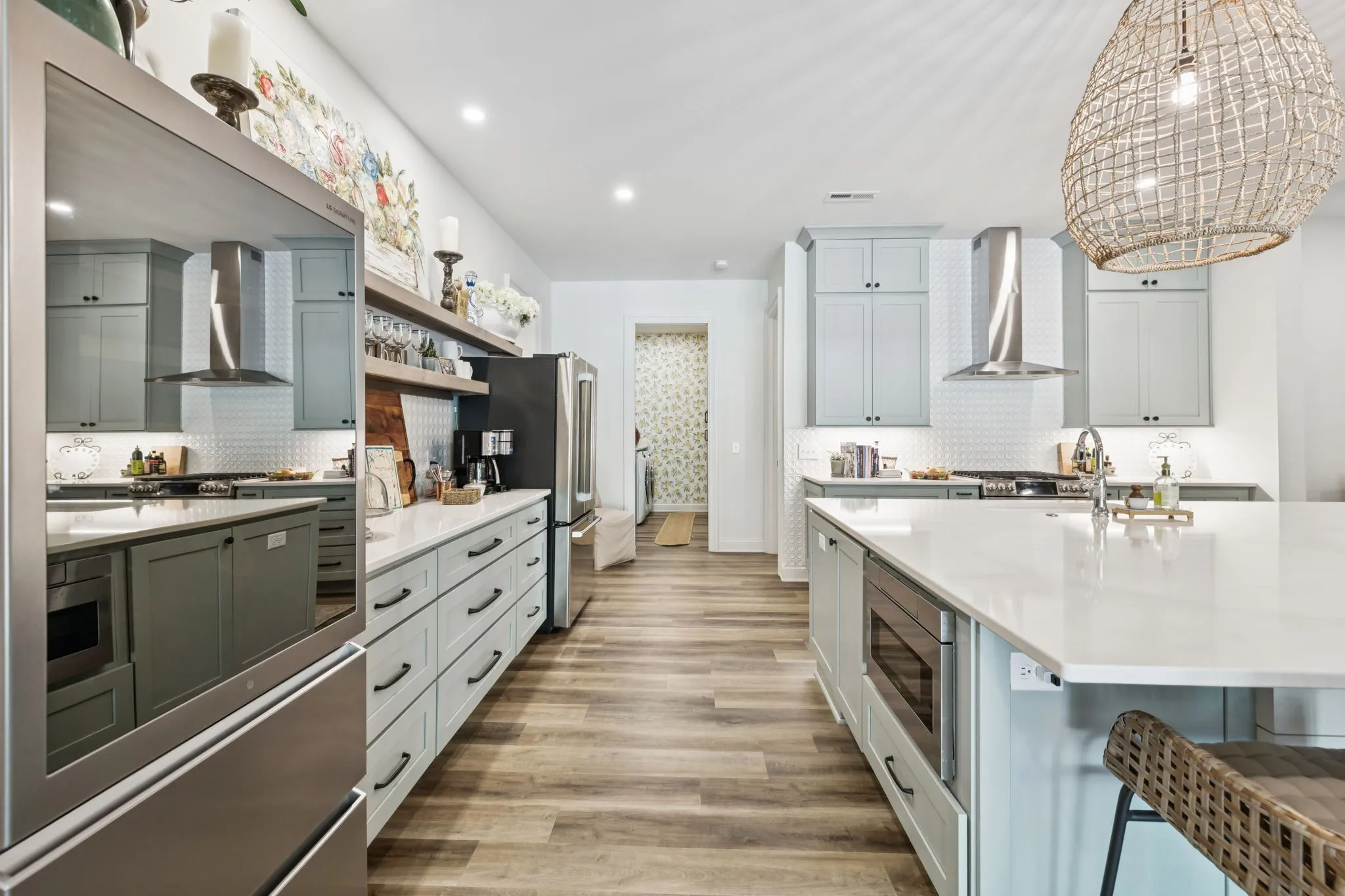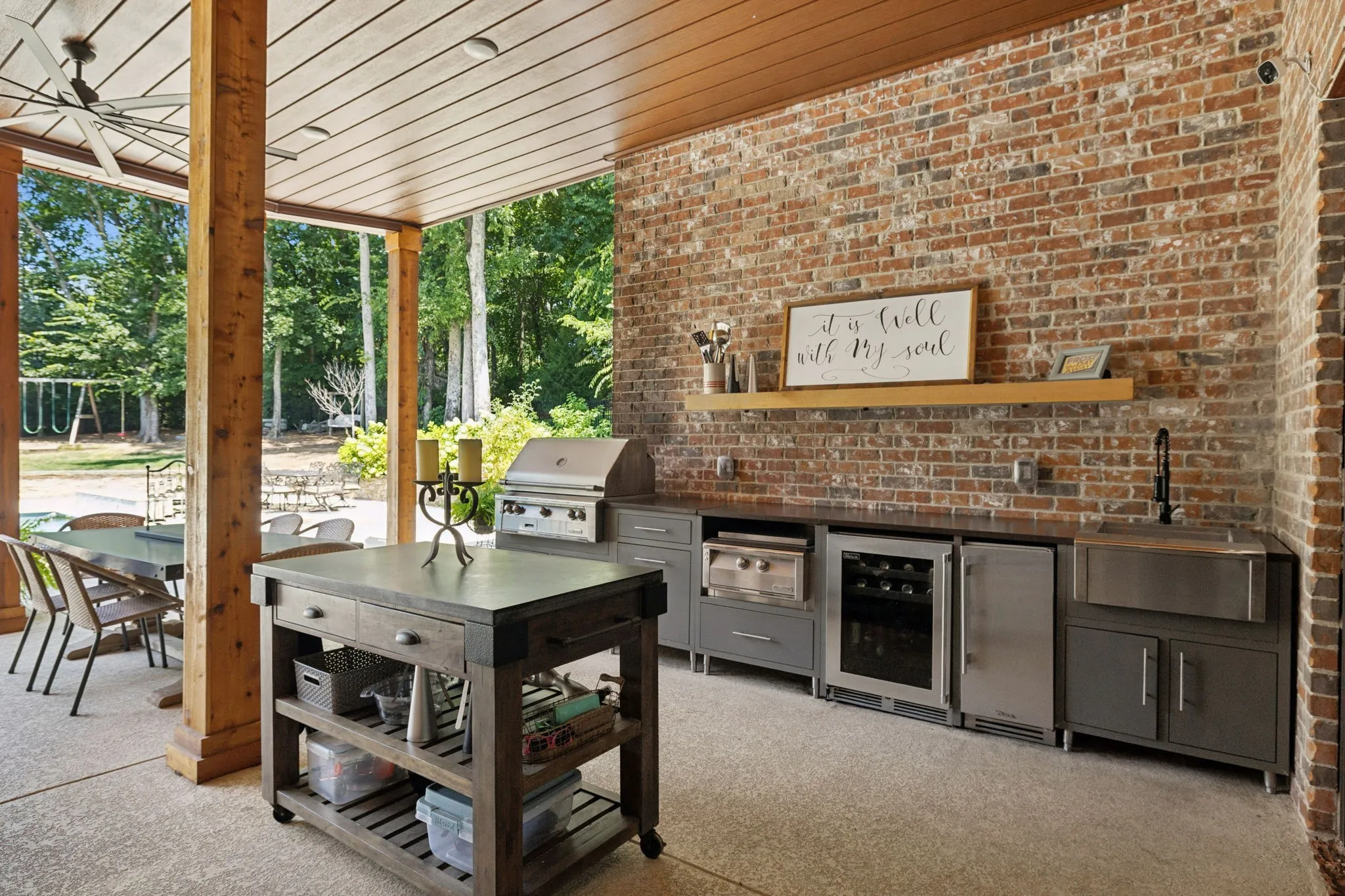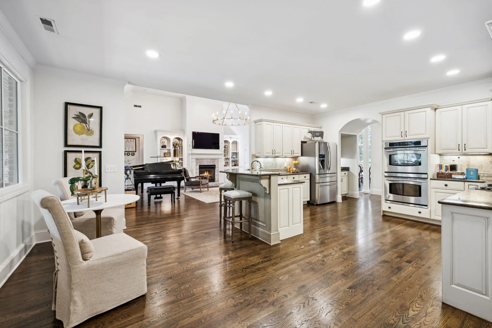 Repositioned in the market with a fabulous new price, this exceptional luxury home is designed for comfort, entertaining, and multi-generational living. Located in the Highgrove Custom Built section of River Landing, the main level features a recently updated primary suite that provides a serene retreat, along with spacious living and dining areas enhanced by elegant finishes and a fireplace. A full chef’s kitchen makes daily living both effortless and refined. There are 3 additional bedrooms on the main level of this home. The lower level is a destination of its own, offering seamless indoor/outdoor living with 12’ sliding doors that open to the pool and entertaining spaces. A primary suite/guest retreat with spa-inspired wet room, full kitchen, and second laundry make this level ideal for multi-generational living or guests. Outdoors, the property impresses with an 18’x36’ pool, hot tub, and a 28’x30’ covered terrace. The 18-foot outdoor kitchen is equipped with a grill, 18” burner, beverage fridge, ice machine, and sink—perfect for hosting gatherings. Landscape lighting and irrigation in front and back ensure year-round beauty and ease of care. Additional highlights include: two fireplaces, two full kitchens, two laundry rooms, 5 full baths/2 half baths, built-in cabinetry in the upper and lower garages, 3 garage bays (one bay gives direct access into the finished basement), a 400 AMP panel box, a central vacuum system, and a tankless water heater. With dual primary suites, expansive entertaining areas, and thoughtful upgrades throughout, this home offers a rare combination of luxury, comfort, and versatility. Dining room chandelier does NOT convey.