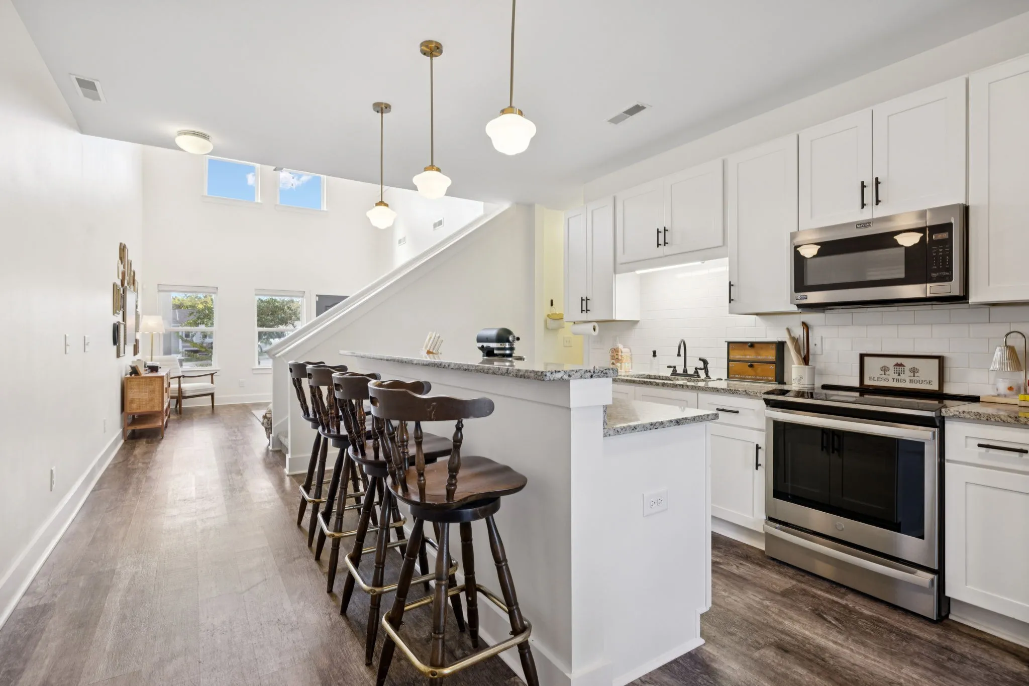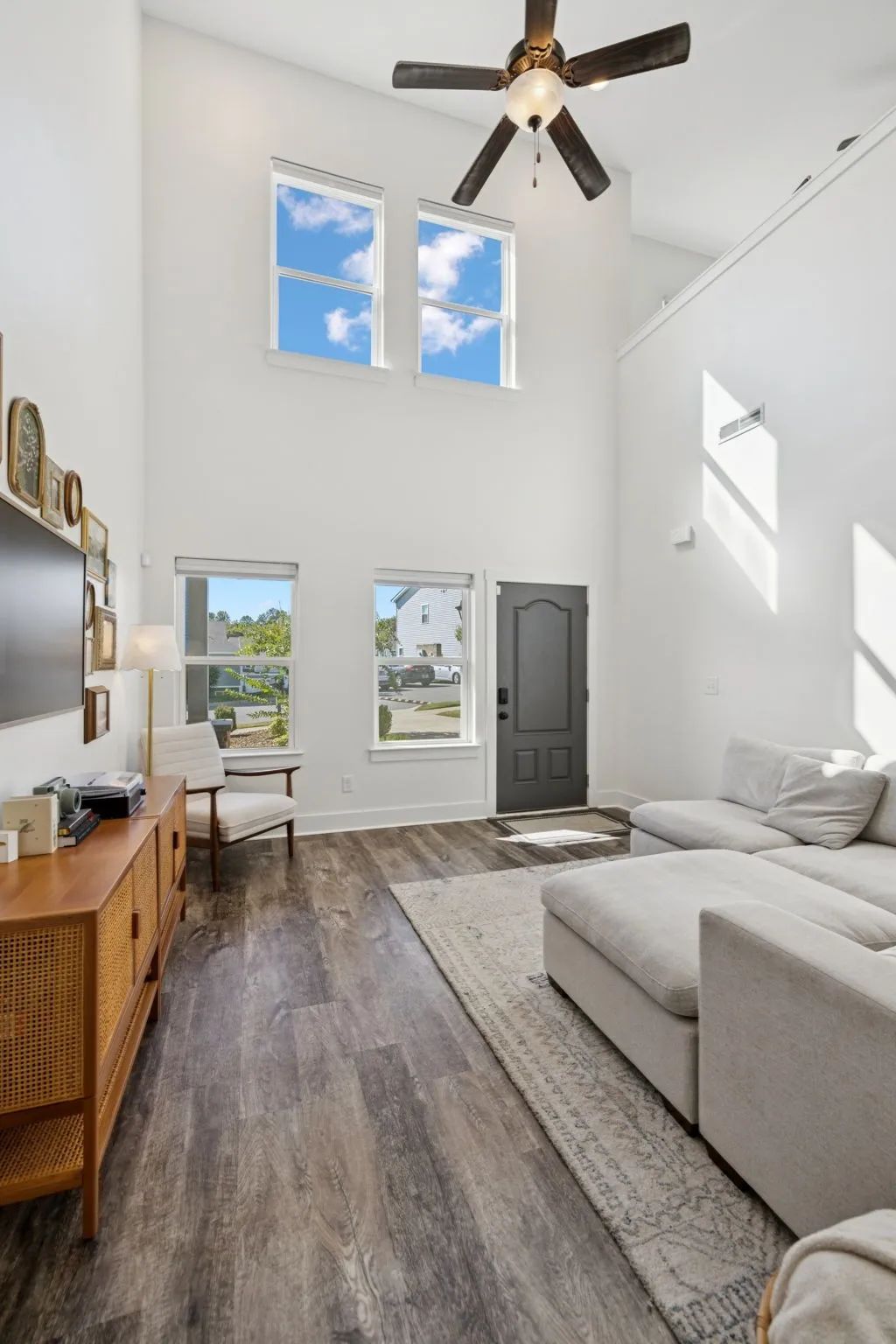 Step inside to find soaring high ceilings and an open-concept layout that makes the home feel bright and airy. The primary suite is conveniently located on the main level, featuring a spacious layout and private bath, perfect for easy everyday living.