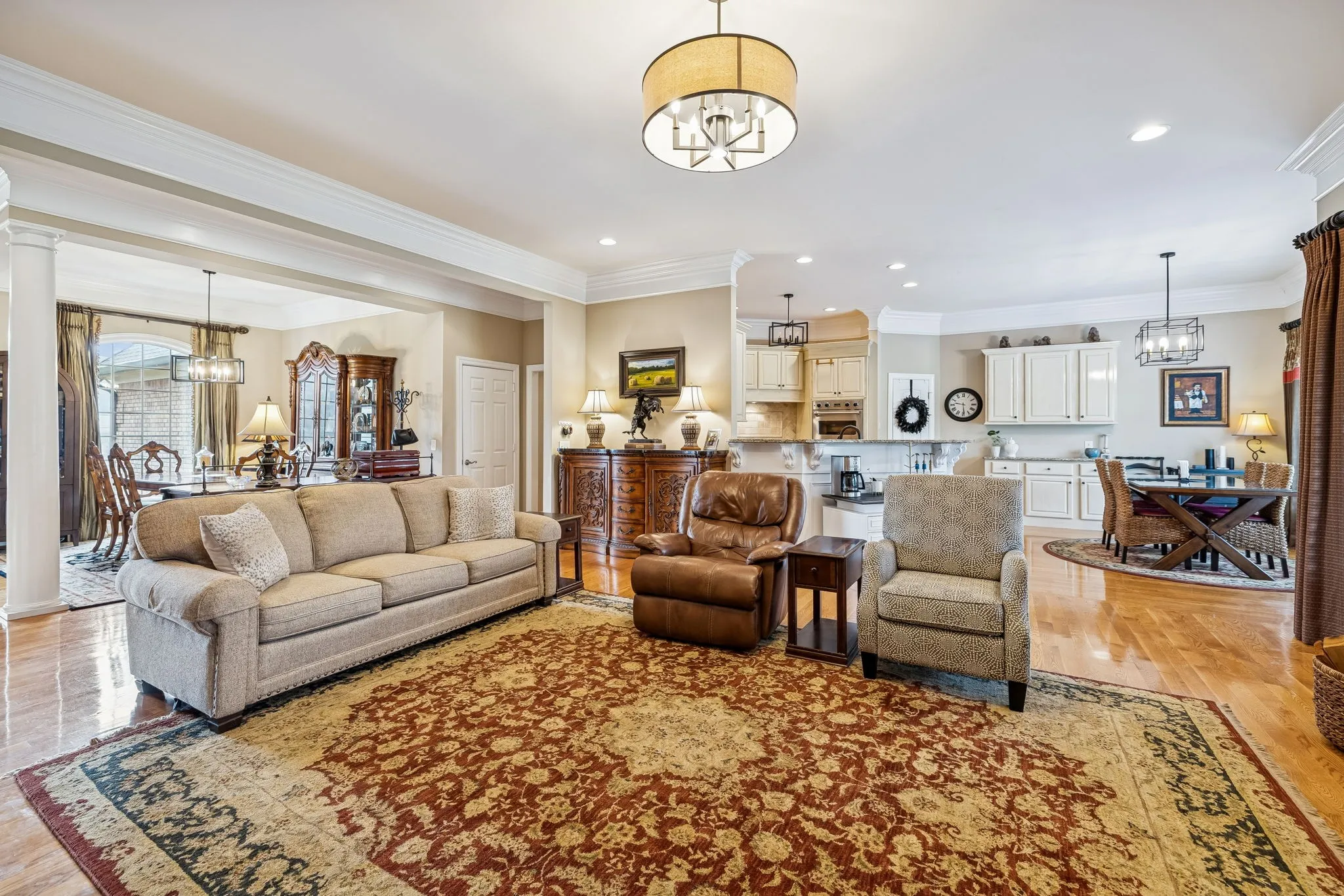 Don’t miss this beautifully crafted custom all-brick home, nestled in the highly sought-after Stonecrest subdivision. Located just minutes from downtown Columbia—yet offering the peaceful feel of country living. Situated on a full acre on a quiet cul-de-sac with a private backyard that provides both space and serenity. The main level features four spacious bedrooms and three full bathrooms, while upstairs offers a large bonus room with an additional 5 th bedroom and full bath—perfect for guests or a private retreat. Beautiful sand-and-finish hardwood floors gleam throughout the main-level living areas. The open floor plan is exceptional for entertaining.