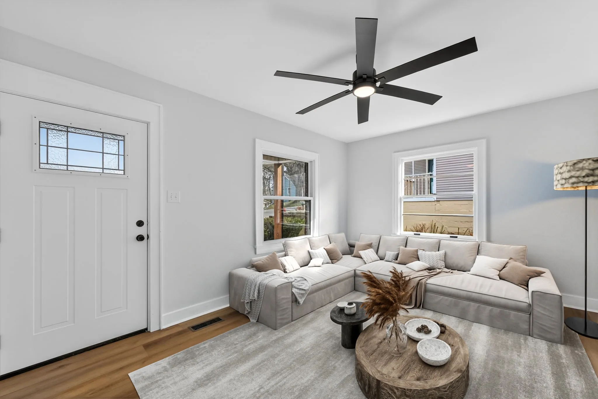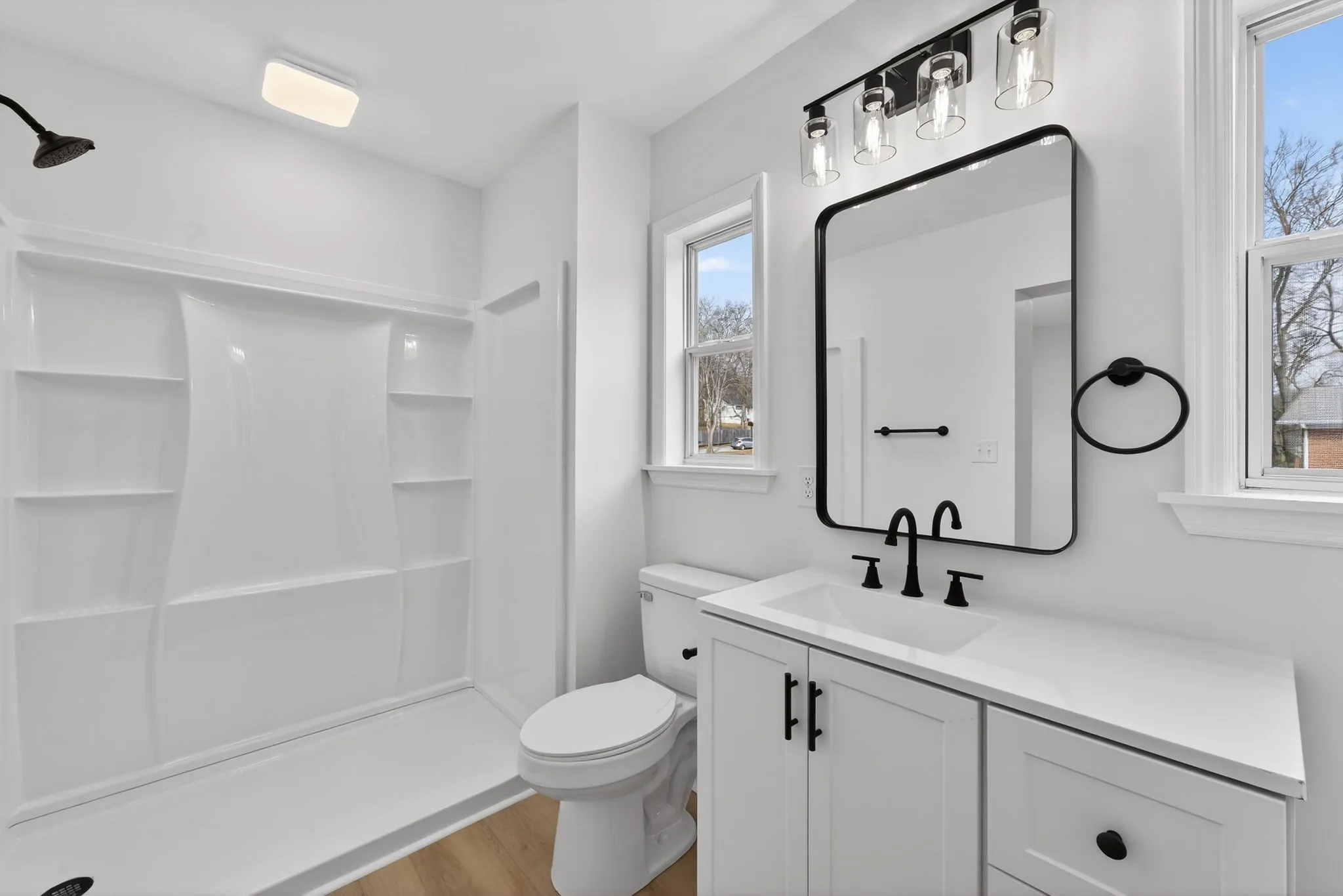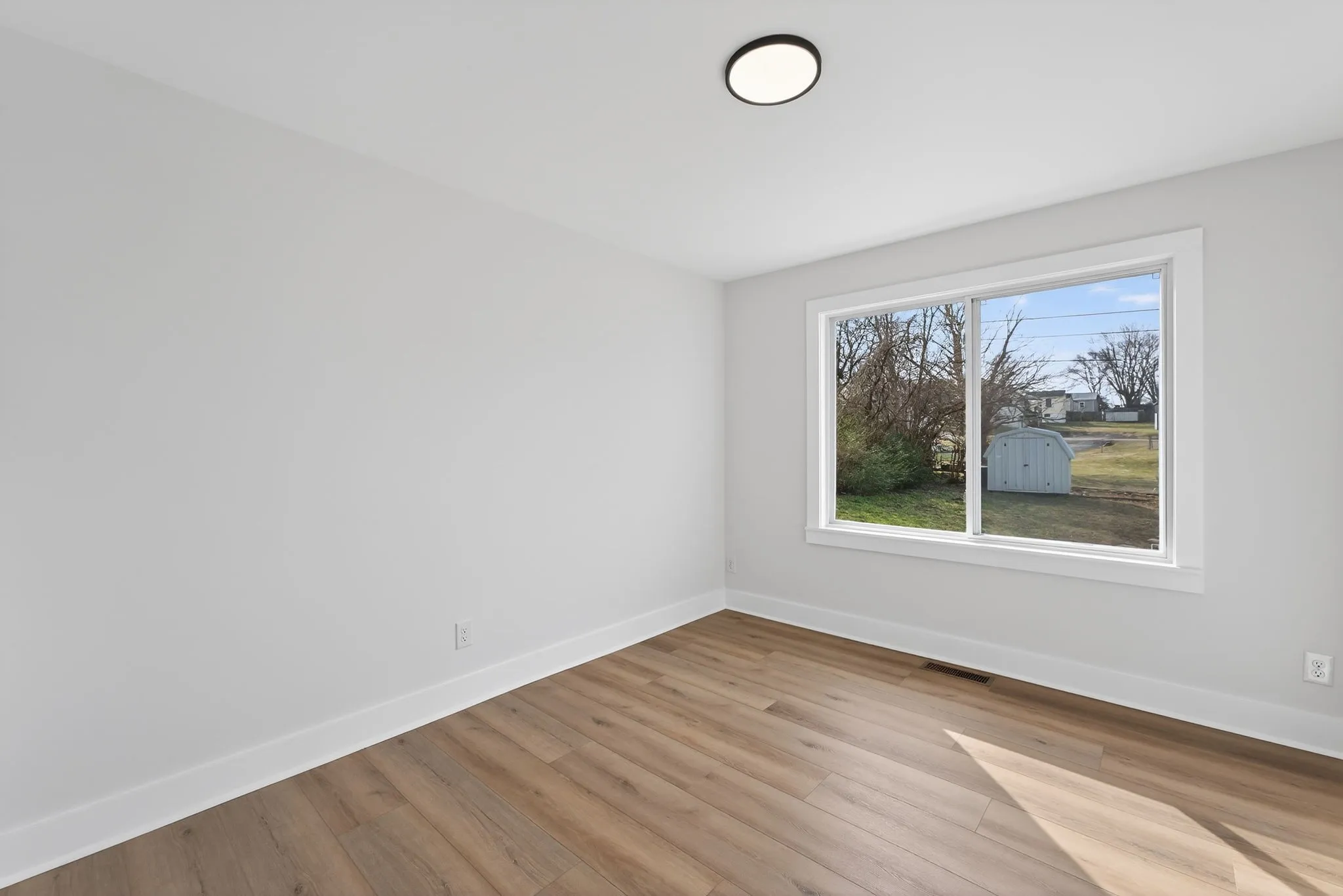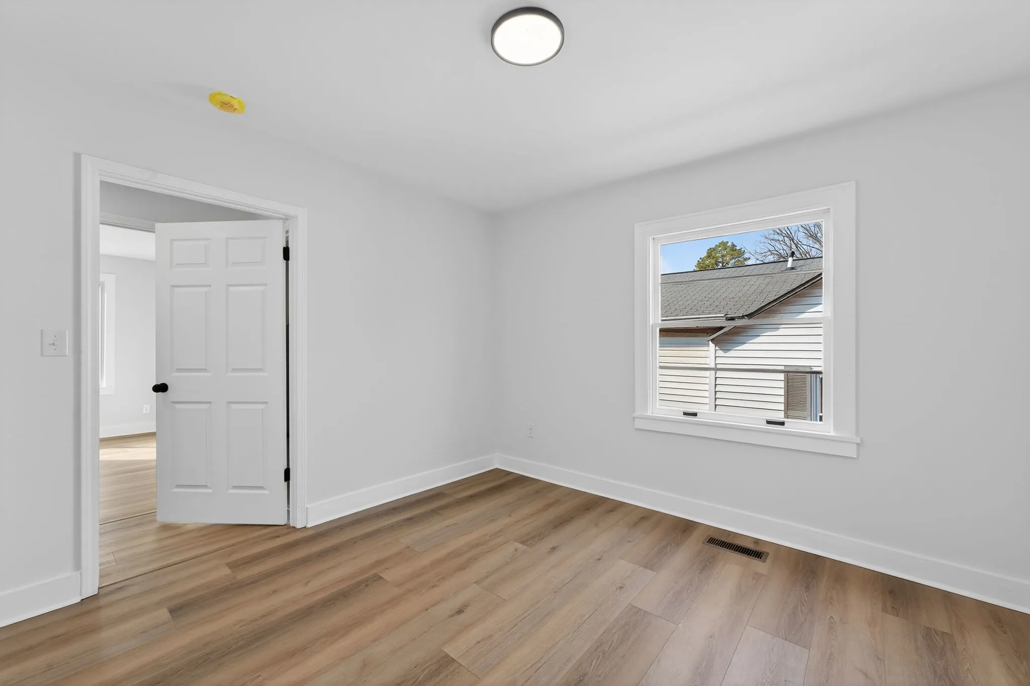 The home now features three comfortable bedrooms, including an added bedroom at the rear, and two fully remodeled bathrooms with updated fixtures and finishes throughout. New LVP flooring flows seamlessly from room to room, tying the home together with a clean, fresh feel.