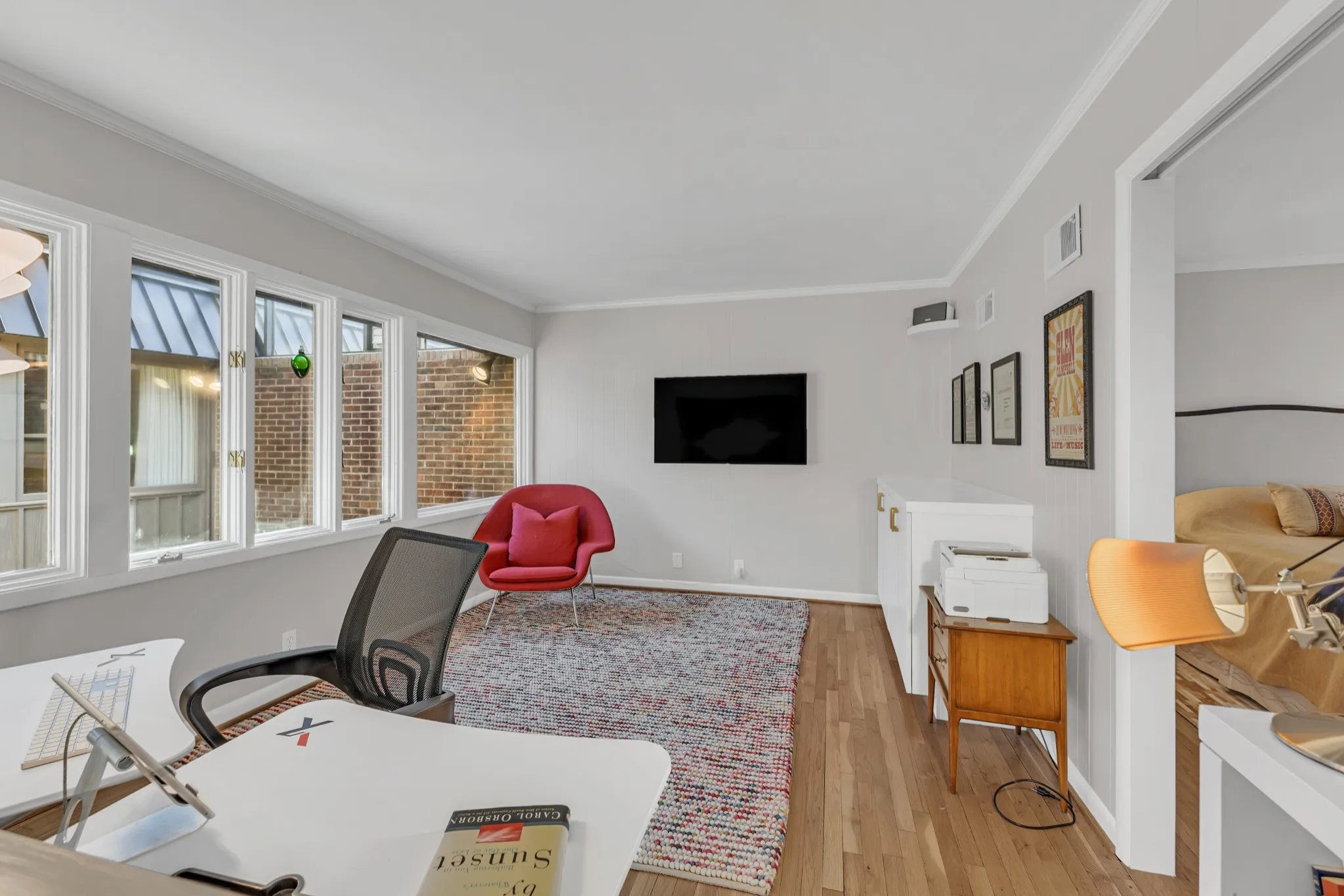 Offered fully furnished and set among Nashville’s cherished arboretum neighborhood, Regency Park, 678 Timber Ln is a charming 2-story condominium that feels like a secluded private home. This unit features a rare fully covered all-season greenhouse style atrium as well as a fully fenced rear patio. Inside is a fully fitted kitchen, open and inviting dining room, sunken living room, and library/home office. The carport also features an EV charger.