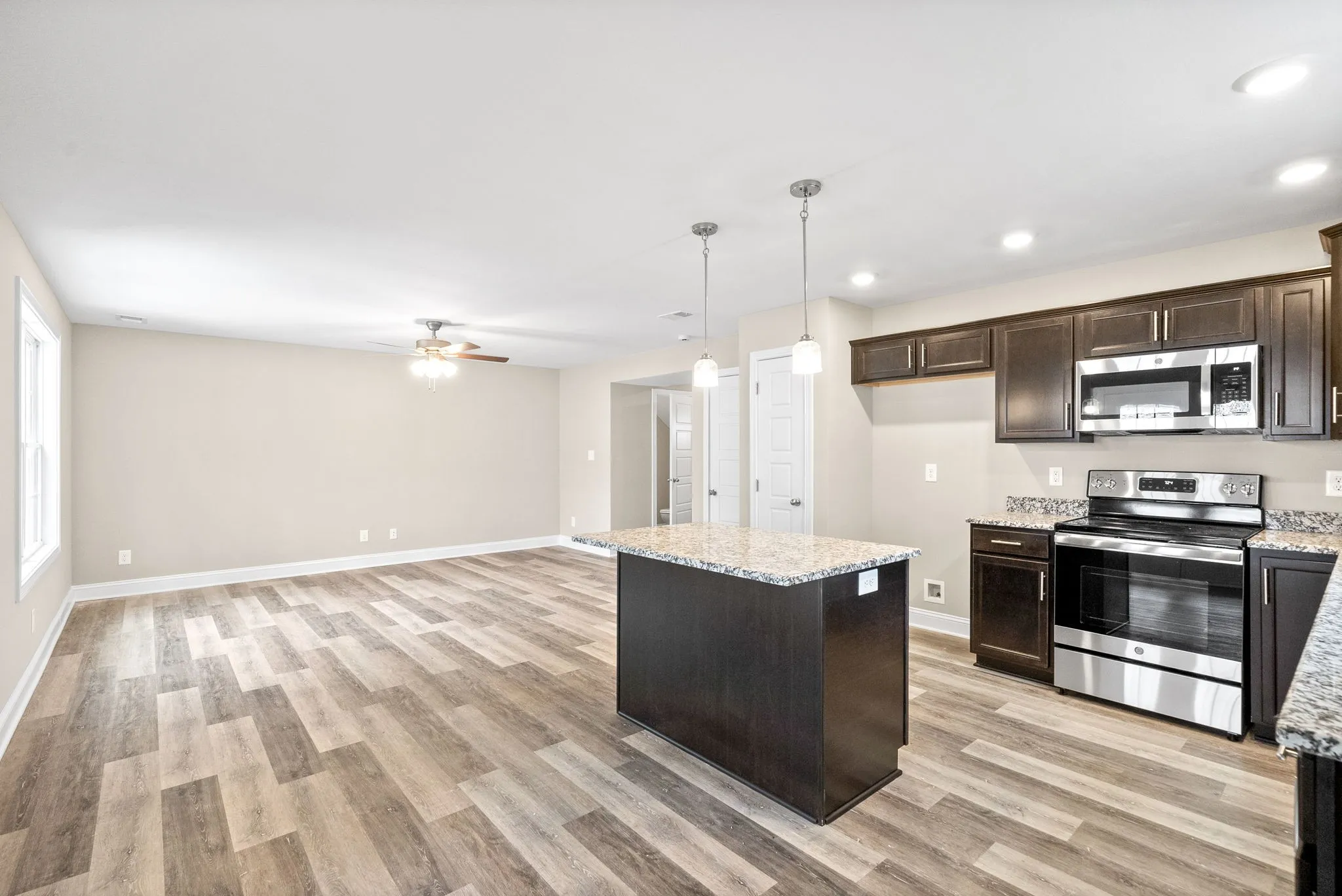Modern 3-Bedroom, 2.5-Bath Home with Open Layout & Two-Car Garage This beautiful home offers a modern, spacious layout with an open-concept main level. The living room flows seamlessly into the kitchen and dining area, creating an ideal space for everyday living and entertaining. The kitchen is equipped with a stove, refrigerator, dishwasher, and microwave. Upstairs, the primary suite features a generous walk-in closet and a private ensuite bathroom. Two additional well-sized bedrooms share a full bathroom with modern fixtures. Additional highlights include a dedicated laundry room with washer and dryer connections, a two-car garage, and a spacious back deck. Sorry, no pets.