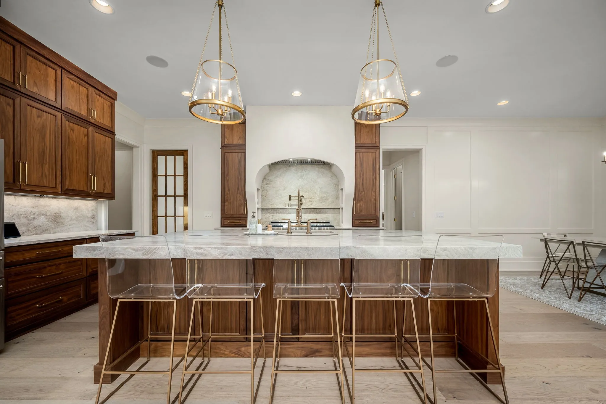 +"PublicRemarks": "Highly sought after Riverview Cove. Step into luxury! Custom built in 2025. Painted brick w/wood accents, custom wood doors leading into entry w/herringbone wood with gold trim, step into the living room w/custom fireplace and arched builtins on both sides, luxury kitchen w/custom walnut cabinets w/builtins, Taj Mahal countertops to include backsplash, custom ArcasStone hood range. top end appliances, coffee bar builtin under the steps w/walnut glass doors, butler's pantry w/microwave, sink and custom shelves, dining room/office features walnut coffered ceiling, safe space built in dining room panel, primary bedroom down w/builtin dresser, bathroom suite w/heated tile floors, heated toilet w/niche, steam tile shower, freestanding tub w/niche, integrated sinks built into countertops in primary suite bathroom, 1/2 bath and kitchen sink, laundry w/custom cabinets, sink, built in trash cans, hanging rod. Upstairs features 3 bedrooms w/full baths, custom closets w/builtin drawers, step-down bonus room w/1/2 bath and closet. media room,Laundry room w/custom cabinet & hanging rod, huge walk in floored attic for storage, speakers in primary bedroom, primary bath,, garage, and kitchen, window shades in bedrooms, office & garage, 3 car garage w/builtin storage and electric car charging dock. Outside features covered porch w/wood stone wood burning fireplace, powered automatic screens, heaters in ceiling, Outdoor kitchen w/hibachi, grill sink and refrigerator, huge bar area for seating, built in double trash bins, powered screen and heaters in ceiling, fenced in backyard w/14ft Hetz wintergreens for privacy, landscape lighting, irrigation and mature landscaping, Turf in dog run area w/hidden dog door to home.Huge roundabout driveway for plenty of additional parking Spray foam insulation all throughout the home reducing utility expenses. Ubiquiti security cameras w/facial recognition and keypad access on garage side. Entire home water filtration system since day 1."