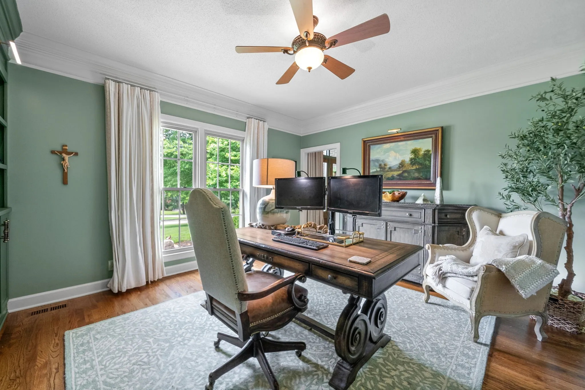 Thoughtfully curated and extensively upgraded, this stunning home offers refined living with exceptional craftsmanship throughout. Set on a spacious .95-acre lot, professional landscaping, mature trees, and timeless curb appeal create a striking first impression.