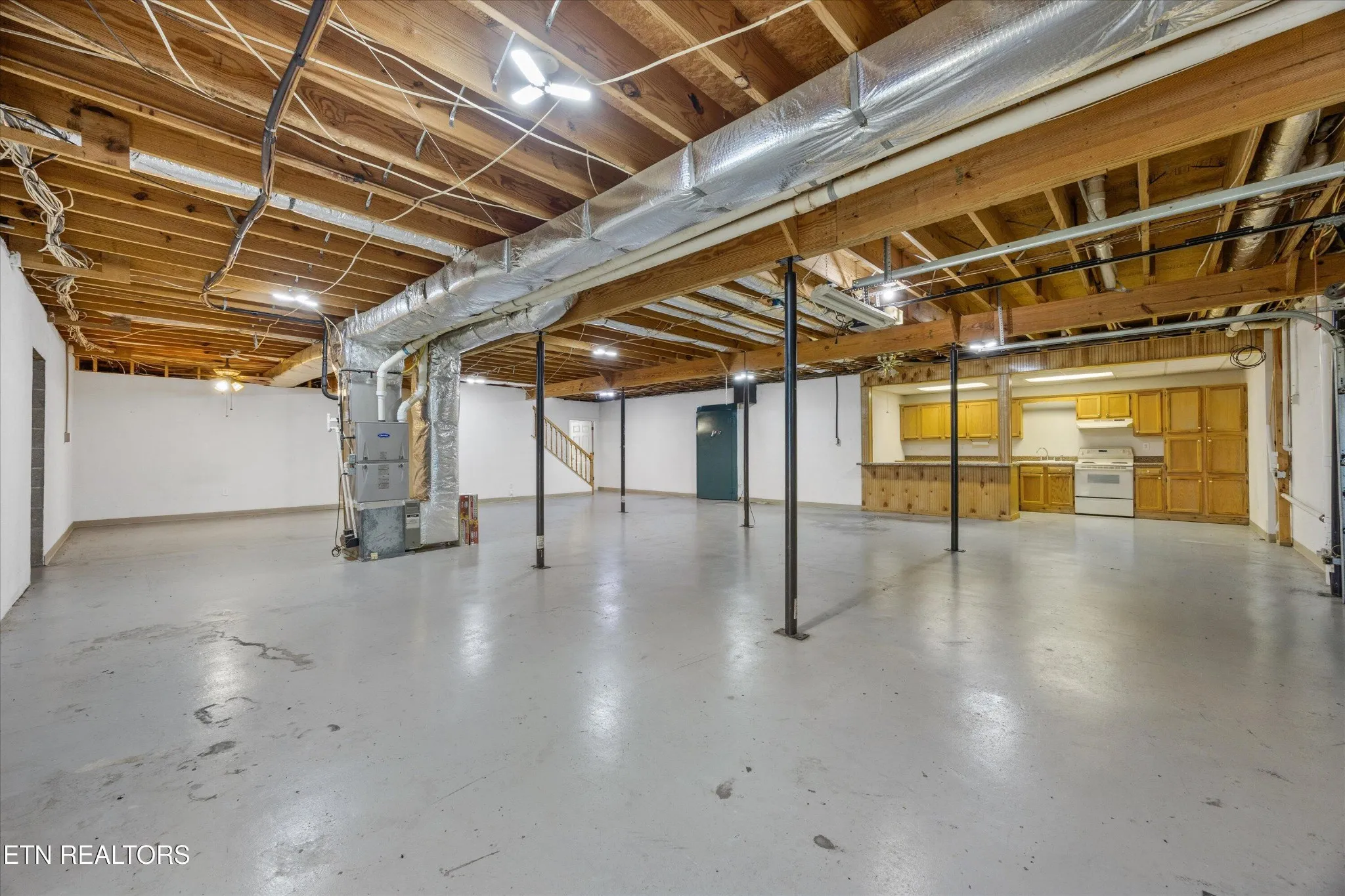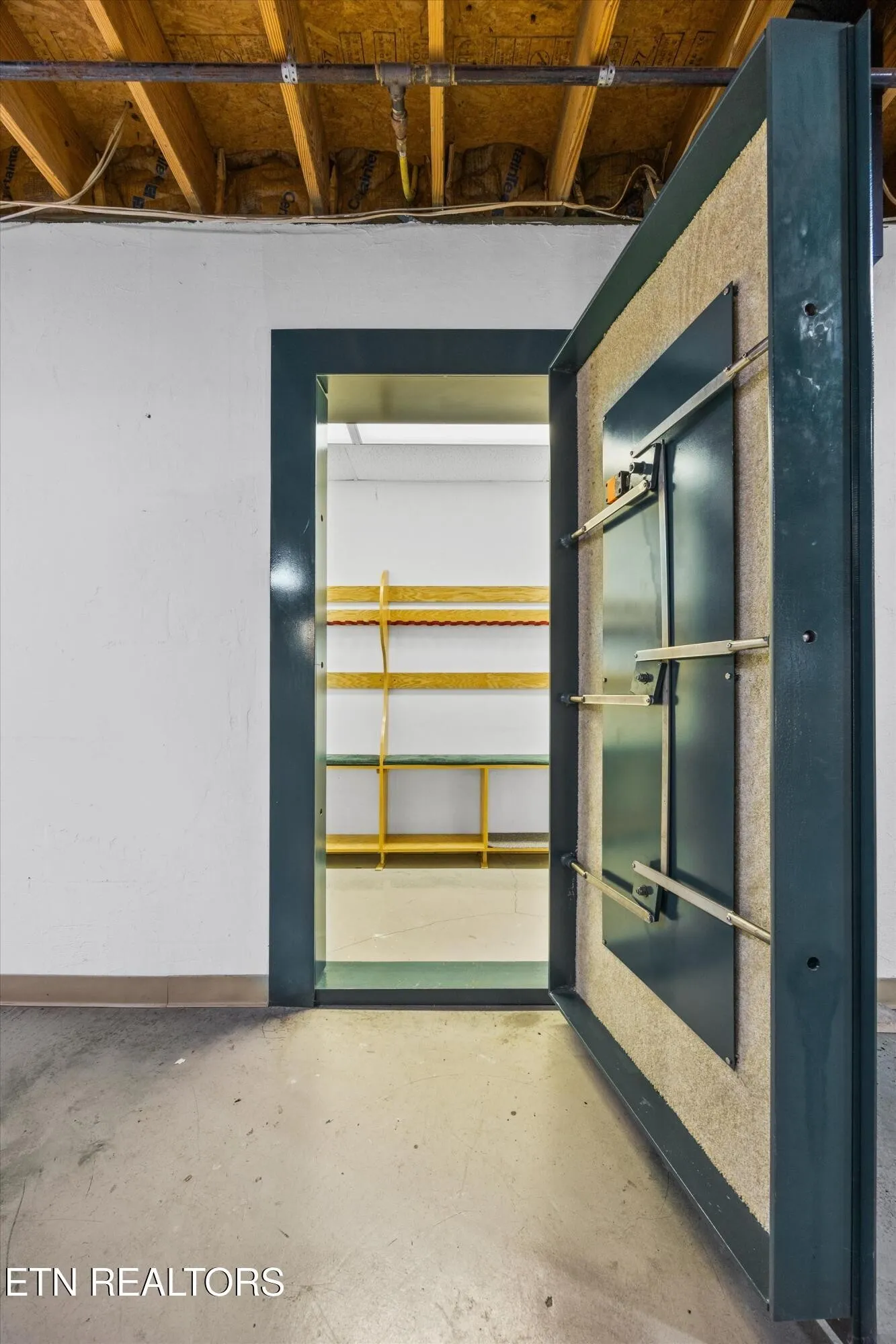 The basement includes a second kitchen, bedroom and bath – ideal for an in-law suite with zero-entry access. The basement also includes a 6×22 custom built bank vault utilized as a walk-in gun safe, a flue for a wood stove that can heat the home throughout the winter months, and an additional basement garage bay.