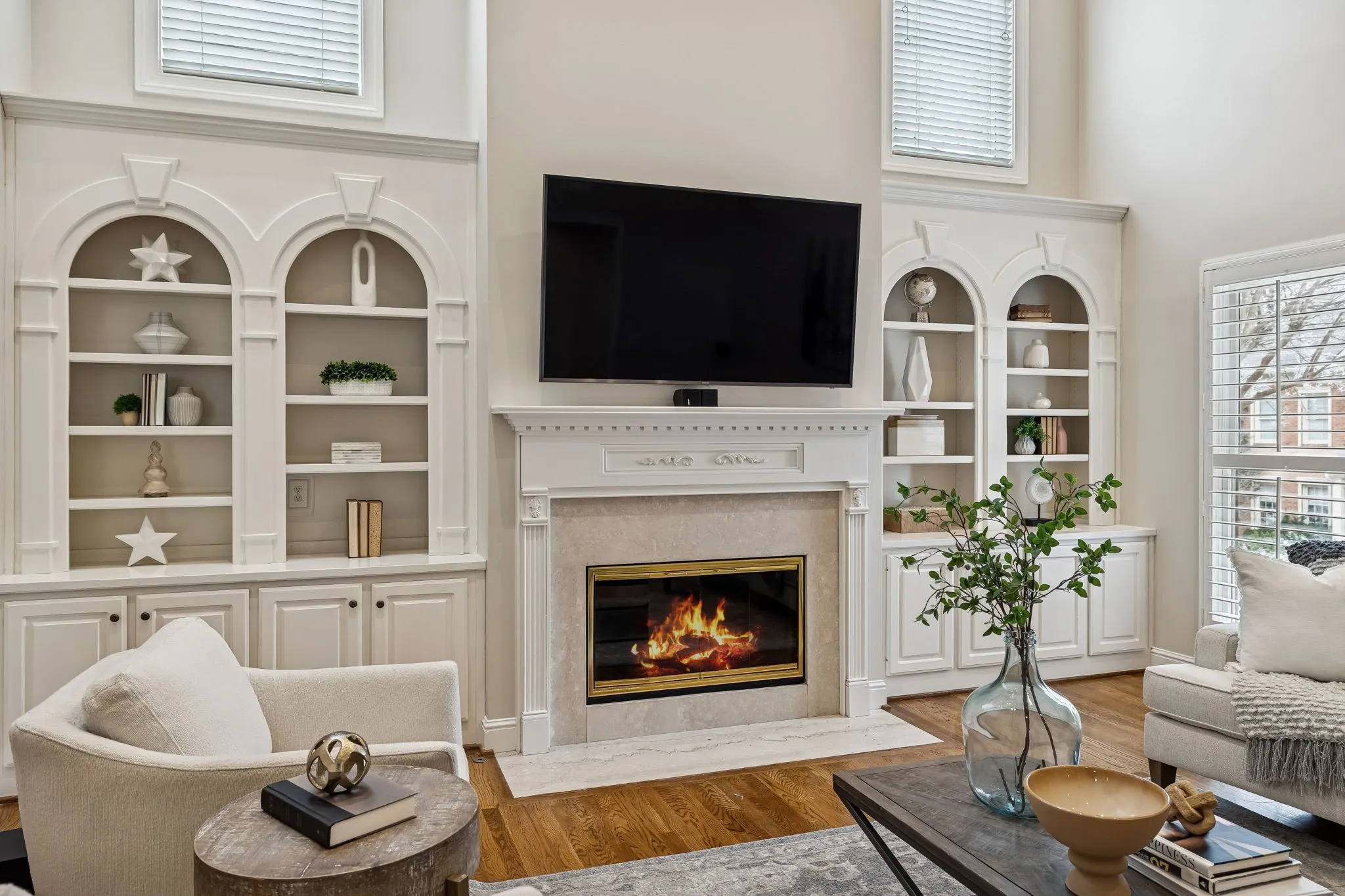 Step into the gourmet chef’s kitchen with premium quartzite countertops, custom cabinetry, and high-end stainless-steel appliances, flowing seamlessly into the casual breakfast area and fireside living room — ideal for gatherings large or small. The luxurious main-level primary suite serves as a private retreat with dual walk-in closets and a spa-inspired bath.