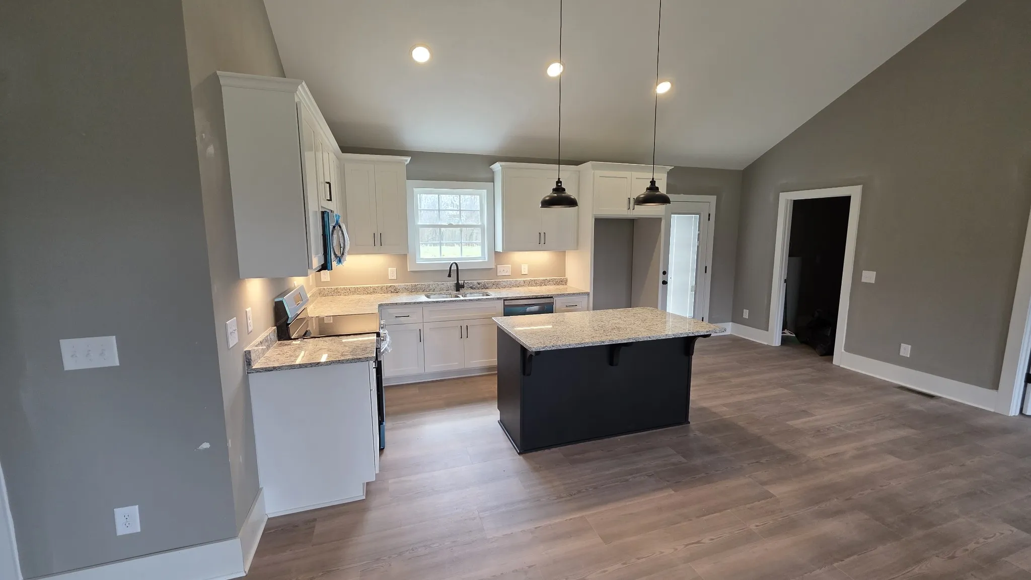 Welcome home to your new construction retreat! Move in to our 3 bedroom, 2 bathroom home on one level with an open floor plan, vaulted ceilings, and a gorgeous view of country living. Enjoy your spacious and level 1.91 AC+/- property. The house features custom built white cabinets, granite counter tops, a large kitchen island that’s perfect for entertaining, stainless steel appliances, LVP flooring throughout, and a separate laundry room. Schedule a showing today before it’s gone!