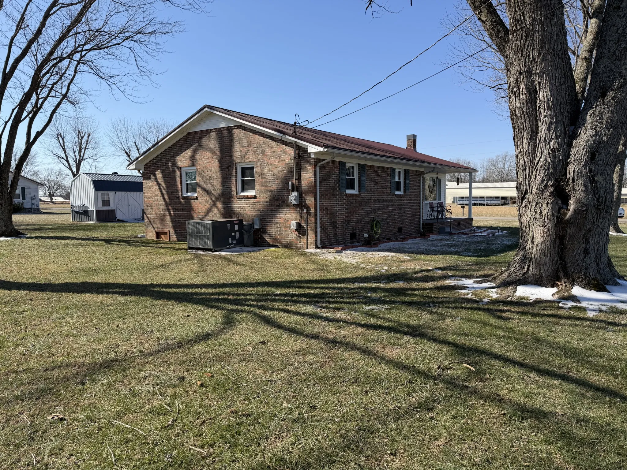 Move-in ready 3-bedroom, 2-bath single-family home offering 1,225 sq ft of comfortable living on a level corner lot. Enjoy the convenience of being close to town while still having an out-of-town feel. Recent updates throughout include a 3-year-old roof, luxury vinyl plank flooring in the kitchen, and hardwood flooring in the living room with built-in shelving. The home features a newly installed gas wall heater, with gas lines in place for a future propane tank as a backup heat source, and a home alarm system for added peace of mind. Outdoor highlights include a covered deck, 10×15 storage shed, and a newly installed metal carport with concrete parking slab. A well-maintained property that’s ideal for first-time buyers or anyone looking for a low-maintenance, move-in ready home. No city taxes. Furniture can be purchased separately.