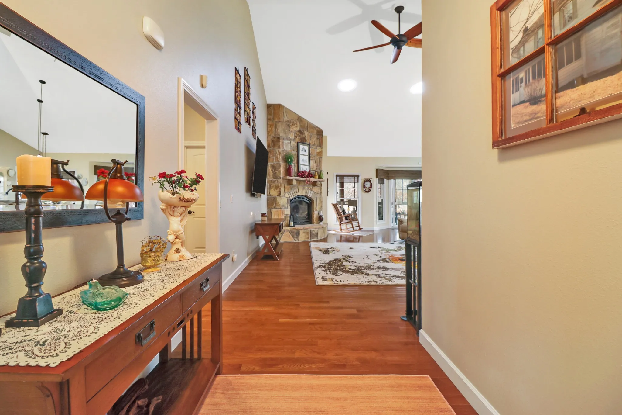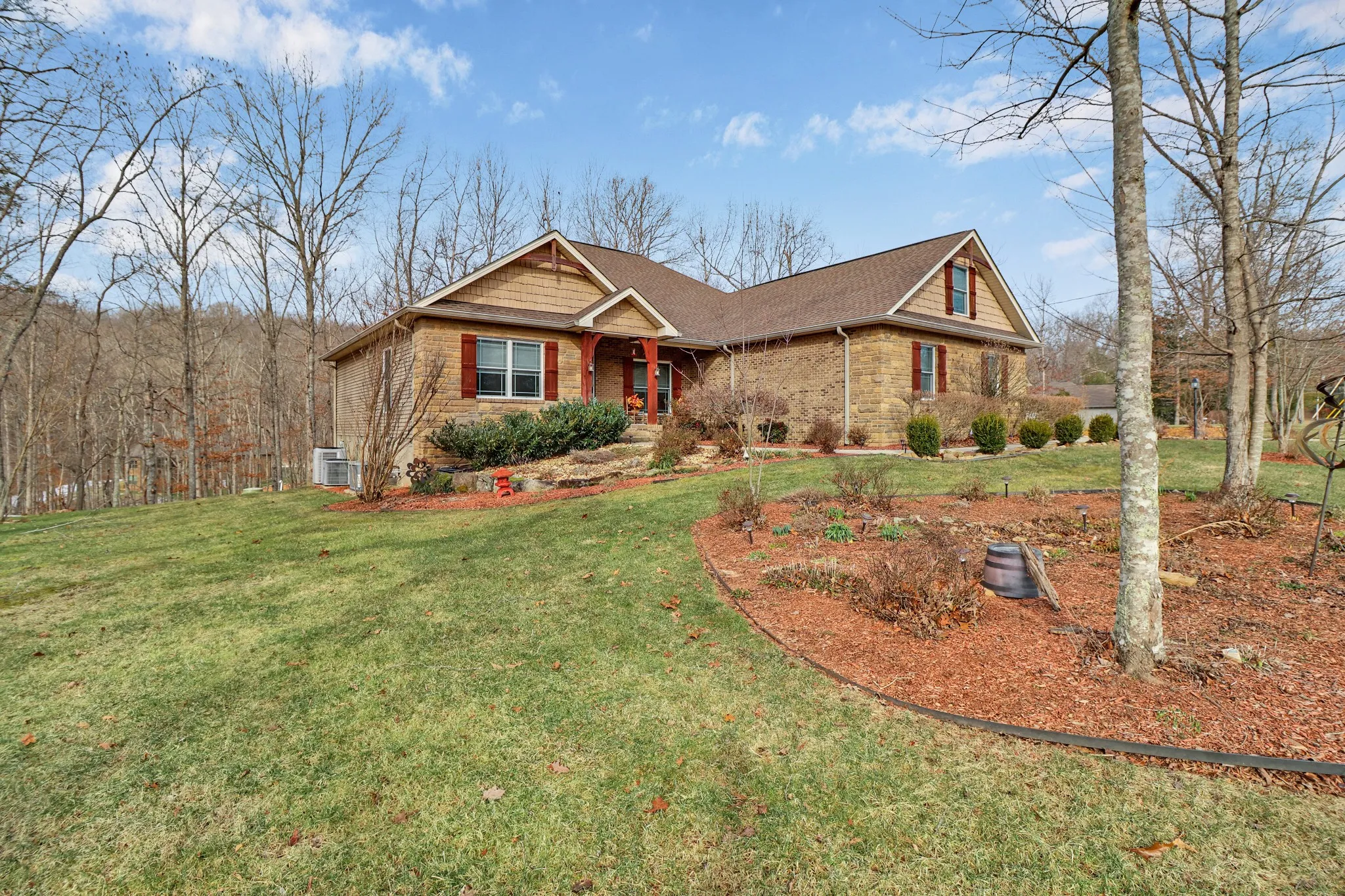Meticulously maintained one-owner custom-built home offering 3 bedrooms, 3 full baths, and a second-floor bonus room with its own bath—ideal for guests or flexible living. Situated on 0.77 acres with natural gas and public sewer in the highly sought-after Fairfield Glade community. Level driveway provides easy access and everyday convenience. An impressive 8-foot entry door welcomes you into a bright great room featuring cathedral ceilings, a gas stone fireplace with wall-mounted heat & Glo control, and abundant natural light enhanced by three Velux sun tunnels added in 2020. Enjoy year-round relaxation in the 12×24 sunroom with PGT windows installed in 2017, waterproof carpet padding, and a split ductless heating and cooling system.The split bedroom floor plan offers comfort and privacy.Guest bedrooms are generously sized, and the guest bath features durable, low-maintenance suede countertops.The primary suite is a true retreat with a custom walk-in closet and spa-inspired bath including soaking tub, dual sinks, suede countertops, and a large walk-in shower.The kitchen is both functional and inviting with maple cabinetry, granite countertops, stainless steel appliances including a gas range, and a large walk-in pantry. A dedicated den/study with crown molding and pocket doors adds versatility.The upper-level flex space includes a full bath, new light fixture, and its own HVAC system—perfect for guests, hobbies, media room, or private office. Additional highlights include a spacious laundry room with cabinets, cubby storage, and washer/dryer with pedestals to remain; Infinity dual-fuel HVAC with gas furnace (heating component replaced January 2026), zone control thermostat, surge protection, whole-house generator, sound-dampening interior walls, security system, leaf guards, dehumidifier, and crawl space with concrete pad ideal for storage or workshop use. Convenient to shopping, dining, healthcare, and community amenities. Buyer to verify info before making offer.