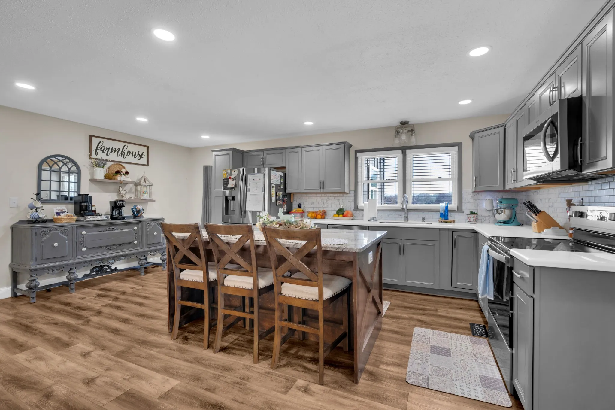 This charming mini farm is the perfect blend of country soul and modern shine. Sitting pretty on 6 beautiful acres and completely remodeled from top to bottom. Step inside and fall in love with warm LVP flooring, stylish solid-surface counter tops, new cabinets, and a welcoming living room accented by stunning exposed wood beams that bring all the rustic character. The cozy den is made for chilly evenings, complete with a wood-burning fireplace that invites you to kick back, sip something warm, and stay awhile. Outside the land offers endless possibilities.. gardens, animals, trails, or just wide-open space to breathe. A two-car detached garage gives you room for vehicles, hobbies, or extra storage. Home also has a flex room that could be used as an office, sunroom, or playroom for the kids. Peaceful, polished, and packed with charm… this mini farm isn’t just a home it’s a lifestyle waiting to be lived.