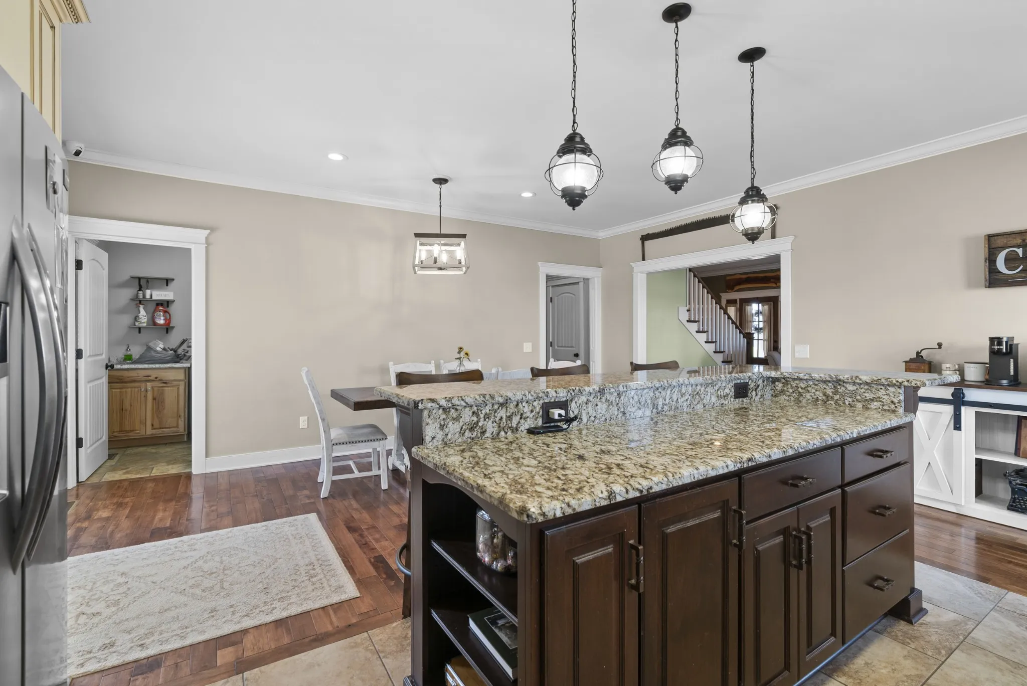 Country living at its finest on 24 beautiful acres! This spacious all brick home offers a well-designed floor plan with generous living areas, perfect for both everyday living and entertaining. The main residence features an open and inviting layout,4 comfortable bedrooms,3 baths and functional spaces filled with natural light. A standout feature of this property is the approximately 1,200 sq ft barndominium addition, offering endless possibilities—ideal for a guest suite or in-law quarters. The addition provides flexibility rarely found and adds exceptional value to the property. Enhancing the property is a 30 x 40 detached workshop/garage, ideal for equipment storage, hobbies, or professional use. The workshop is complemented by 12-foot sheds with concrete on each side, providing covered space for tractors, trailers, RVs, boats, or additional storage.