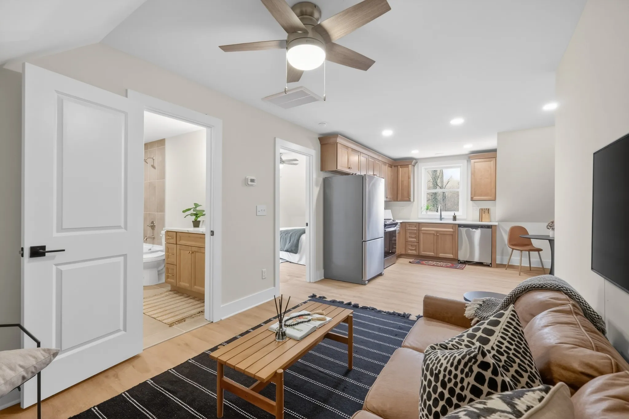 Boasting 5 bedrooms and 4.5 baths across approximately 3700 ft.², this home offers spacious, thoughtfully designed living areas. Step inside to soaring ceilings, new hardwood floors, and bright, natural light that fills every room. The kitchen has been fully redesigned with high-end finishes, custom cabinetry, and modern appliances—perfect for both everyday living and entertaining. This property also includes its own driveway and alley access for added convenience. The home also features a detached accessory dwelling unit (DADU) above a large two-car garage and walkout balcony, providing additional living space. Both house or DADU is short term rental eligible. Great opportunity for extra income!