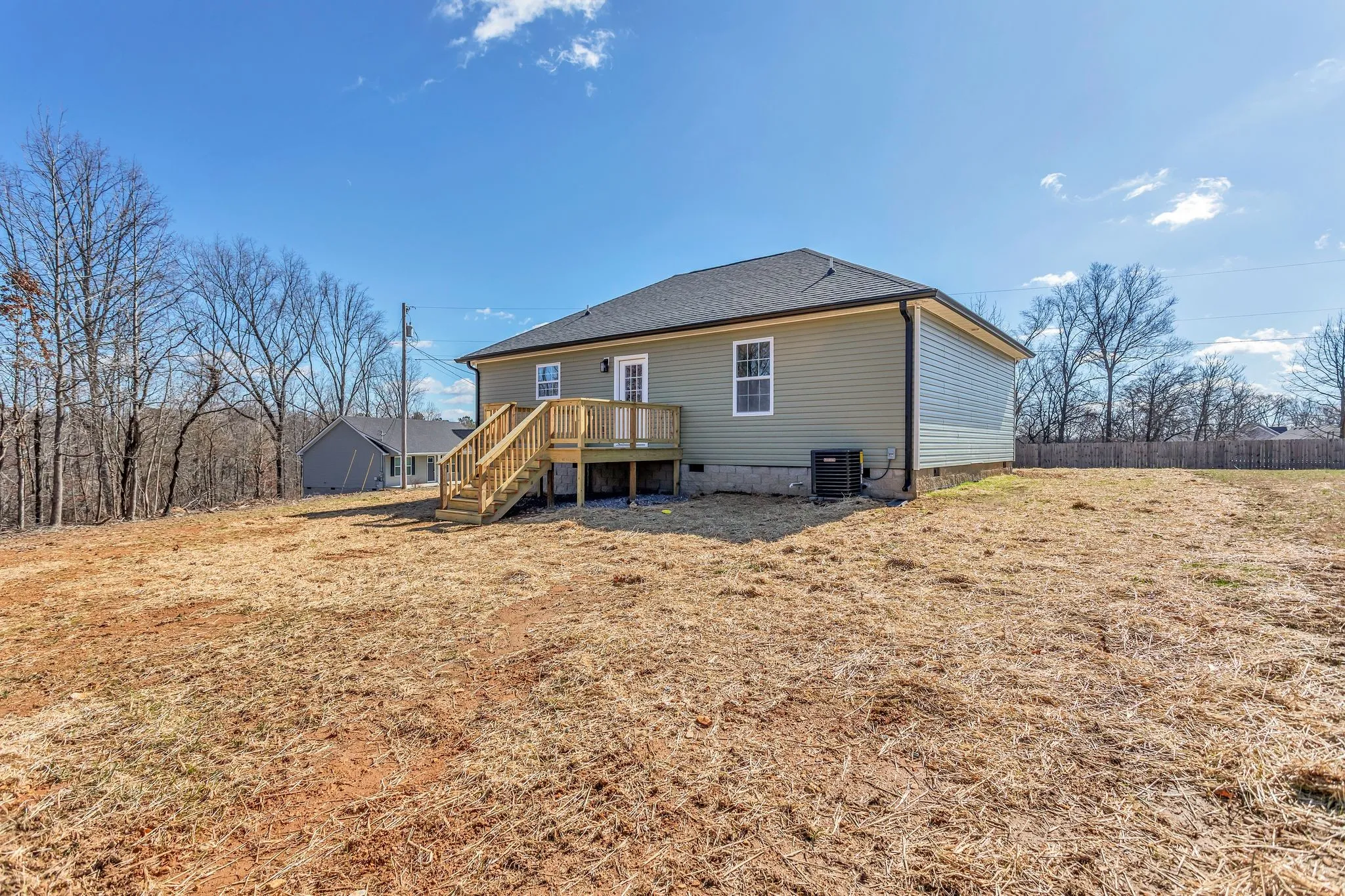 New Construction Home, 3 bedrooms, 2 full baths, open concept living and dining area seamlessly connected to the kitchen, with deck right off the dining area overlooking wooded area, kitchen comes with custom cabinets and quartz countertops, lvp flooring throughout home, high ceiling in living room, tray ceiling in master bedroom and walk-in closet, bathtubs have tiled walls up to the ceiling, recess lighting throughout. Modern design set in a peaceful country setting. Pictures coming soon!! Builder will provide 1 year warranty.