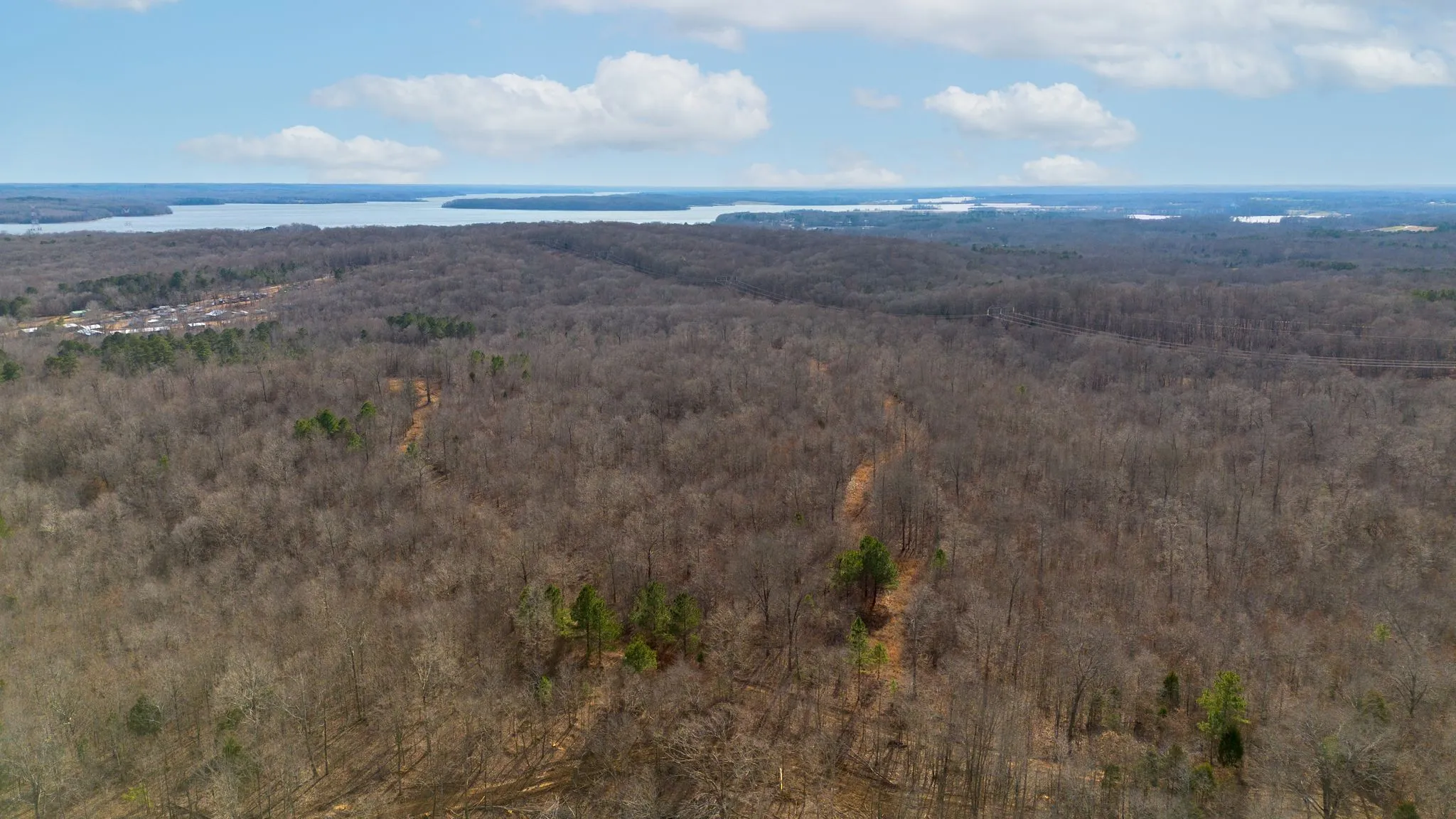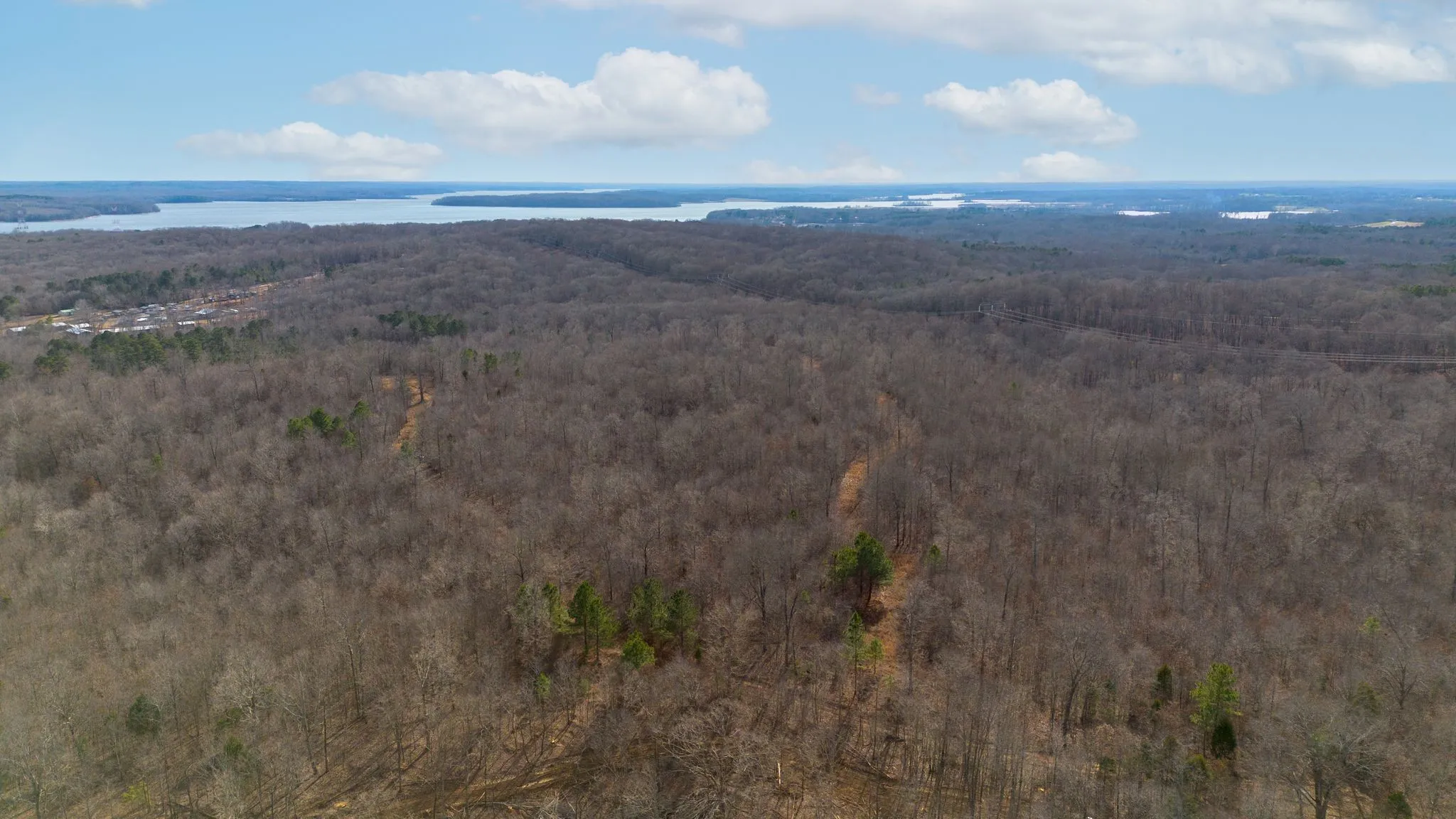 Spanning approximately 140+/- acres, this exceptional tract offers a mostly wooded landscape with gentle rolling topography and numerous potential building sites throughout. The diverse terrain provides both privacy and versatility, making it an ideal setting for recreation, a private estate, family compound, or a thoughtfully planned multi-use development. The property offers convenient access with nearly half a mile of county road frontage along its west boundary. Entry is gained through a gated trail near the northwest corner, inviting you to weave along the northern side and experience its natural beauty firsthand while providing access throughout. Multiple trails branch off to the south traversing along beautiful open ridges exposing scenic views toward Kentucky Lake, while varied elevations create a beautiful backdrop for homesites. Electric, city water and high speed fiber for WiFi available along the road.