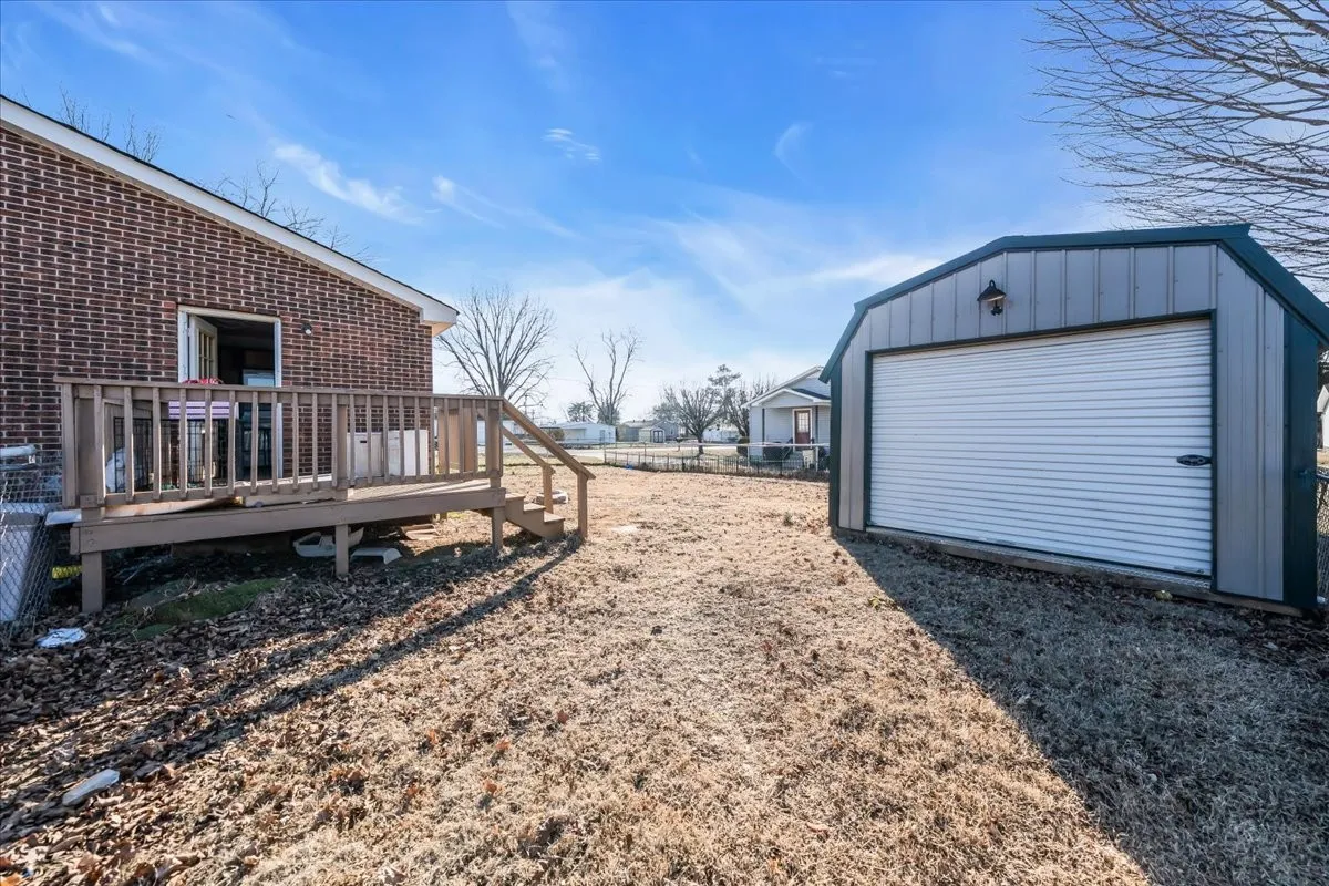This 2 bed/2 bath brick home offers 996 sq. ft. of practical living space on 0.22 acres lot. The kitchen has wooden cabinets, stainless steel appliances, granite counters, and stone-look tile flooring. Bedrooms feature vinyl wood-look flooring and a dedicated laundry area. Outside, enjoy a small elevated front patio, detached 1-car garage, and fenced backyard. Move-in ready, perfect for adding personal touches and building equity.