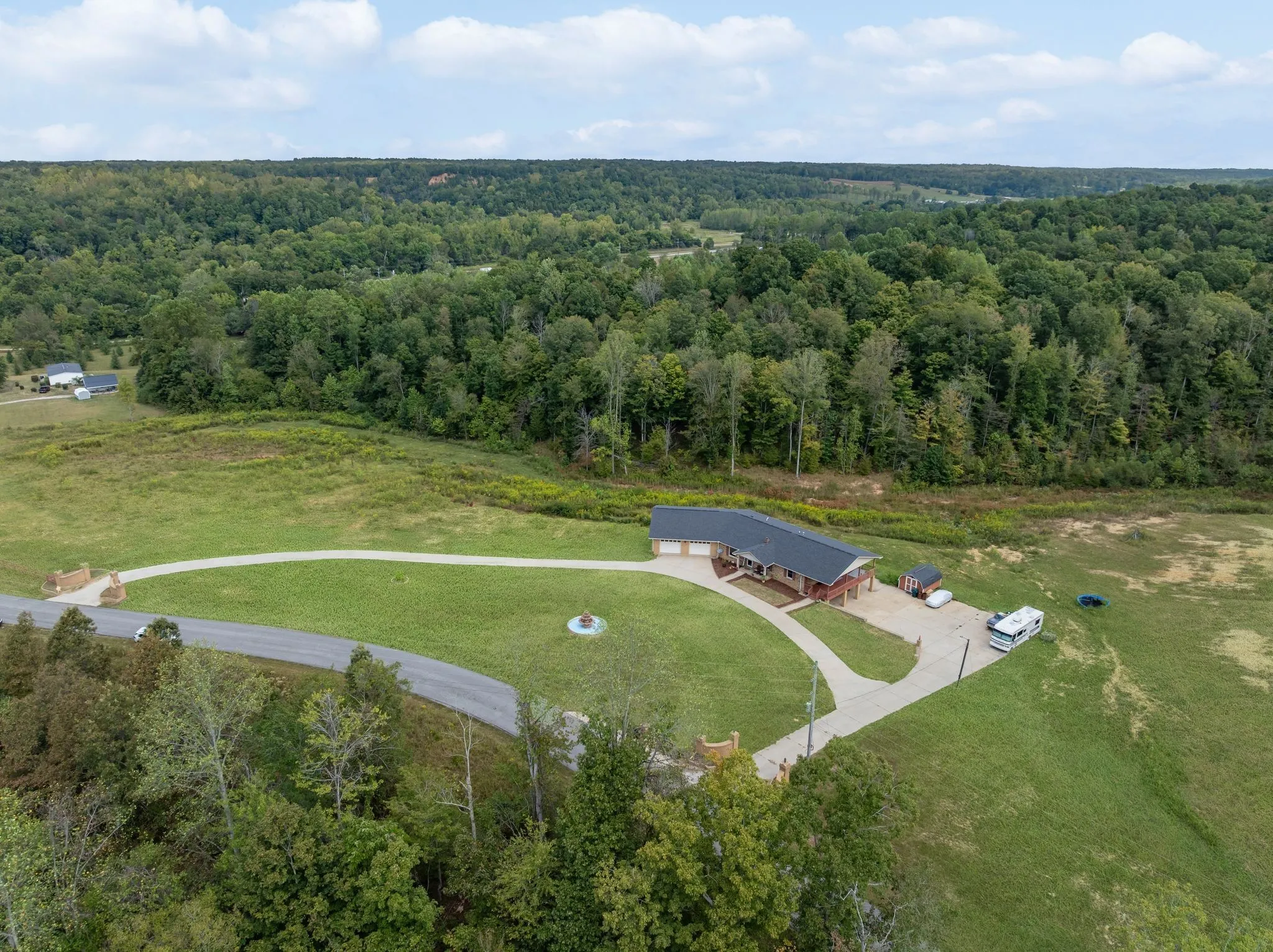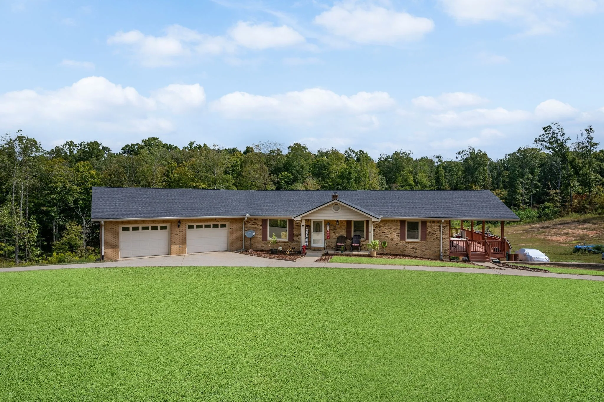 One-of-a-kind property in the heart of Waverly! This full brick home offers over 2,400 sq ft of living space with 5 bedrooms, 2 full baths, and a fully finished walkout basement. Perfect for large families or multi-generational living. Nestled on 9+ private acres, you’ll love the peace and quiet along with plenty of room to roam. Enjoy mornings or evenings on the extra large covered deck overlooking the property that is ideal for relaxing or entertaining guests. Inside, you’ll find multiple living areas, a basement bar, and abundant storage. Recent updates include a newer roof, HVAC, and water heater, plus high-speed fiber internet for work or play. Outside, the property features a circular drive with gated entrance, huge garage, outdoor storage building with power and beautiful landscaping with a fountain. No HOA, just country living at it’s best. This home combines privacy, space, and convenience. Don’t miss your chance to own this rare find in Waverly.