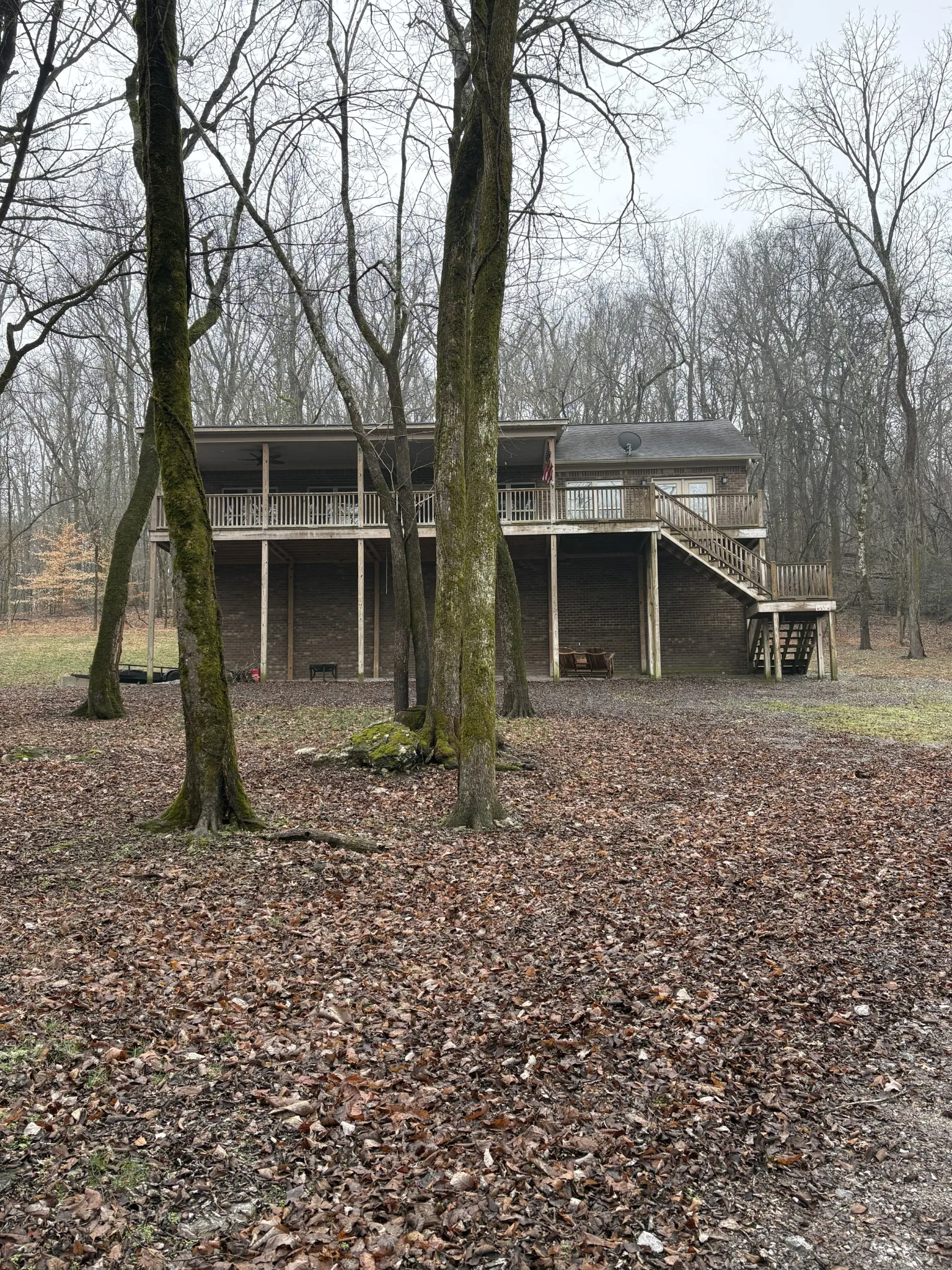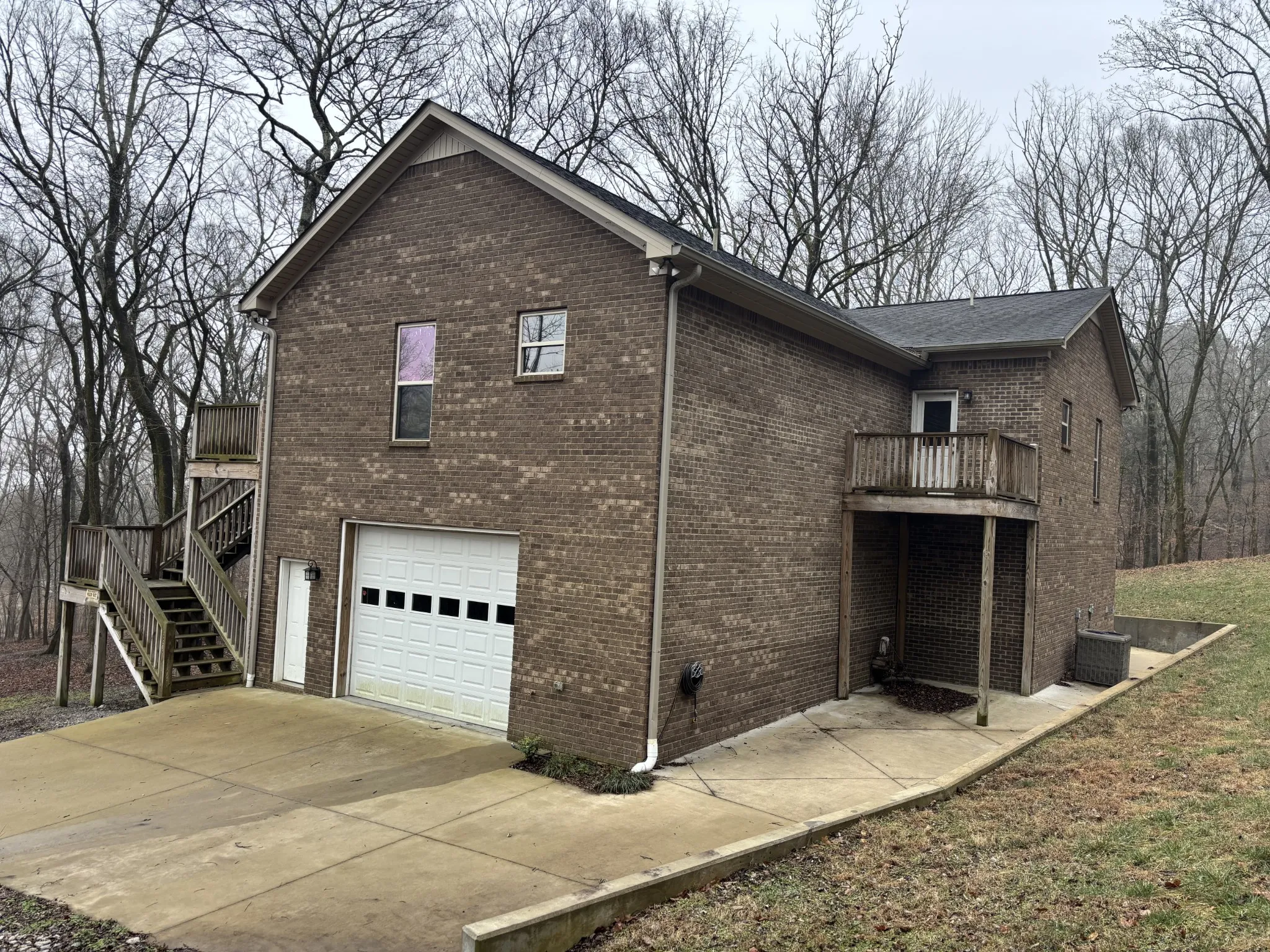 Gorgeous All Brick Home on Private & Secluded 6.2 Wooded Acres; Dead End Road; Large 2 Bedroom, 2 Bath Home with 1800 Square Feet in Basement that is Heated/Cooled with Mini Split Unit; Basement has 2 Garage Doors, One on each end of Garage w/Garage Door Openers and Room to Park AT LEAST 4 Cars; Basement also Plumbed for 1/2 Bath; Huge Great Room w/Living Area, Kitchen & Dining Area all Combined; Kitchen has Lots of Cabinetry, Granite Counters, Kitchen Island & Stainless Appliances to Remain; 2 Tiled Showers; Huge Covered Deck & Lots of Windows in Front of Home overlooking the Beautiful Private Acreage; Large Utility Rm with Closet and Access to a Private Deck; Large Primary Suite w/Huge 11×7 Walk-in Closet and Full Bath; Primary Bedroom also has Door with Access to Deck/Covered Deck Area; Primary Bath has Large Tiled Shower, Tile Floors, Double Vanities with Granite Counters, & 2 Pocket Doors. Do not miss out on this Unique Property!