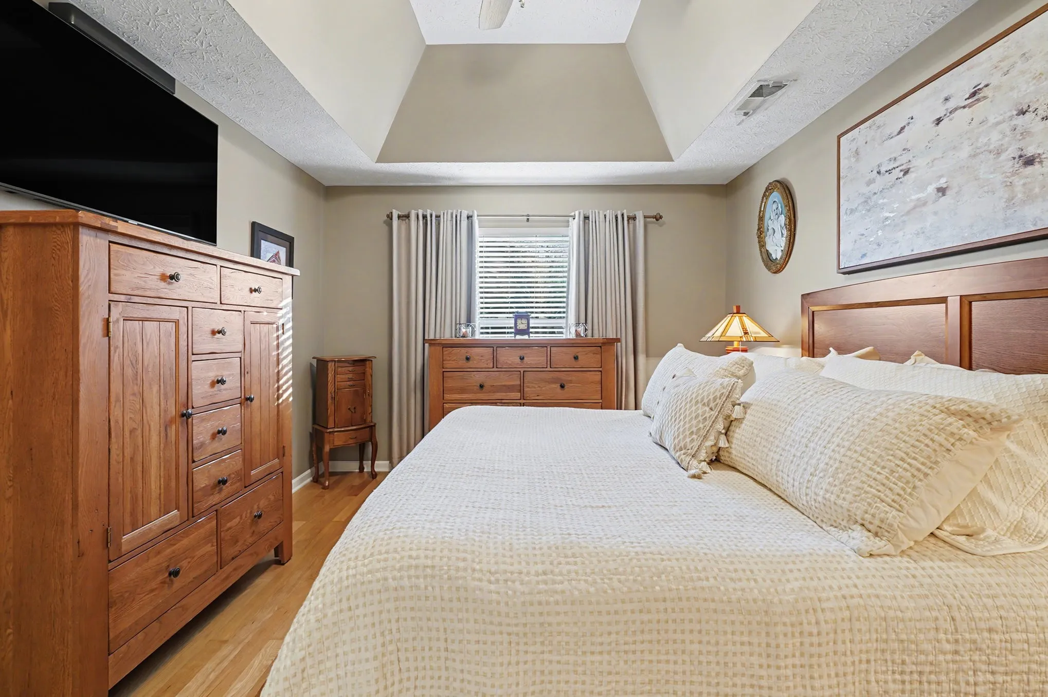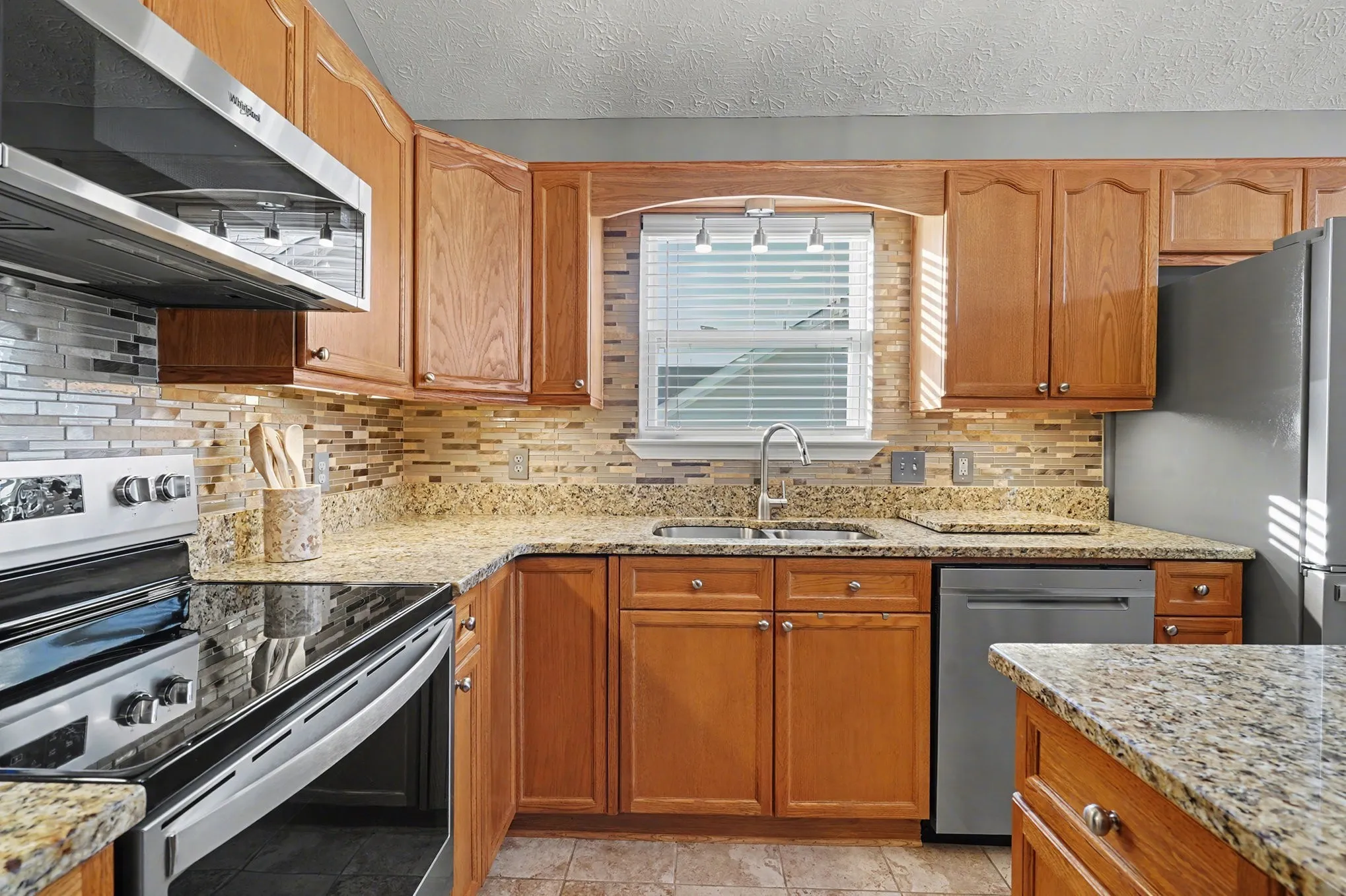 Step inside to an open living room with tray ceilings that instantly make the space feel brighter, taller, and more welcoming. The eat-in kitchen comes fully refreshed with brand-new stainless steel appliances, upgraded trim on the cabinetry, a large breakfast bar, and plenty of counter space for cooking, chatting, or just leaning while pretending you’re helping.