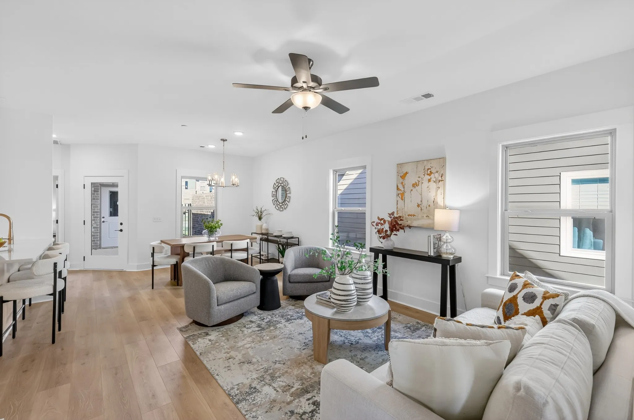Welcome to the beautiful Phillips Builders Everleigh Floorplan, offering maintenance-free & one level living in a charming cottage-style home with a private courtyard. This highly sought-after end-unit is filled with natural light, designed for comfort, perfect for those looking for simple living or close the house up and travel with ease. The main level features a spacious primary suite and a generous secondary bedroom, both conveniently located on the same floor, as well as an open great room ideal for entertaining or relaxing. The large/spacious kitchen with quartz countertops and an abundance of cabinets is a standout, making cooking a delight. Upstairs, an oversized third bedroom/bonus room awaits, complete with a full bath and large walk-in closet, offering versatile space for guests or a secondary living space. Located in The Knoll at Fairvue, this home is just a short walk to shopping, dining, a movie theater, and more. For those seeking an active lifestyle, an optional membership at nearby Tennessee Grasslands provides access to golf, a fitness center, and a pool for year-round enjoyment. Plus, take advantage of our temporary or permanent rate buy down options, or seller-paid closing costs. Contact us today to learn more about this incredible opportunity!