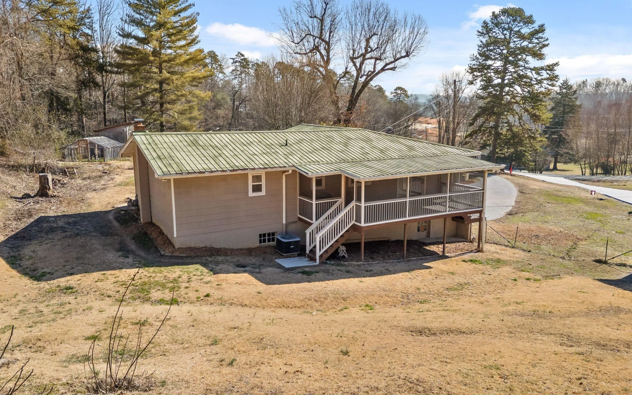 RARE FIND! Embrace the homesteading lifestyle within 1 turn of Hixson dining and shopping! This property is a unique blend of convenience and outdoor living. Charming 4 BED, 2 BATH brick home on 1.7+/- ACRES. No neighborhood restrictions for this 1 LEVEL home with bonus basement. Enjoy room to explore homestead hobbies, such as raising chickens, gardening, or nurturing the apple and fig trees! Bake a pie using the fruit from the raspberry, blackberry, and elderberry bushes planted along the fence line. Step inside to hardwood floors, a bright living room, and open-concept dining area. Oversized kitchen offers white cabinetry, storage, stainless appliances, deck access, and additional dining area. The primary suite includes a beautifully RENOVATED bath with a tiled shower, warm accents, and stunning vanity. 2 additional bedrooms and 1 full bath complete the main level. The partially-finished basement offers a customizable bonus area, bedroom/hobby room, and ample STORAGE. Relax on the large SCREENED DECK and welcoming front porch. Savor the spacious yard with a wooded backdrop. Practical features like a 1 car GARAGE, CARPORT, and SHED. Conveniently located just 3 minutes from Hwy 153, 5 minutes to major shopping and dining, and only 18 minutes to downtown Chattanooga…this home is ready for you to make it your own!