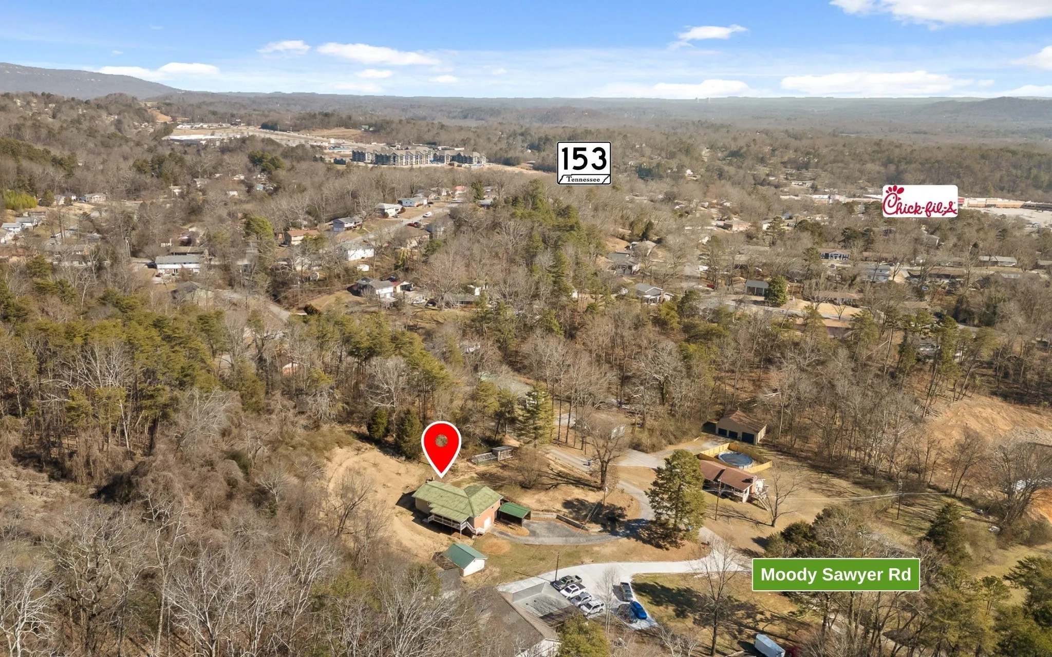 - Directions: From Downtown Chattanooga: Take 27N to TN 153S. Use left two lanes to exit to Chickamauga Dam. R on Grubb Road, Left on Moody Sawyer. Home will be on the right.