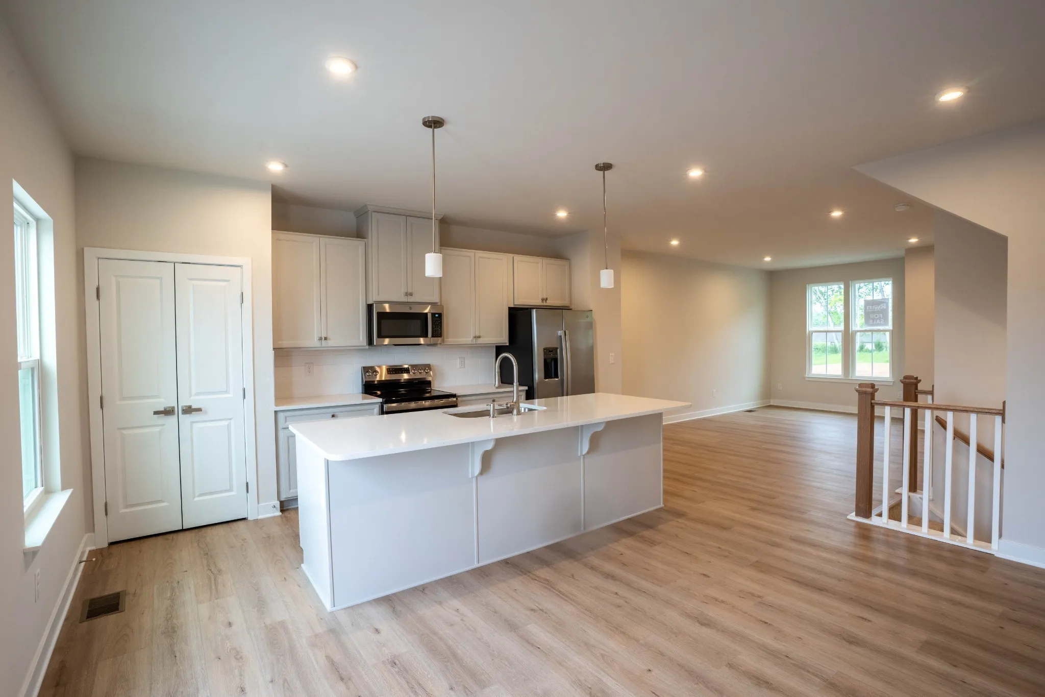 This modern townhome features a 2-car garage, unfinished basement and an open-concept main level with front door entry, powder room, and kitchen with all appliances included—even the fridge! Upstairs, enjoy a spacious owner’s suite with en suite bath and walk-in closet, plus 2 additional bedrooms, full bath, and laundry room with washer & dryer included. Included rear deck!