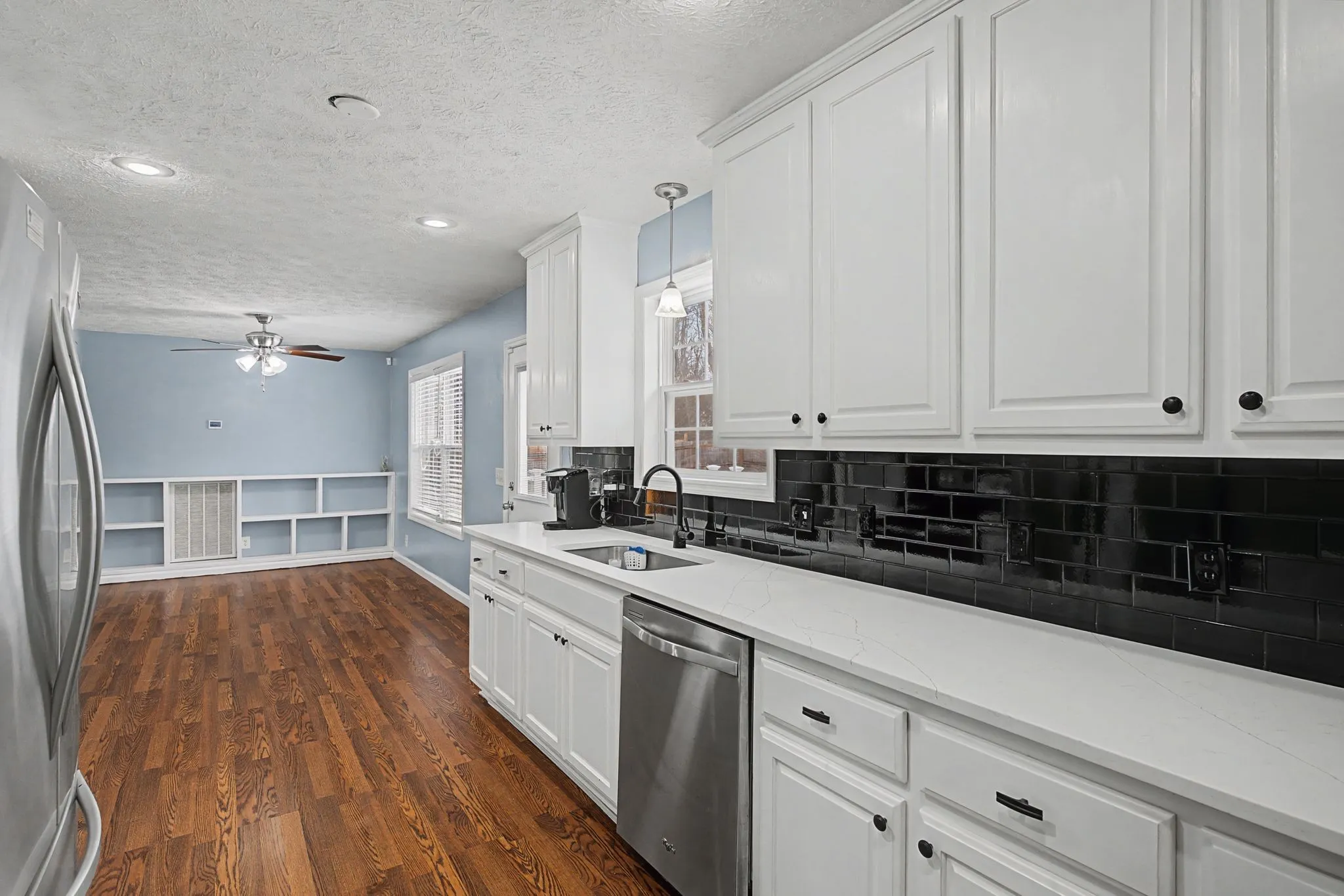 Step inside to discover fresh paint and new flooring throughout the living room, kitchen, dining area, and laundry room—creating a bright, clean, move-in-ready feel. The heart of the home shines with stunning quartz countertops in the kitchen, bathrooms, and laundry room—perfect for both daily living and entertaining.