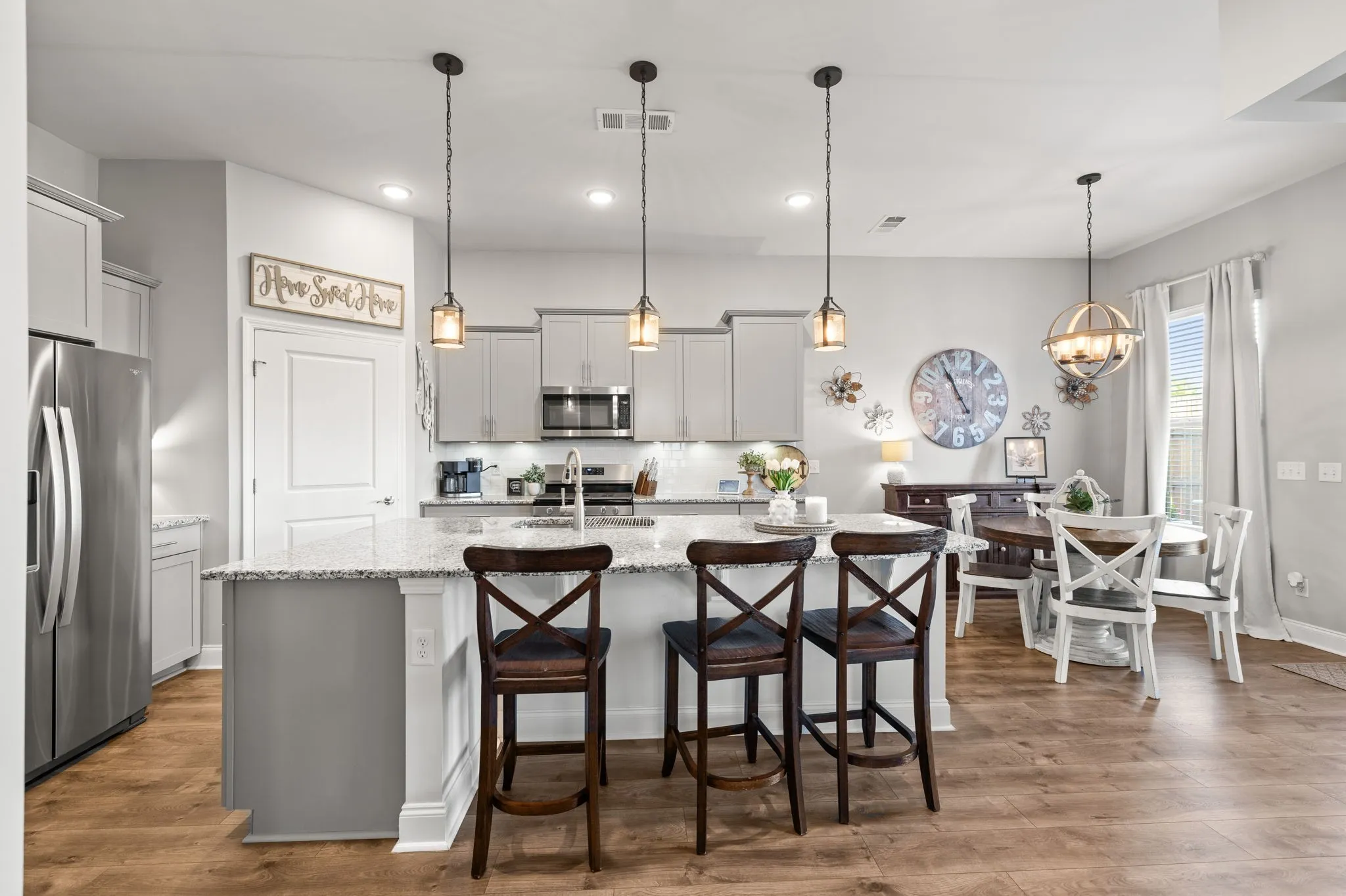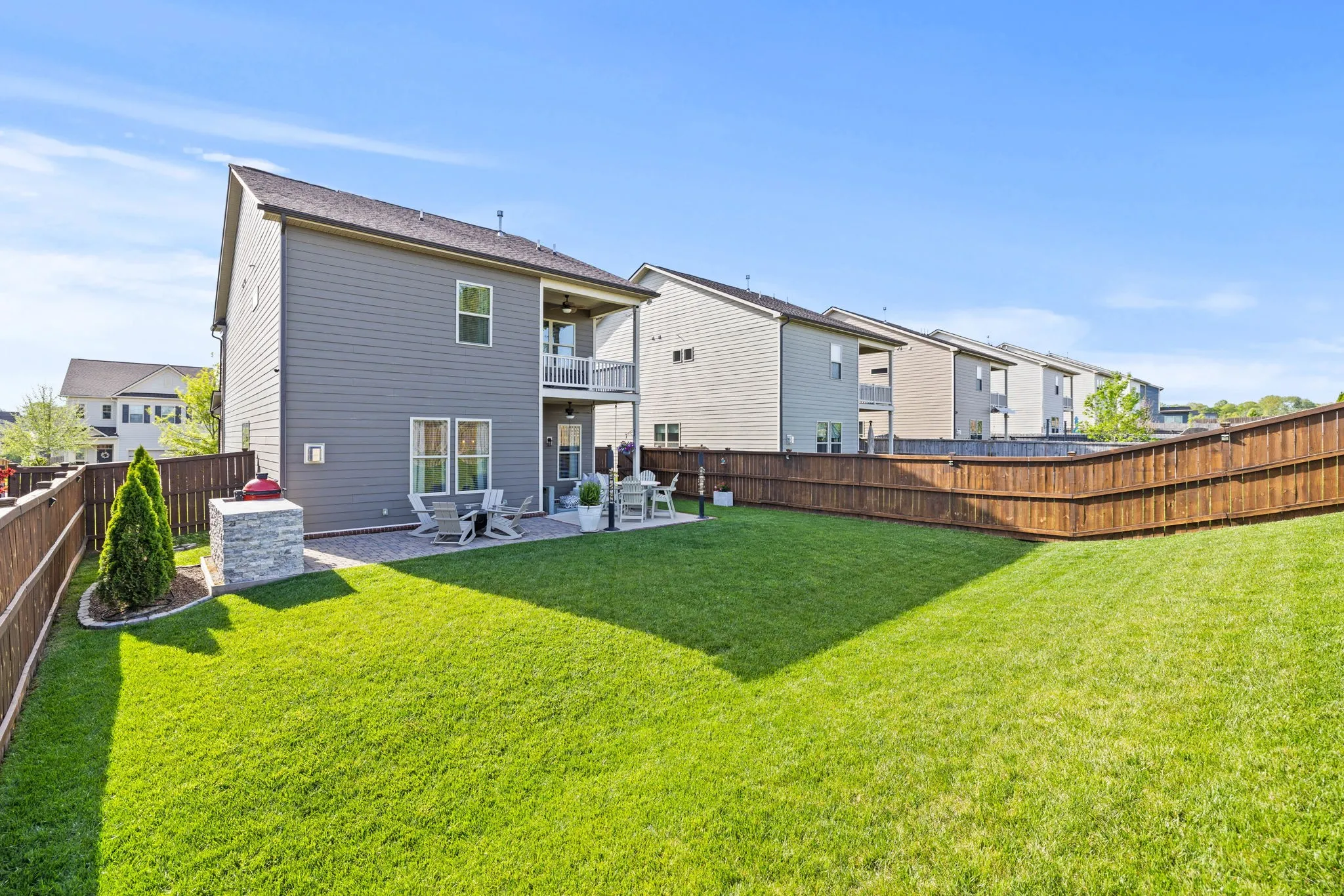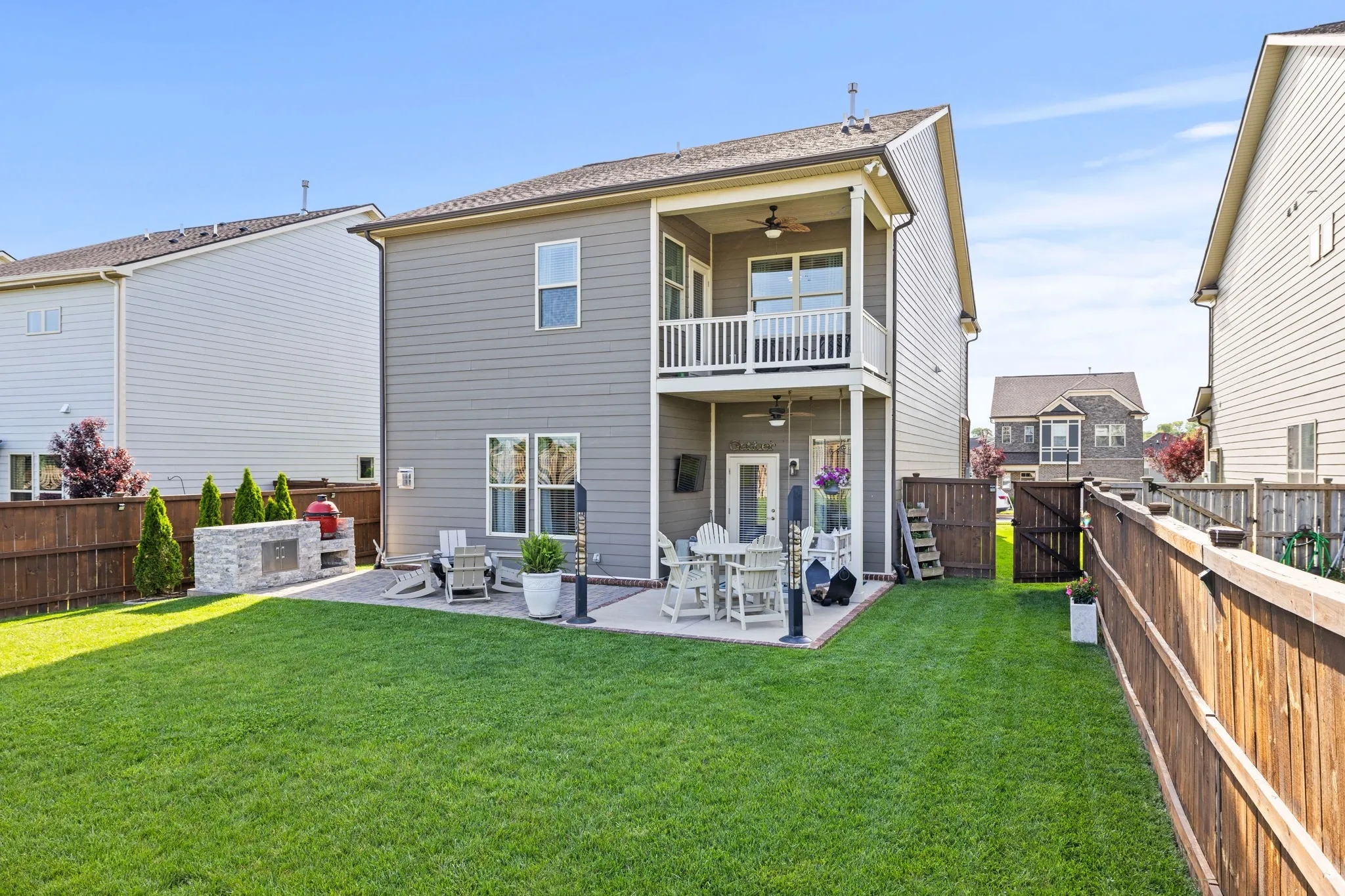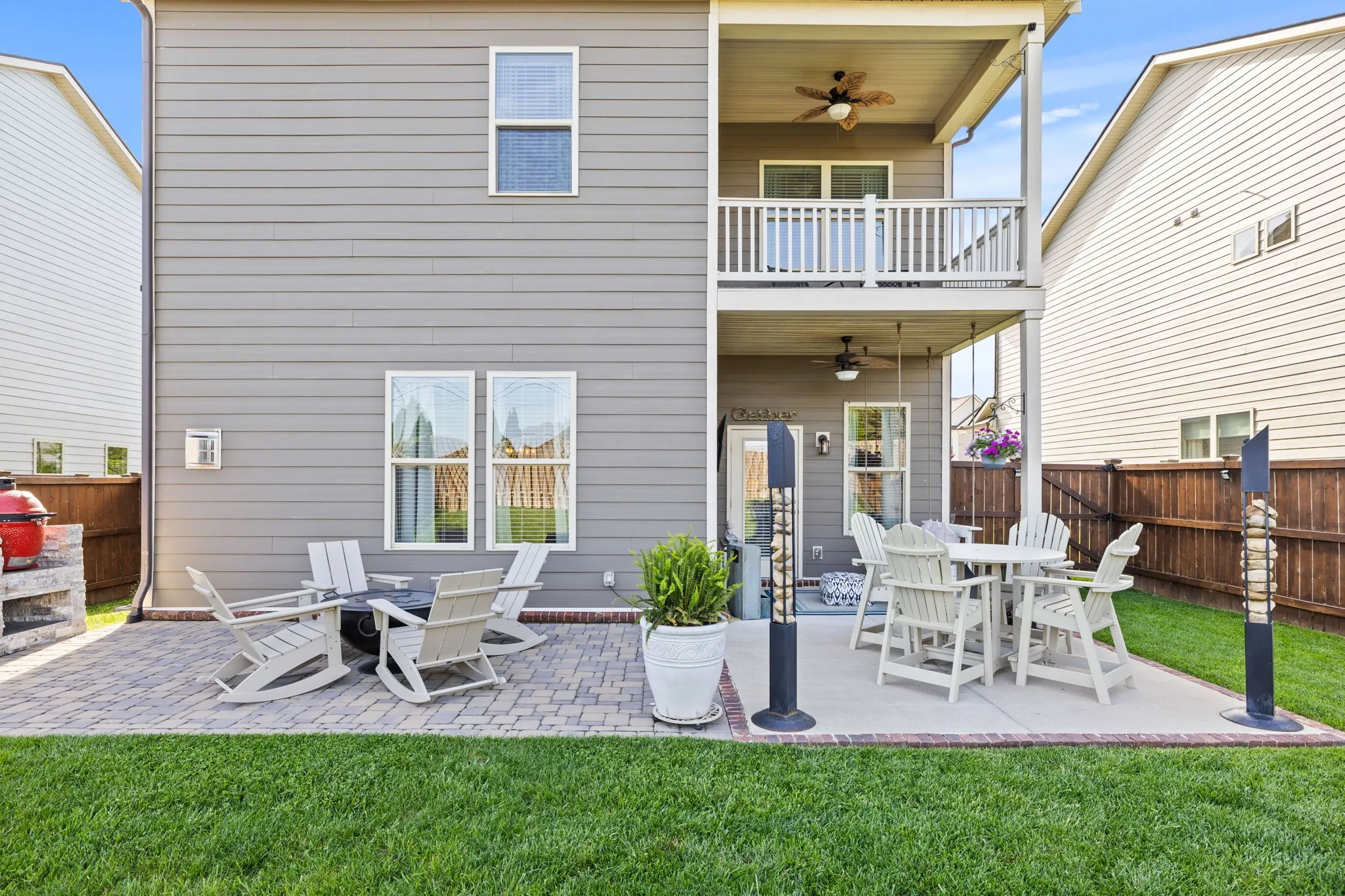 Look no further than this home! It’s move in ready and perfect! Beautifully manicured lawn, fenced backyard, outdoor kitchen, covered patio with bed swing and uncovered patio all makes for great entertaining and relaxing space. Large Primary Suite with separate seating area, and private balcony. Primary bathroom has 2 separate vanities, and 2 large walks in closets. Large granite Kitchen Island with seating, Walk in pantry, Stainless steel appliances, Fireplace in living room, tons of storage and so much more! Upgrades & Improvements list in docs section.