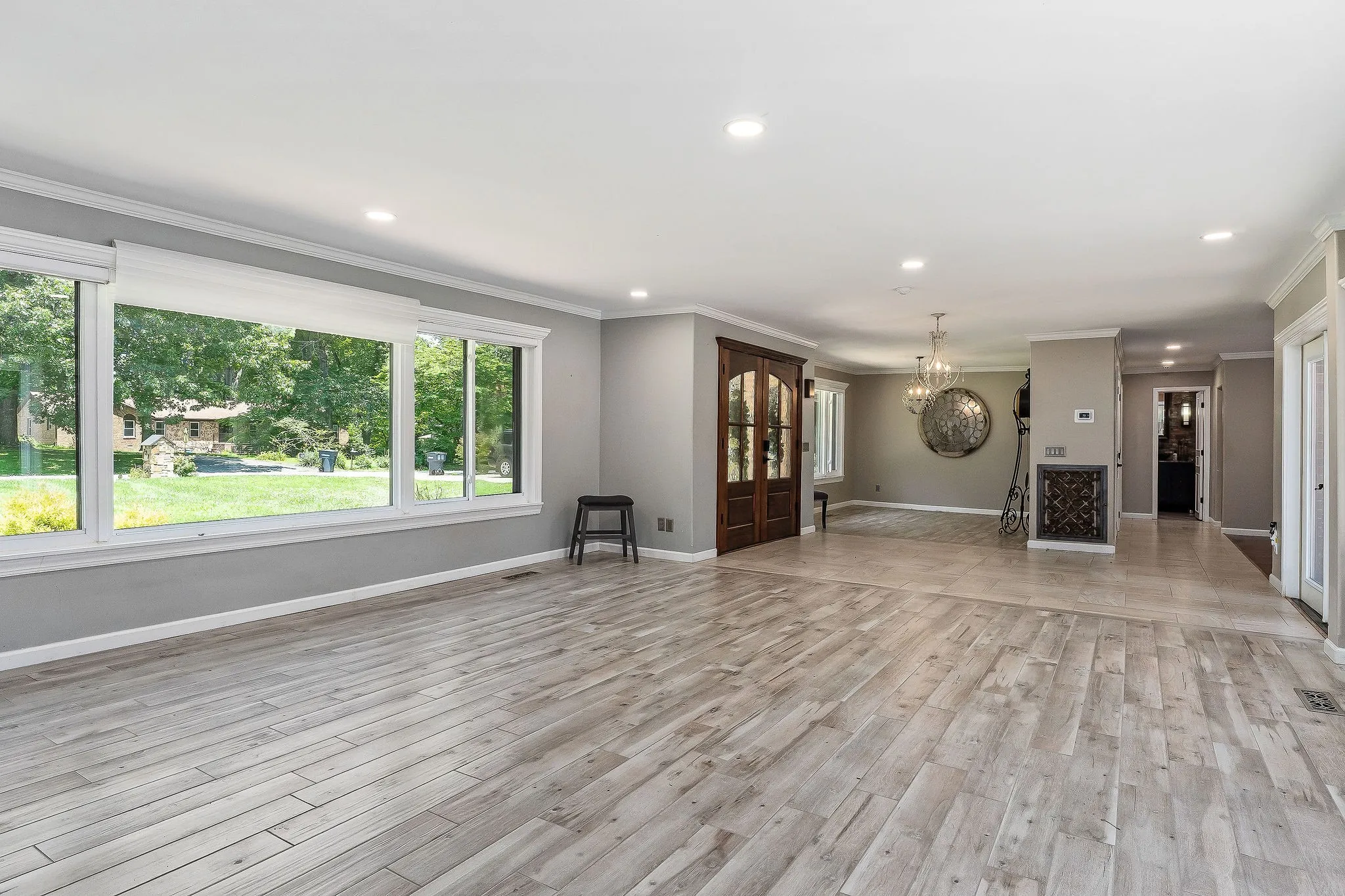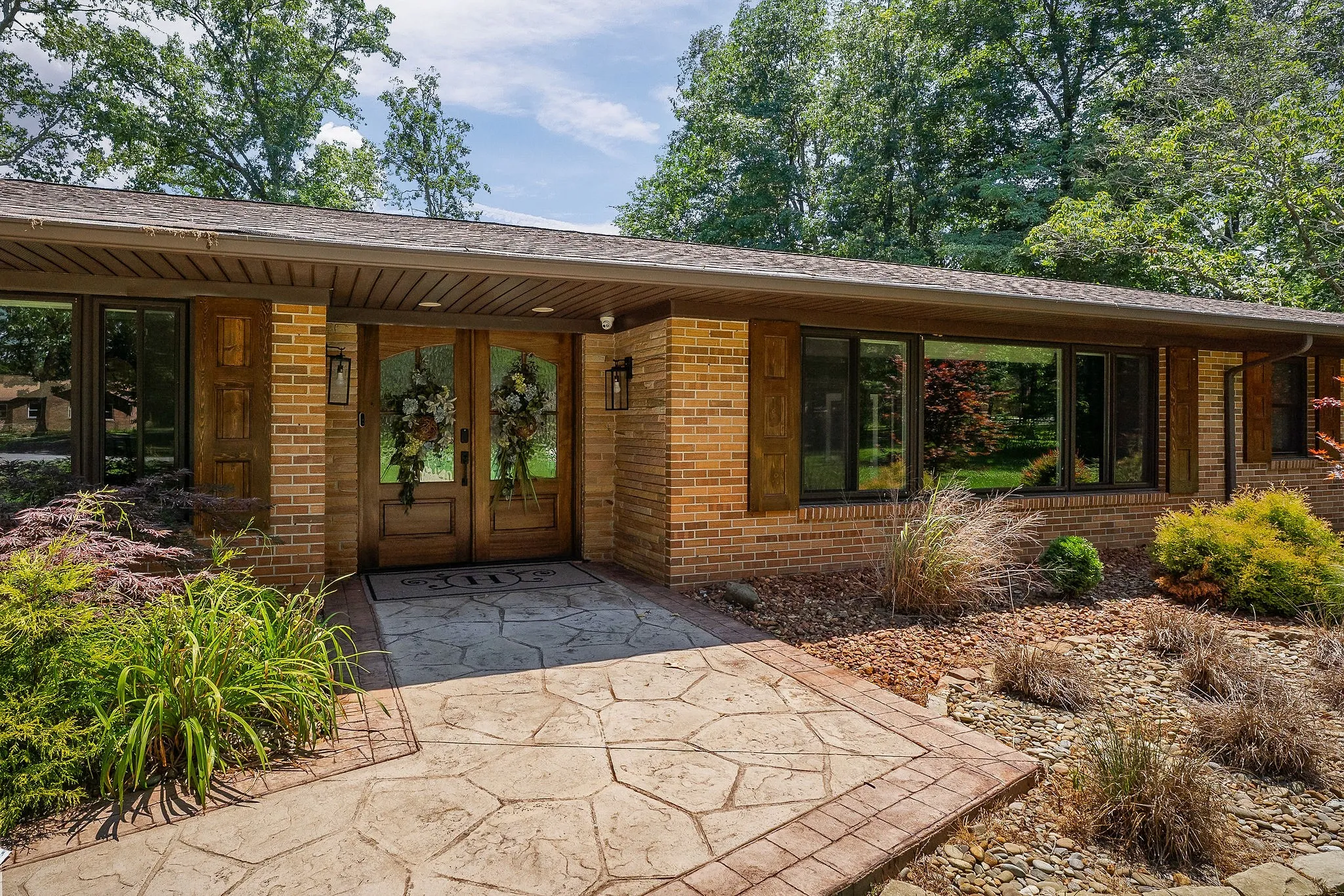 This fully remodeled, single-level brick ranch offers over 3,600 square feet of luxurious living space, perfectly crafted for both entertaining and everyday comfort. Inside, two expansive living areas and an open formal dining room provide ample space for gatherings. The true chef’s kitchen boasts layered granite countertops, a massive island, double ovens, smart appliances, a wet bar, pantry, and travertine tile backsplash, making it both stylish and highly functional. The home includes four spacious bedrooms and three and a half bathrooms, along with a private lounge that opens onto a serene Trex deck—ideal for unwinding in privacy. Outdoors, discover a backyard paradise featuring a stamped concrete patio around a 20×40-foot pool with an 11-foot deep end. The fully fenced yard also includes an outbuilding, water features, and a stunning covered outdoor kitchen, complete with leathered granite countertops, a stone fireplace, and built-in grills and appliances.