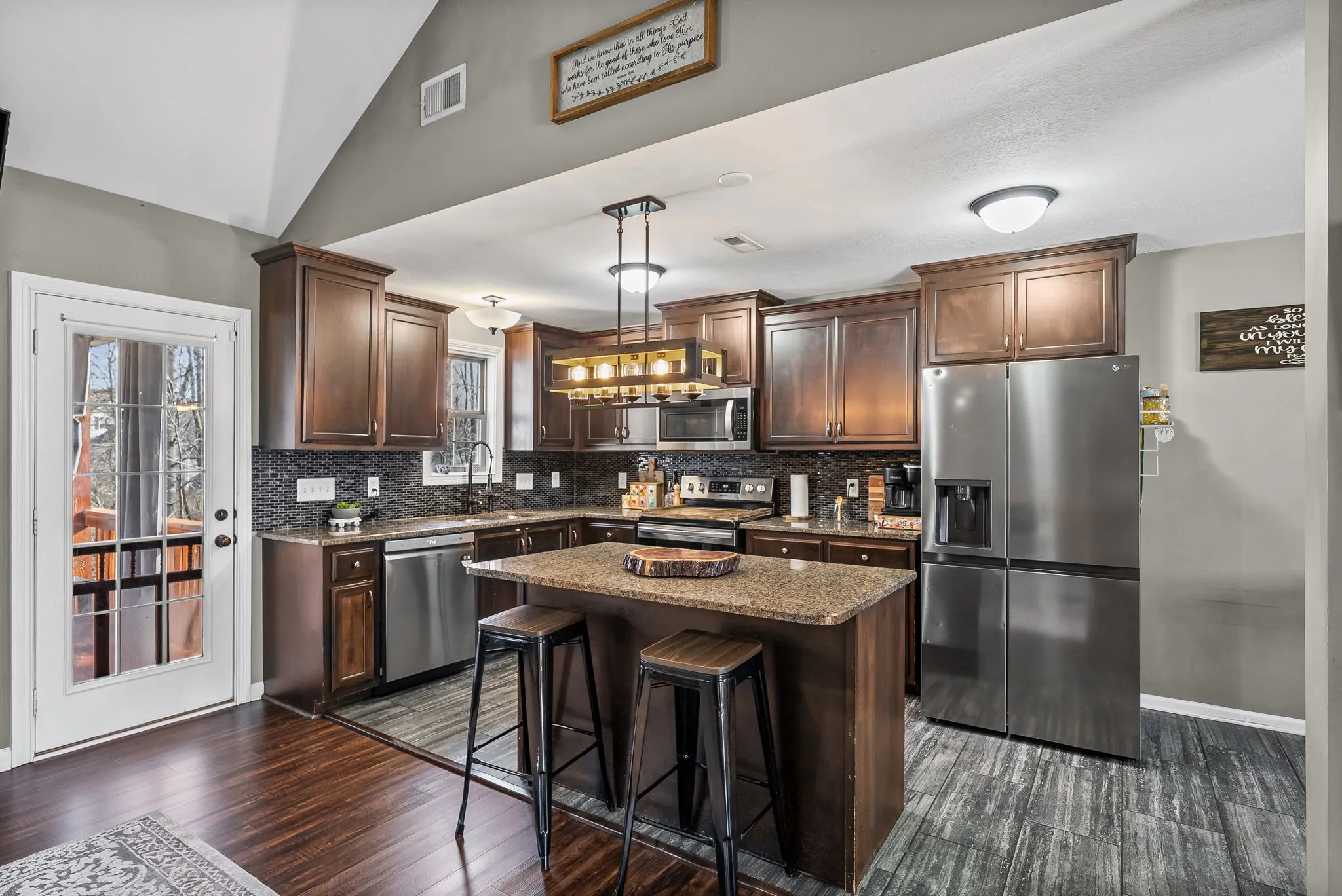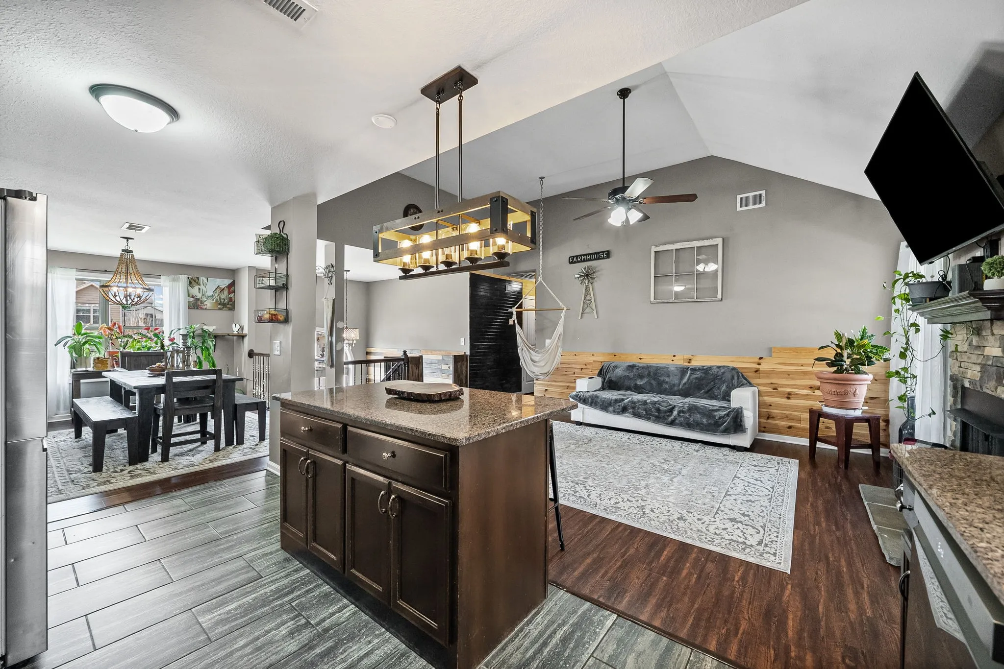 Welcome home to this spacious, immaculate split-level in the highly desirable Liberty Park neighborhood — offering modern style, thoughtful upgrades, and a peaceful backyard setting all for under $350,000. Less than 10 years old and meticulously maintained by one owner, this home features an open-concept living area perfect for entertaining, highlighted by custom wood feature walls that add warmth and character. The kitchen shines with granite countertops, rich wood cabinetry, and stainless steel appliances, blending function with timeless appeal.