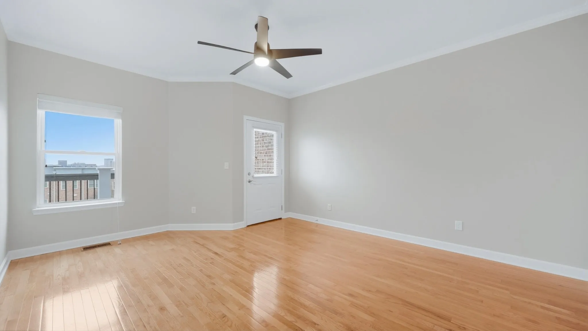 Step into a freshly painted, open-concept space with hardwood floors and modern finishes that exude effortless style. The heart of the home–its kitchen–boasts updated cabinets, luxurious countertops, stainless steel appliances, and a chic beverage bar with its own fridge. The large island flows into a sun-drenched great room highlighted by a dramatic picture window and direct access to your private balcony, perfect for morning coffee or evening cocktails with a view.