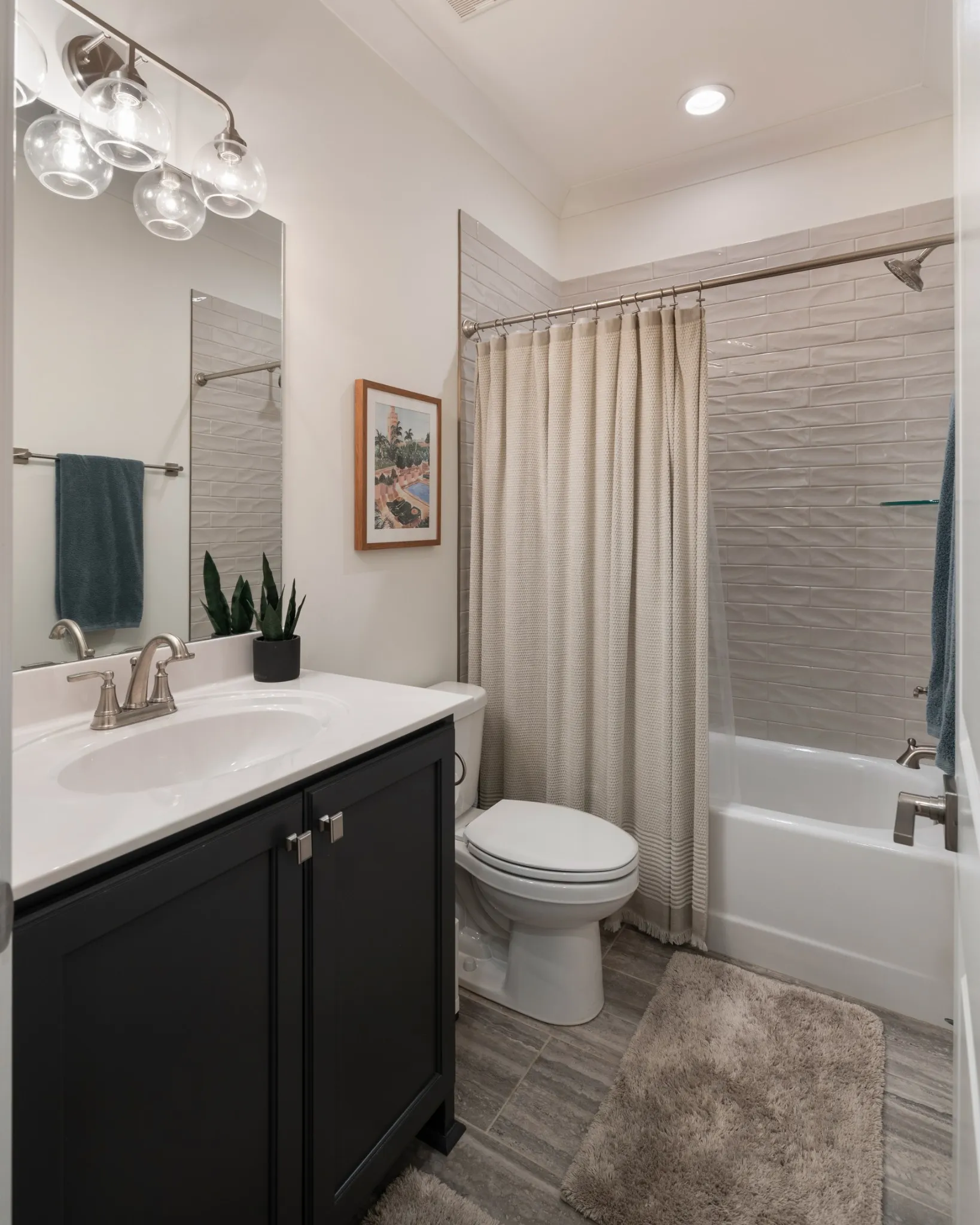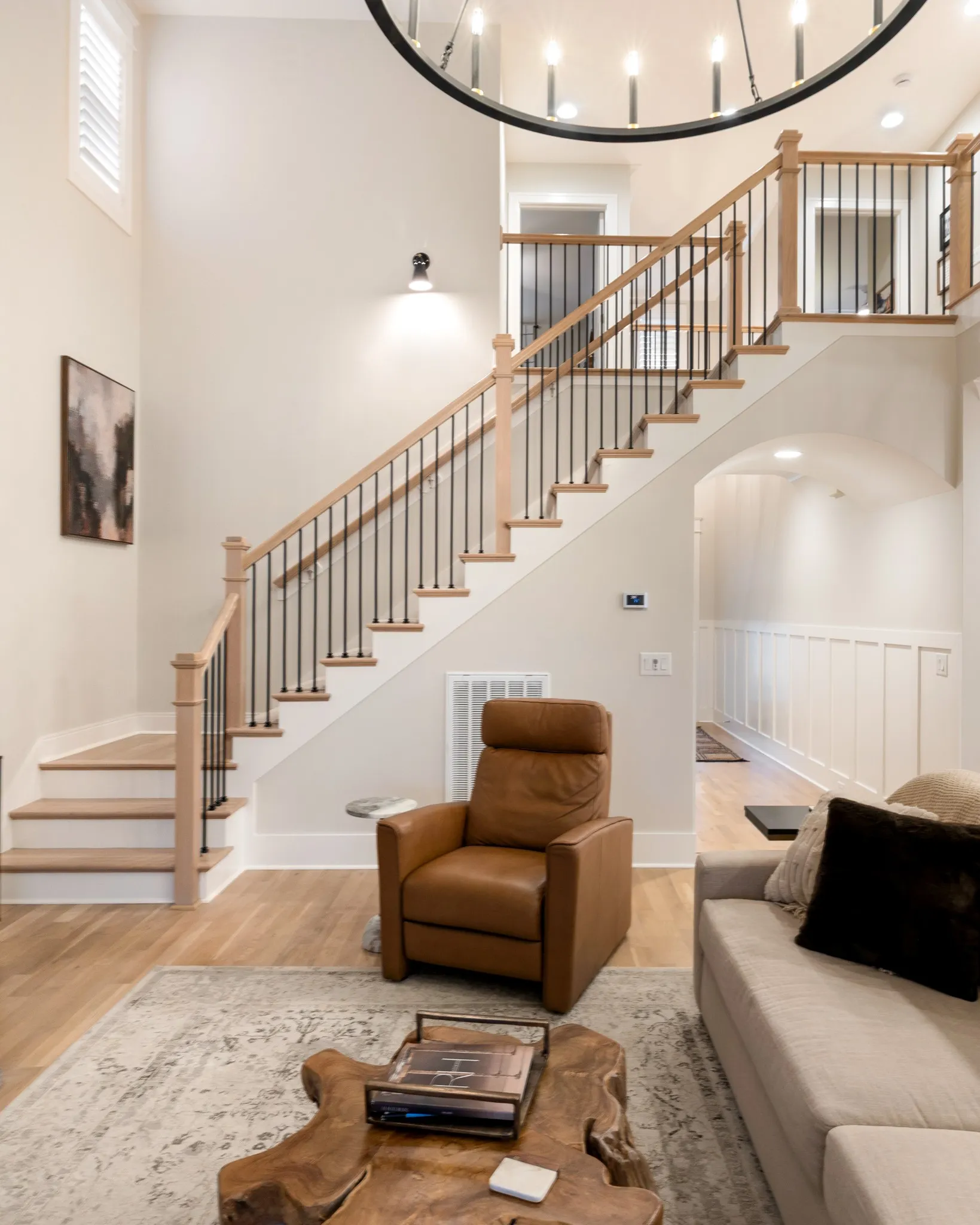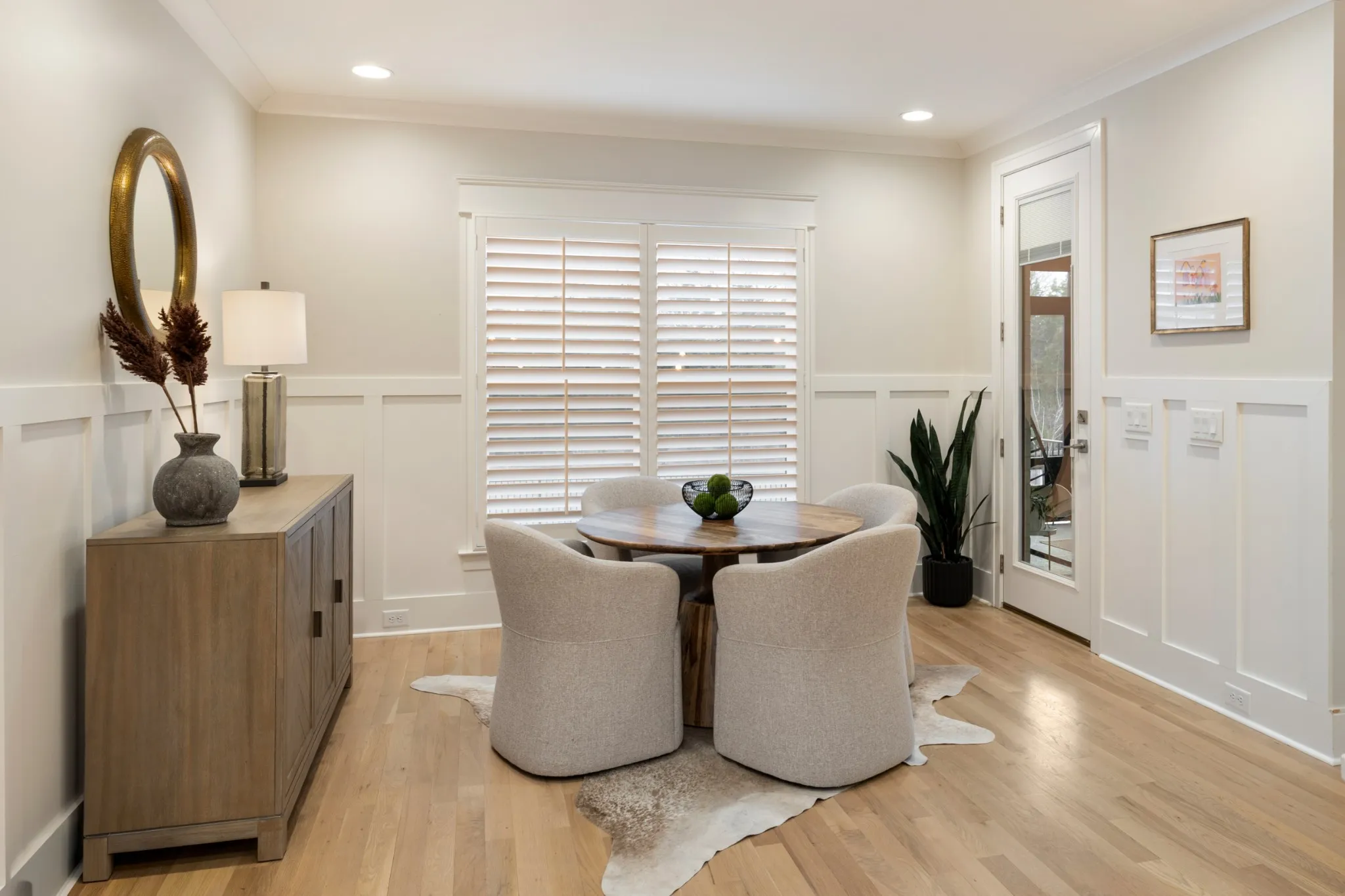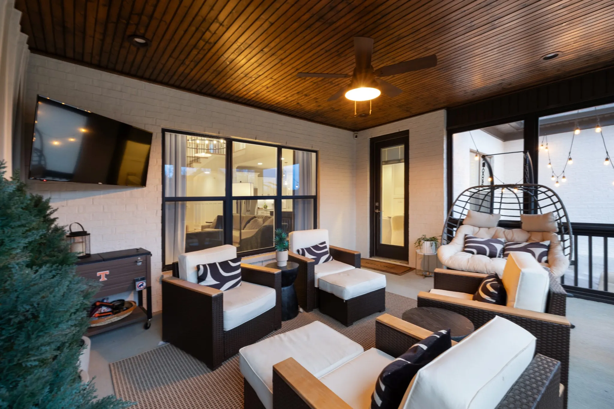 Professionally Designed and thoughtfully appointed, this Modern 4 Bedroom, 3 Full Bath Home is located in the charming Stone Hollow neighborhood, complete with a community swimming pool, kiddie pool, walking trails and a playground. White oak floors and plantation shutters flow throughout the home, creating a bright and timeless foundation. The gourmet kitchen features new luxury appliances: Thermidor Fridge, Bosch range, Bosch dishwasher, built in counter GE microwave, quartz countertops, and a spacious walk-in pantry; perfect for both everyday living and entertaining. The primary suite is conveniently located on the main level featuring a spa like bathroom with a jacuzzi soaking tub and a his & hers walk-in custom closet. The main floor also has a guest bedroom and full bathroom, offering flexible living options. Upstairs, enjoy a Juliet balcony, two additional bedrooms, and two large bonus rooms ideal for a private office, guest suite, playroom, gym, or media space, plus a full bathroom. The covered, screened-in back porch includes privacy roman shades and overlooks mature landscaping and a peaceful tree line, providing a serene outdoor retreat with updated exterior light fixtures. A three-car garage with epoxy floors adds both style and functionality. Ideally situated just minutes from award-winning schools, dining, shopping, and easy highway access, this exceptional home blends modern comfort with everyday convenience. A quick 20 min drive to the BNA Airport & 30 mins to Downtown Nashville!