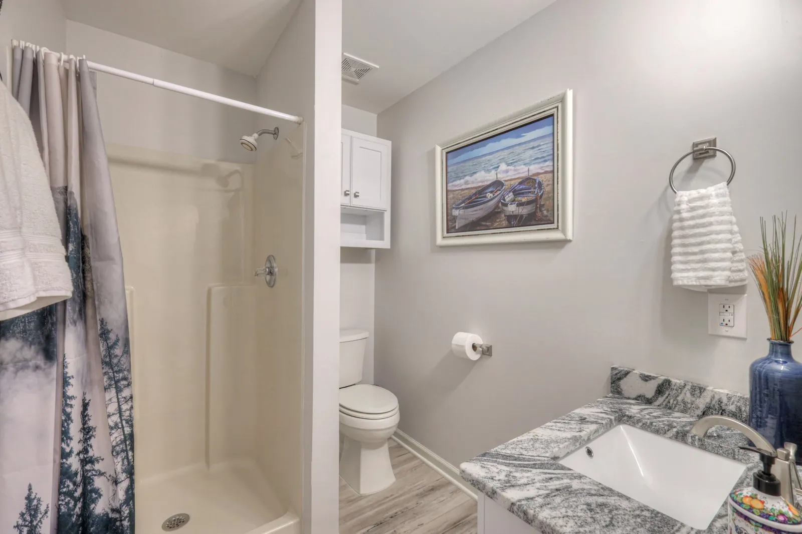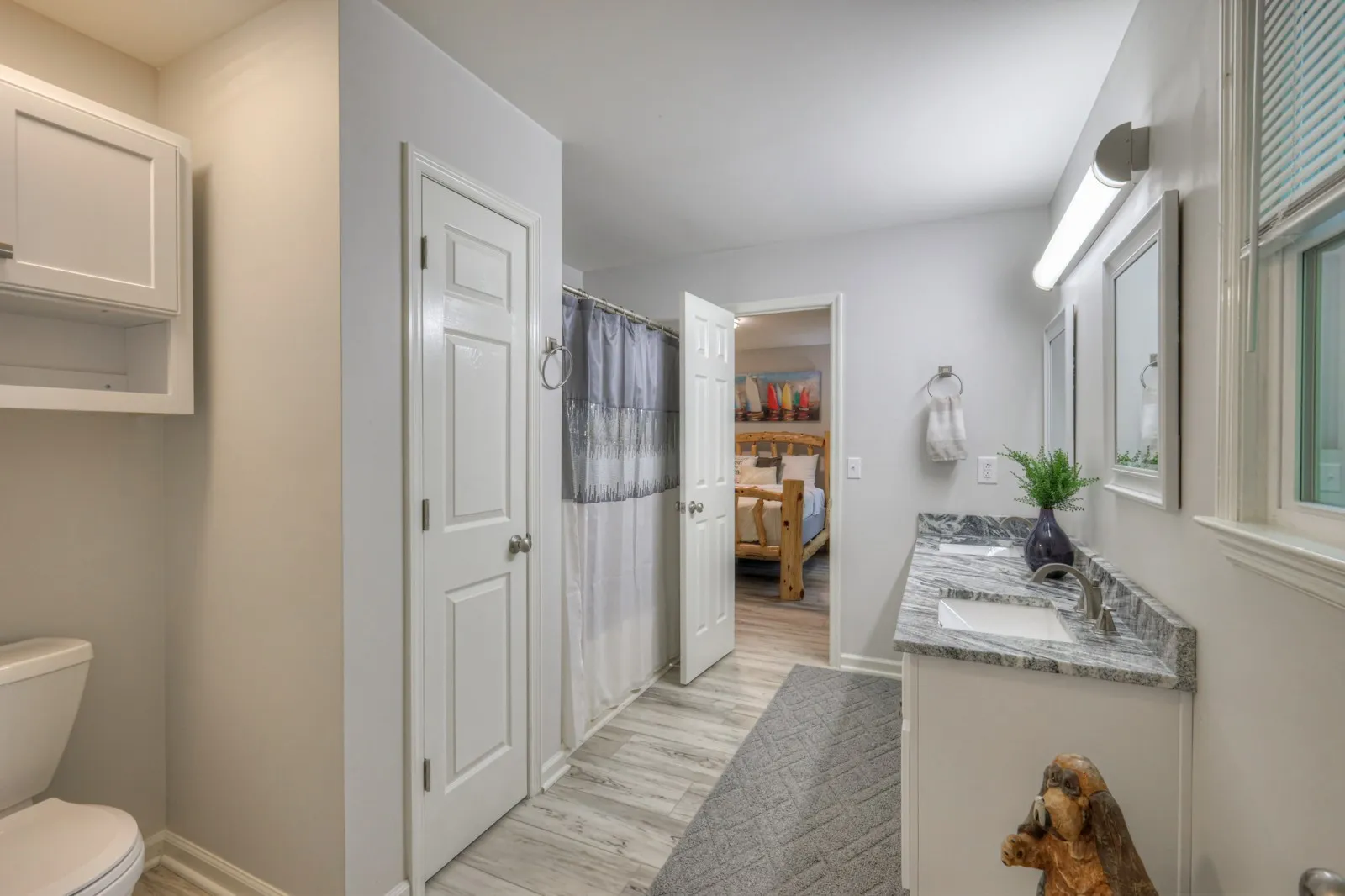 Great neighborhood just outside the city limits in the Stoneybrook Estates with a beautiful new golf course. The house was remodeled in October of 2021. All 4 bedrooms are on the main level, two have a large jack-and-Jill bathroom and large walk-in closets. High-end vinyl plank flooring, custom cabinets and vanities, built-in closets, nice granite countertops, and a tiled backsplash in the kitchen with nice appliances. Whole-house water filter system. Large Living room with a gas log fireplace, a vaulted ceiling, and 2 skylights. A large covered deck and a large open deck overlook nice landscaping and mature trees. The main bedroom suite has a large bathroom with a vaulted ceiling and skylight. Nice custom walk-in shower and double vanity with a makeup table. The utility room has lots of cabinets and shelving for laundry baskets, as well as a stainless steel utility sink. Dryers can be hooked up to gas or electricity. Bonus room with full bath, and an office. 2772 sq ft Basement. Furniture negotiable. We must have buyers proff of funds letter before scheduling a showing. Thank you