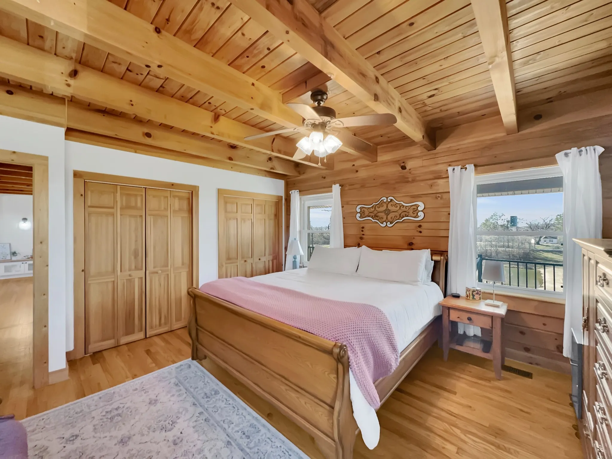 Check out this beautiful home located close to Old Hickory Lake! This 3-bedroom, 2-bath log home sits on 5.26 acres and features quartz countertops, a farmhouse sink, a large kitchen island, electric fireplace, hardwood floors, an attached garage, a large pond, and a swimming pool—perfect for enjoying the outdoors. There is also an additional room currently being used as an office that could easily be used as a bedroom. The primary bedroom offers extra-large closets, while the primary bathroom includes a custom walk-in shower and double vanity sinks. This home still has the original owners! The front porch offers great views, making it the perfect spot for your morning coffee. Located just minutes from Old Hickory Lake and its marinas, this property offers the ideal blend of privacy, space, and convenience.