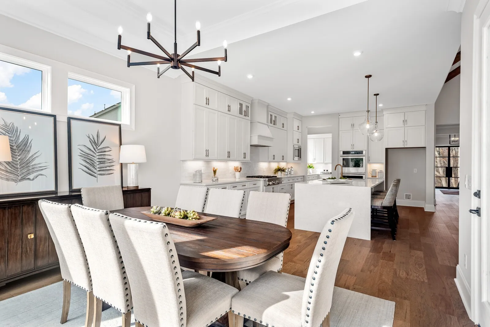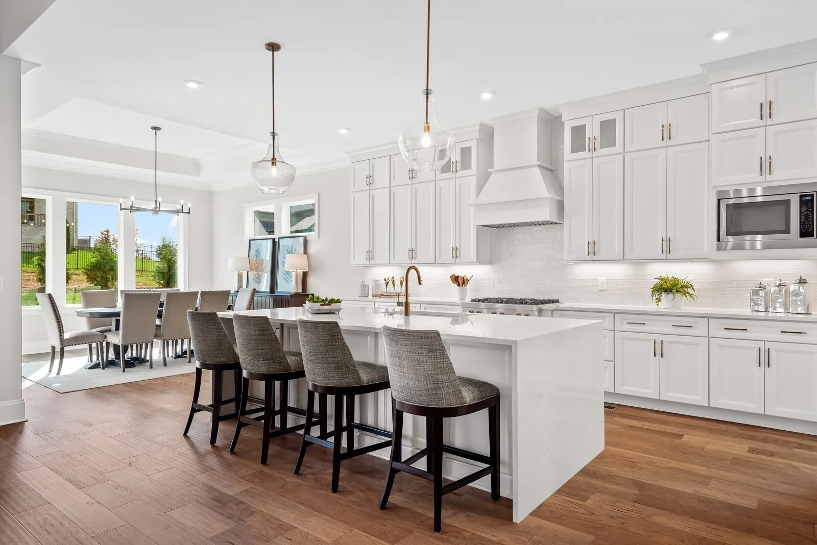 The gourmet kitchen is a chef’s dream, featuring high end appliances, a large island, and extensive cabinetry. The luxury primary suite is a private retreat, complete with vaulted ceilings, an oversized shower and soaking tub, dual closets, and serene views of the wooded homesite.