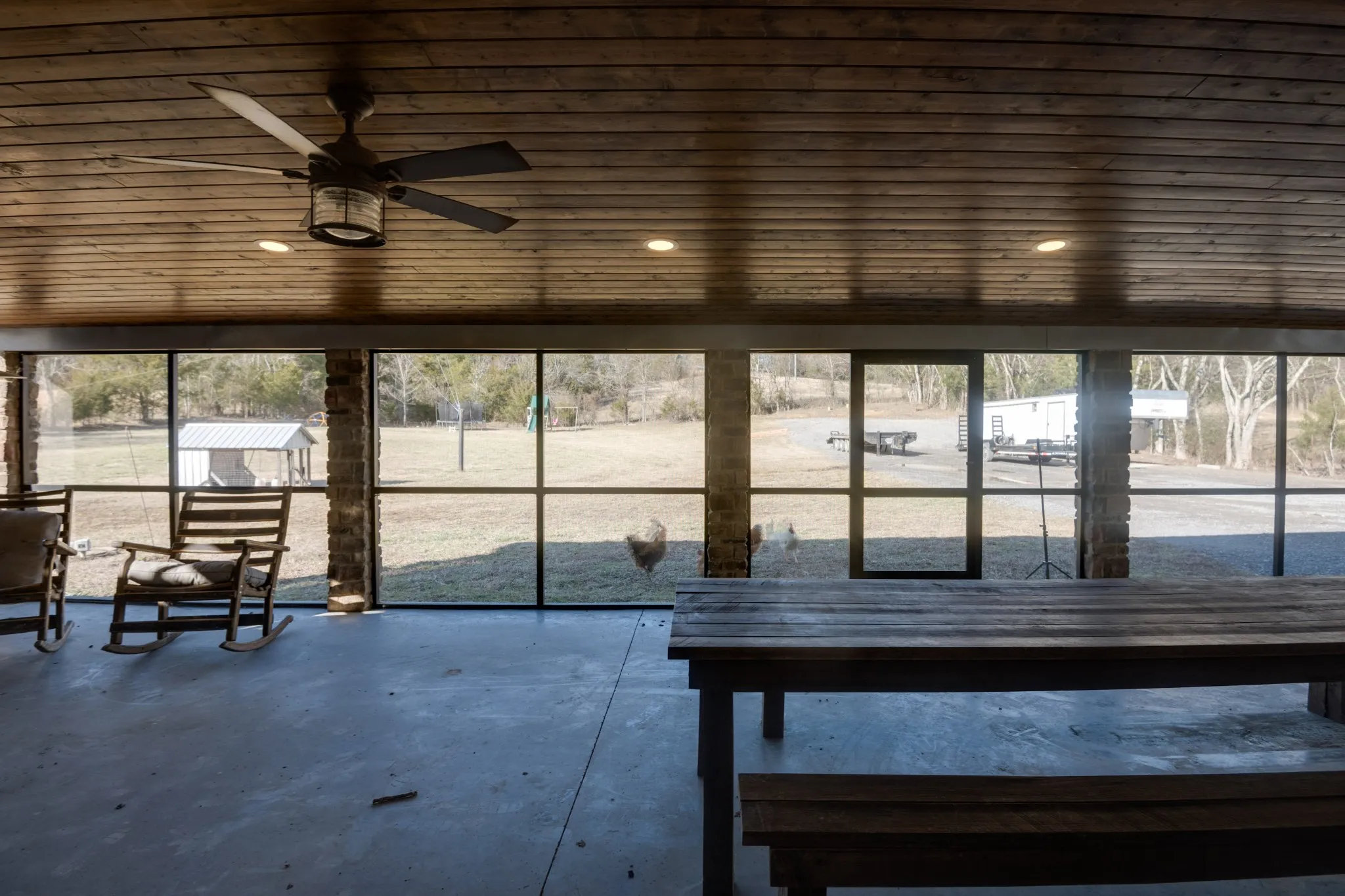 Enjoy three fireplaces, including a wood-burning fireplace on the screened-in porch/garage, plus a dedicated home office for work or creative space. The primary suite includes a safe room and spa-style tiled shower with dual shower heads, while a second master suite is perfect for guests or multi-generational living.