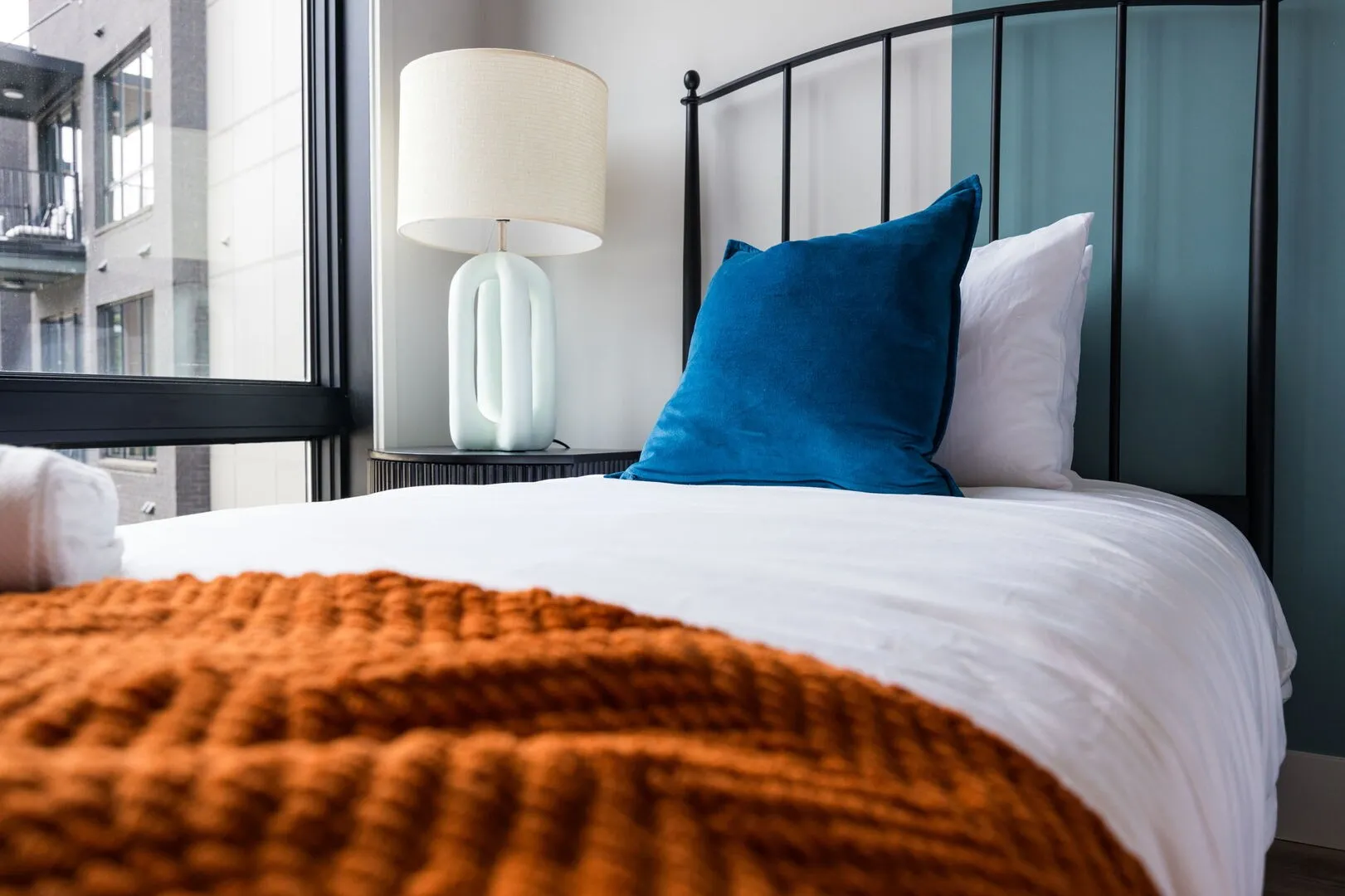Building amenities include a resort-style pool with lounge seating, BBQ grill, and fire pit, a state-of-the-art fitness center, and rooftop gathering areas with skyline views. Secure garage parking and elevator access add to the ease of living.